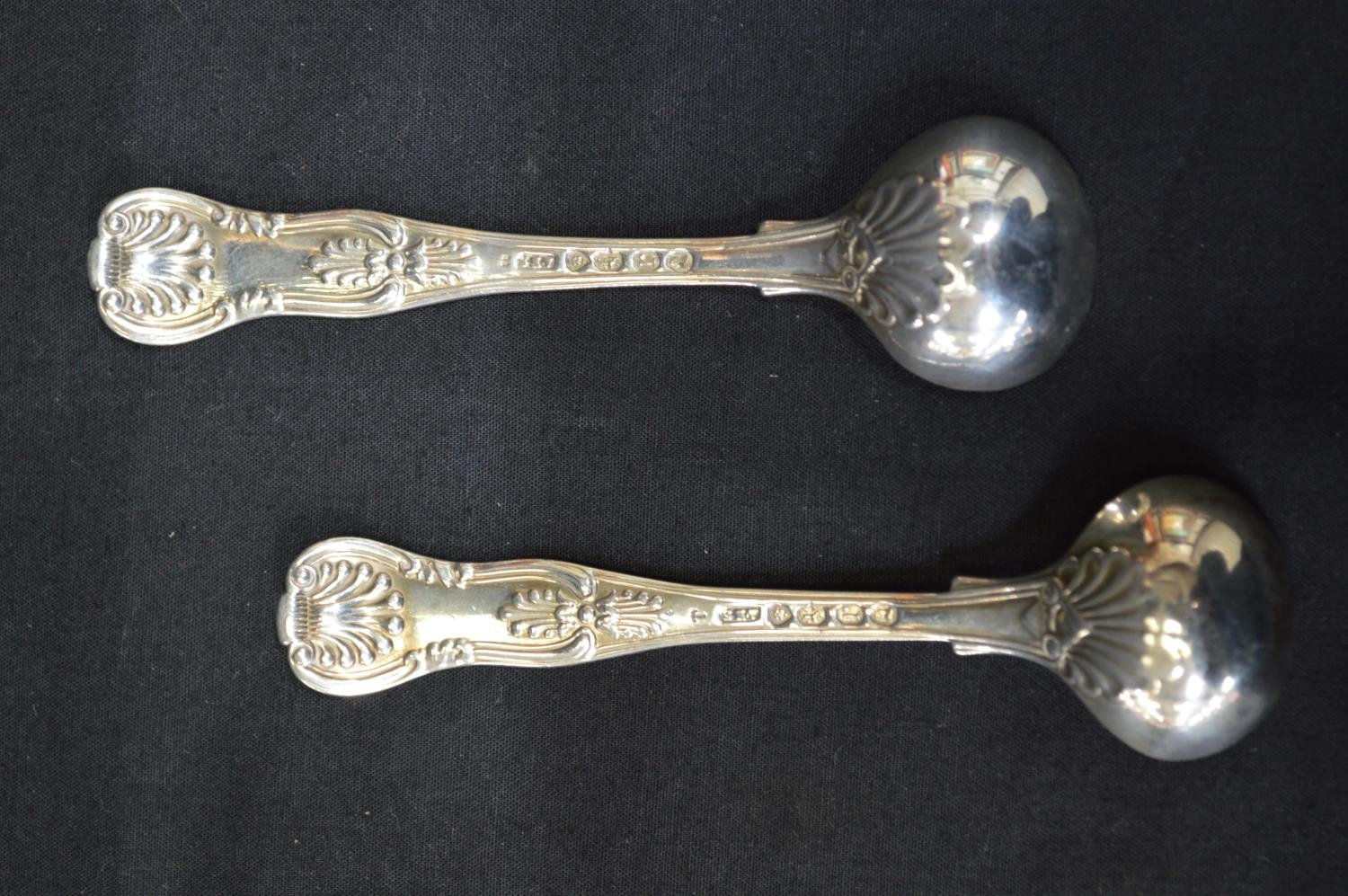 Pair of silver mustard spoons having Queens pattern handles, hallmarked for Dublin 1837 (1.4ozt)