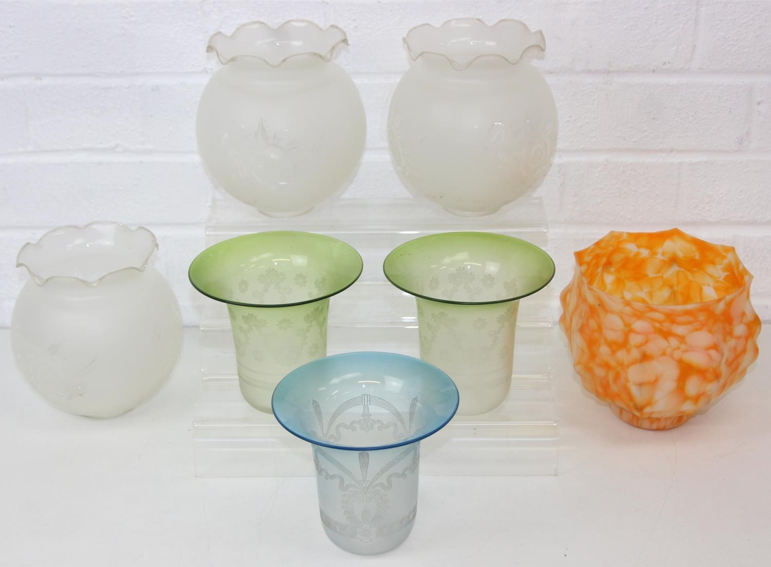 Seven assorted vintage glass light shades, to inc frosted globe shades, speckled glass, etc [7]
