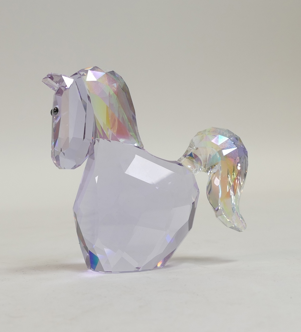 Swarovski Crystal The Lovlot Circus Collection Jasmine The Horse (1079474) retired 2012 designed by Peter Heideggar presented in Violet Moonlight Crystal. H:- 9cm. Boxed