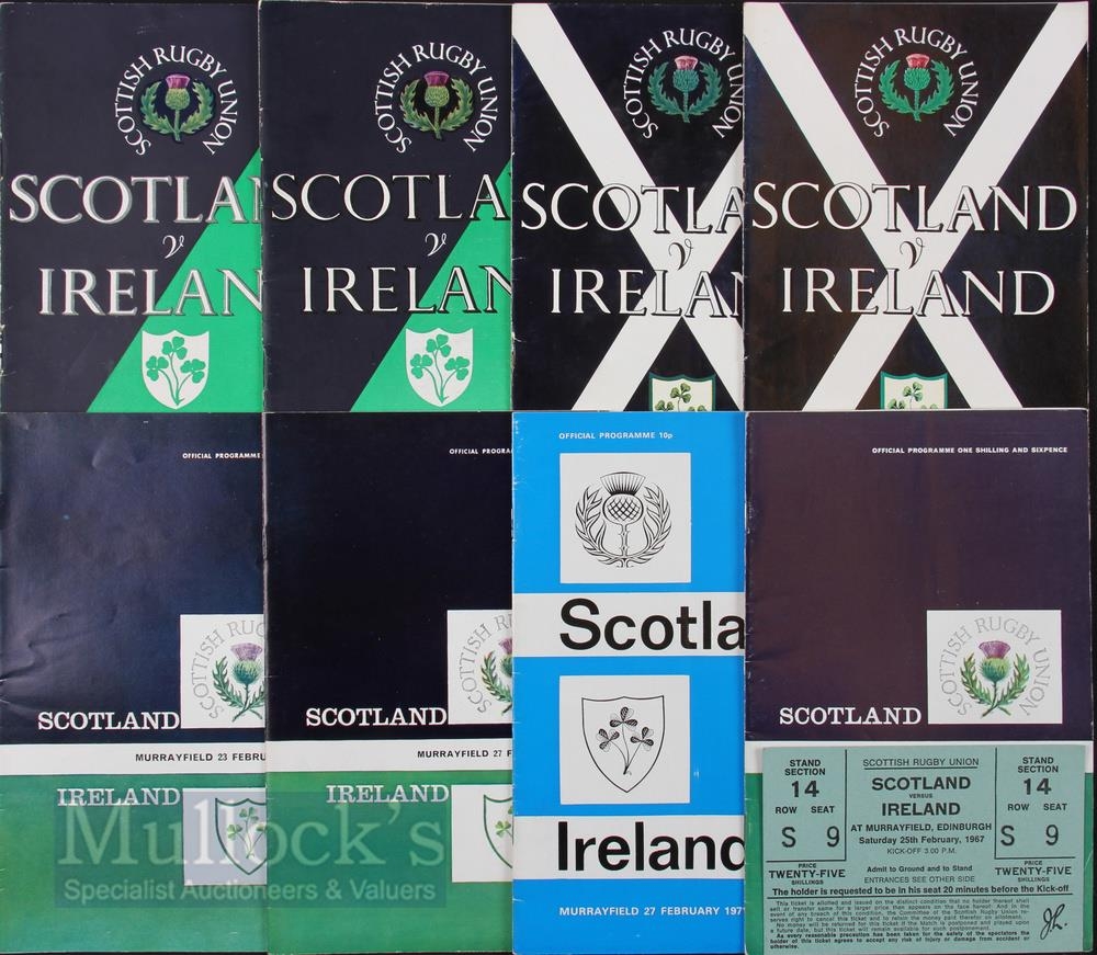 Scotland v Ireland Rugby Programmes/Tickets (9): Lovely series of homes 1955-1967 plus 1971, ticket with 1967. VG