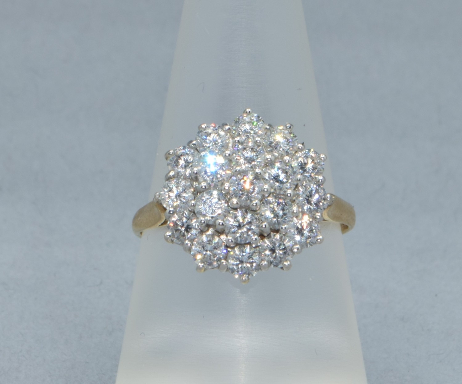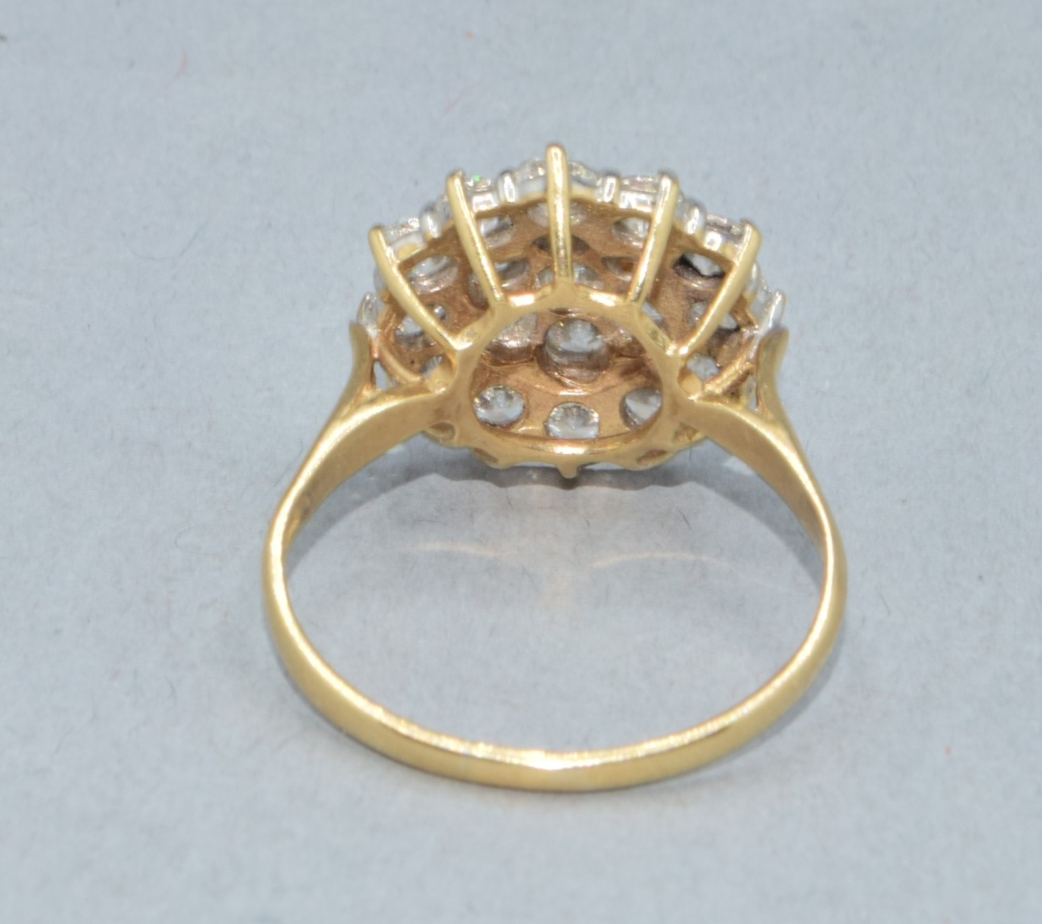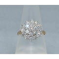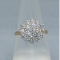 9ct gold ladies clear stone large cluster cocktail ring size Q 3.7grams