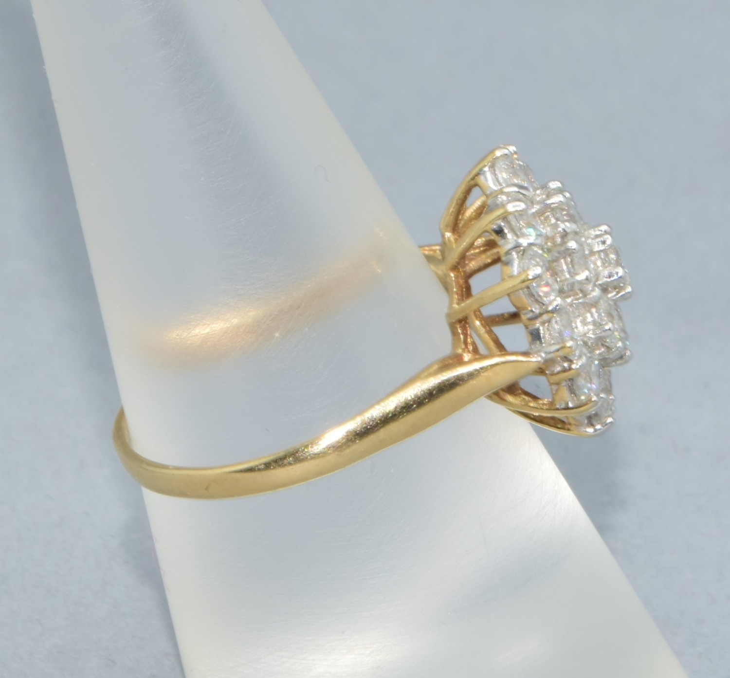 9ct gold ladies clear stone large cluster cocktail ring size...