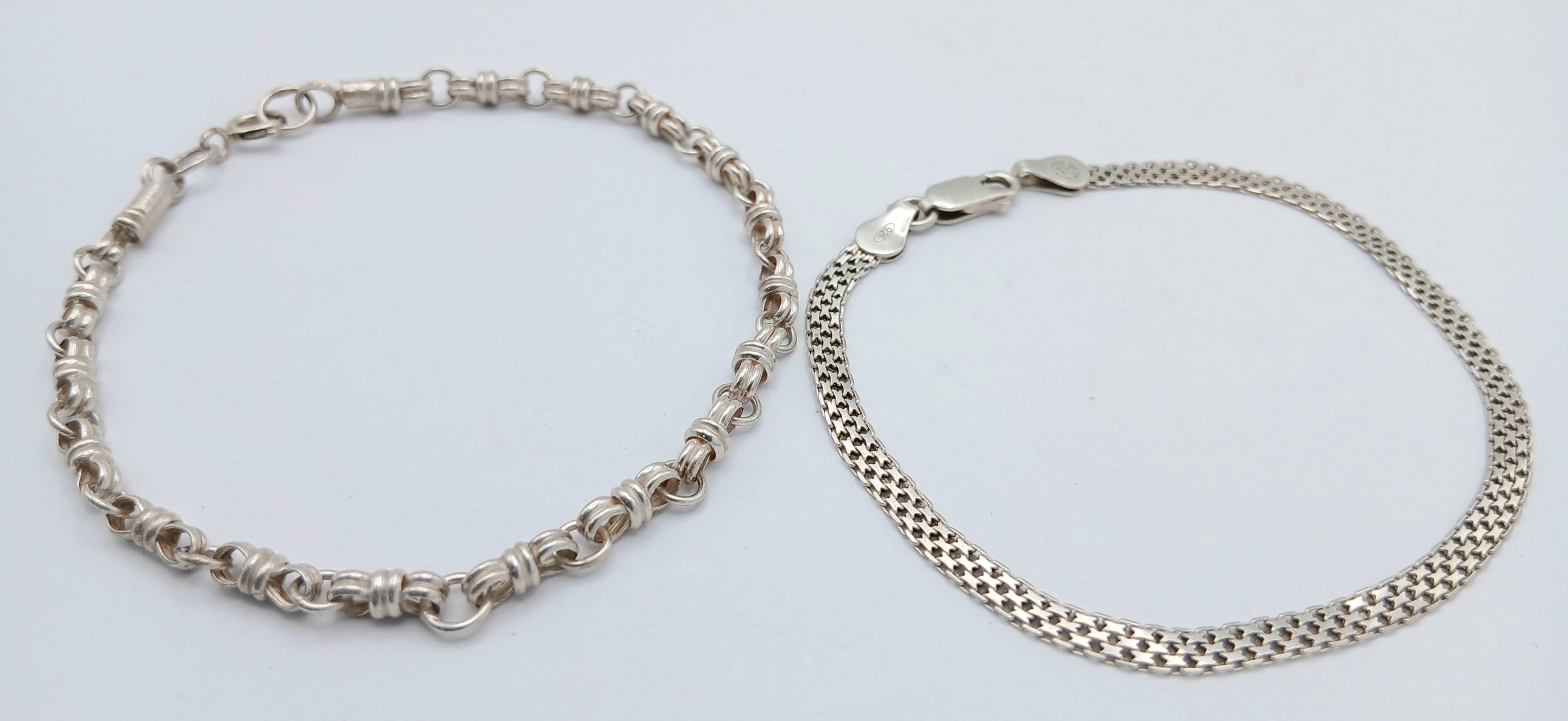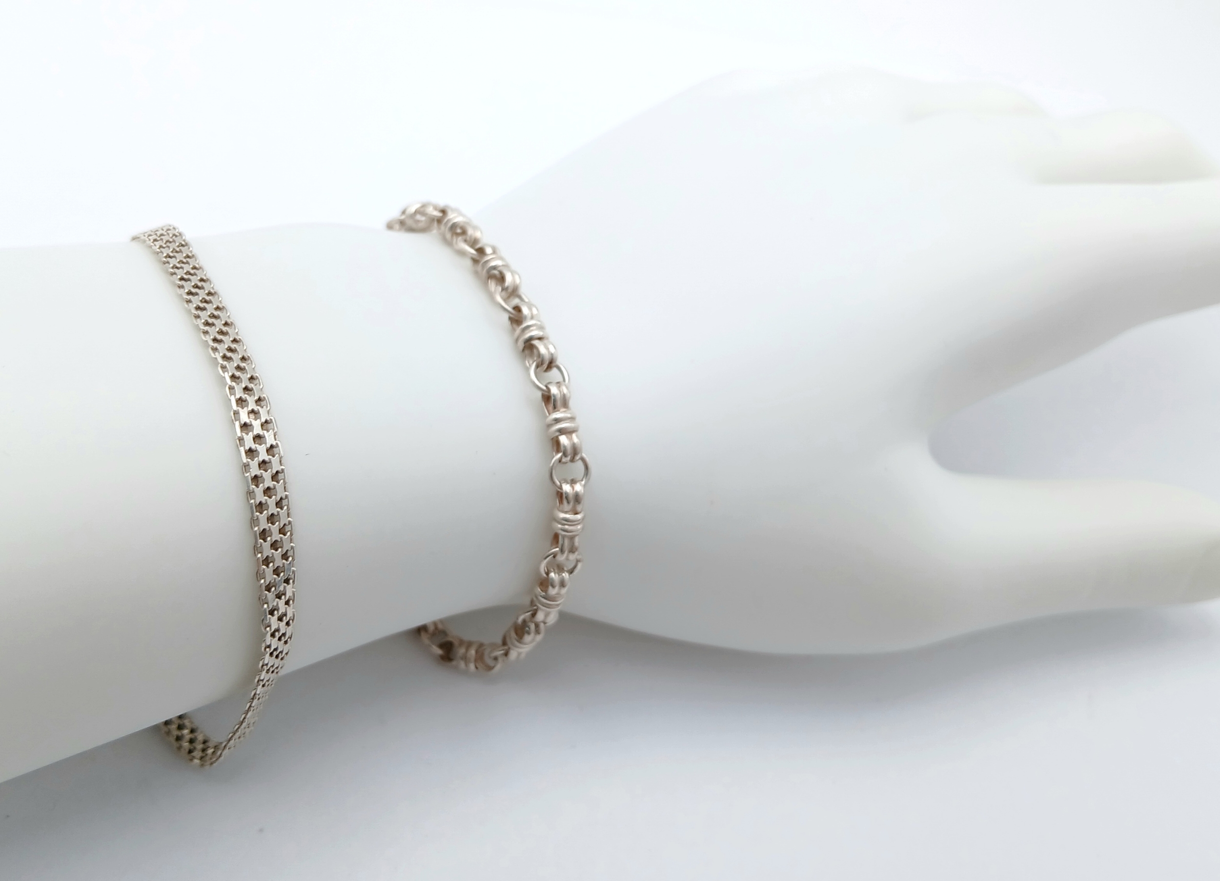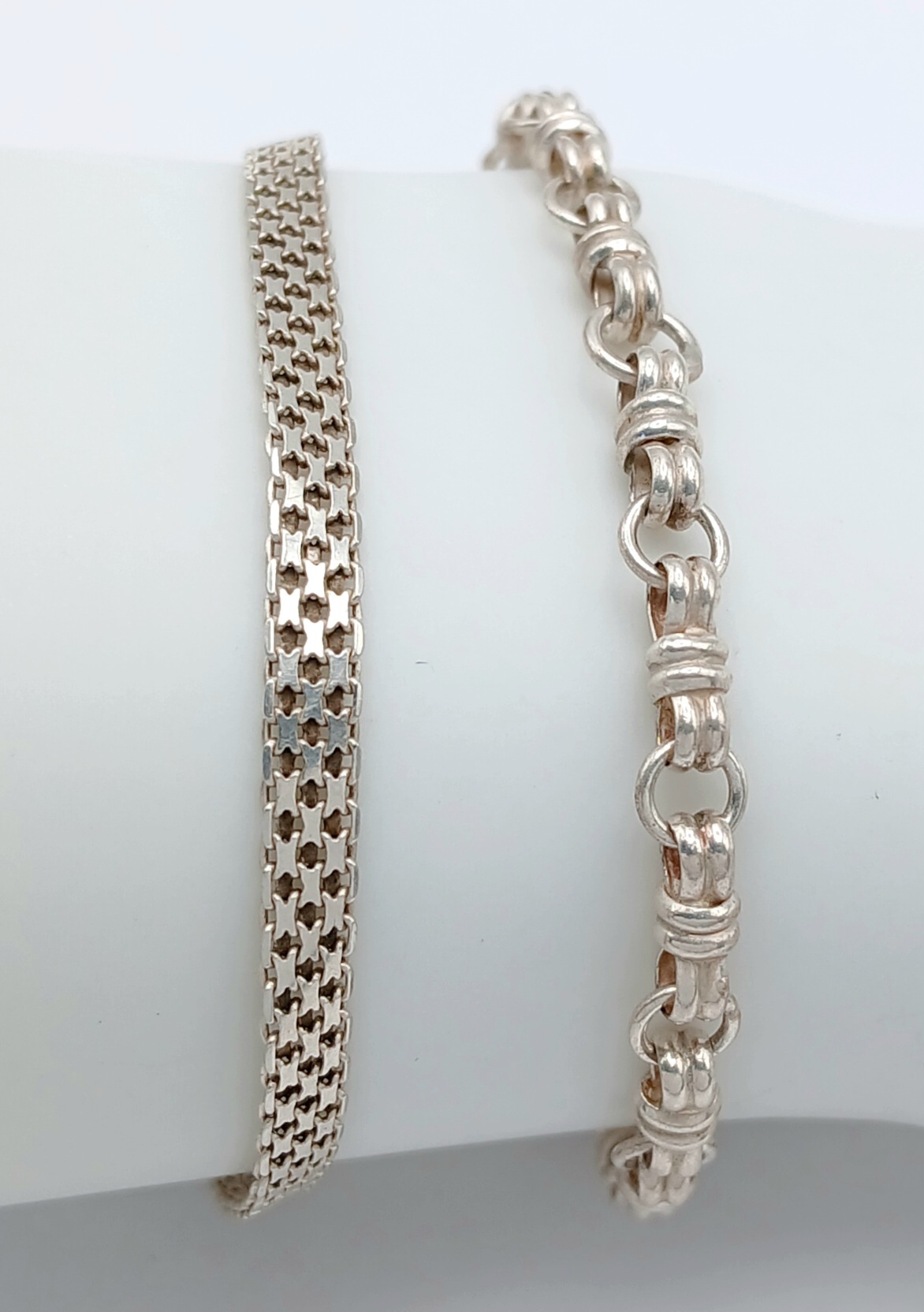 2 x Stylish ITALIAN SILVER BRACELETS to include Fretwork Flat Link (19 cm), Together with Twin Belcher Link (20 cm).