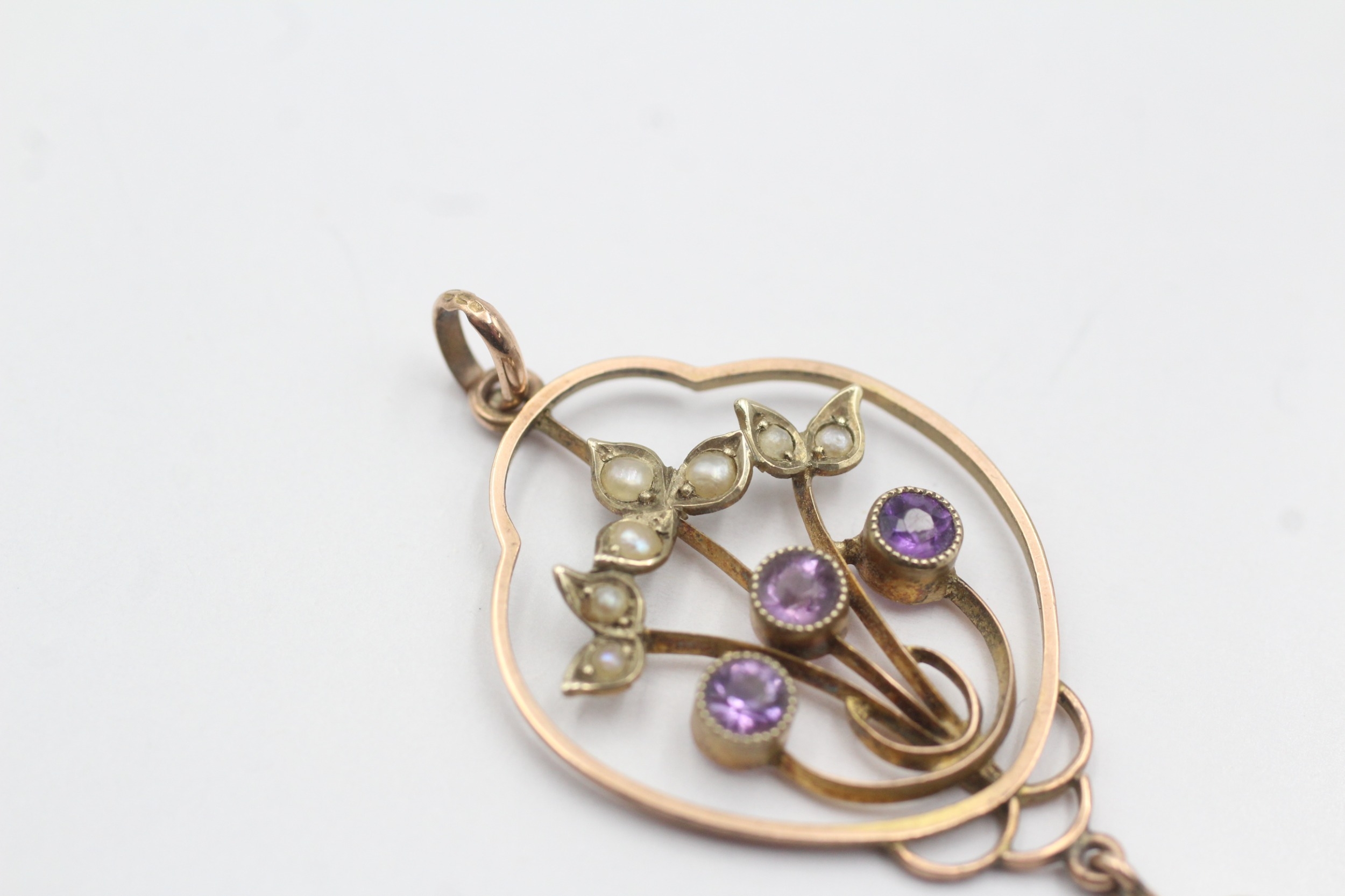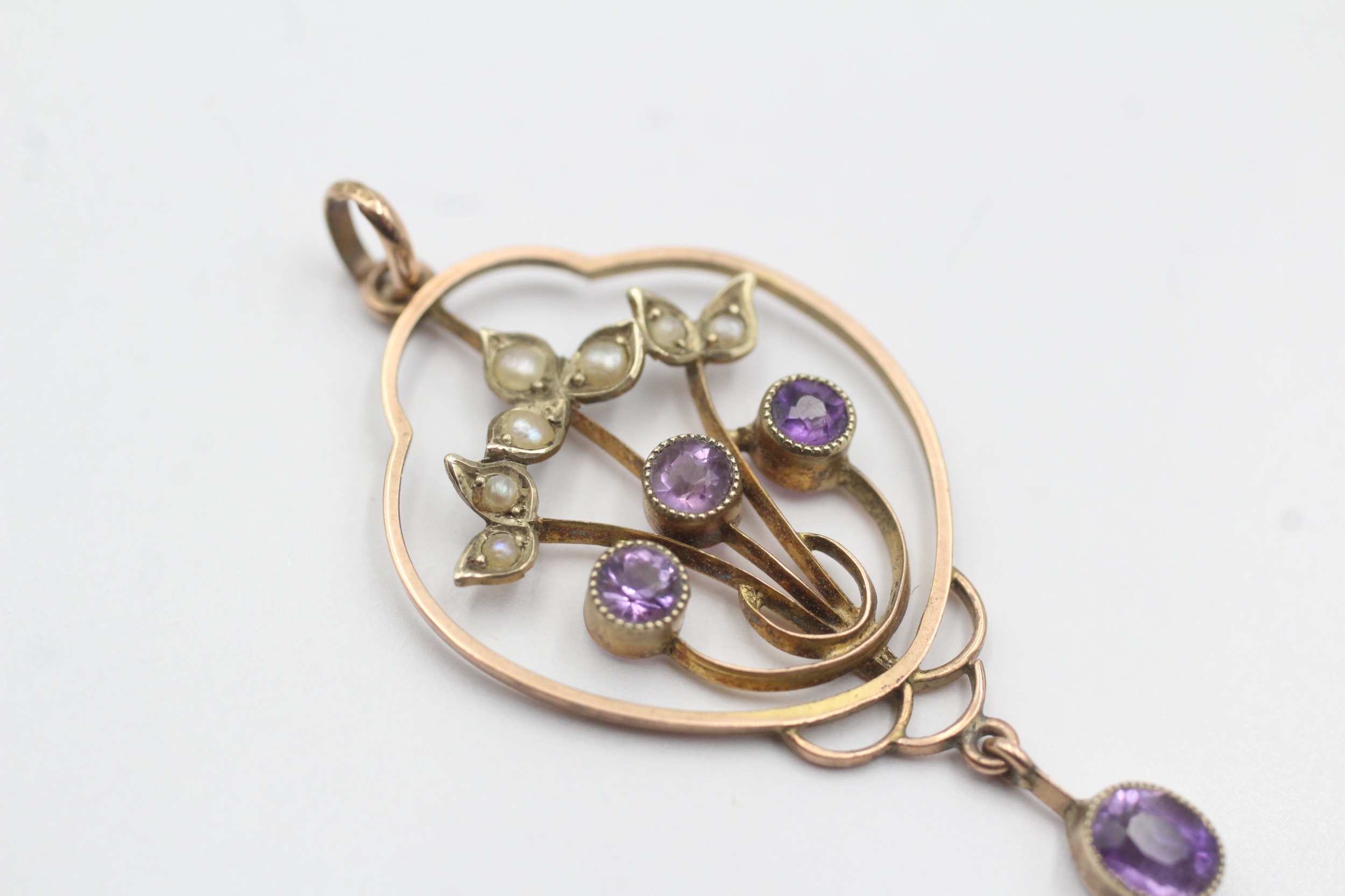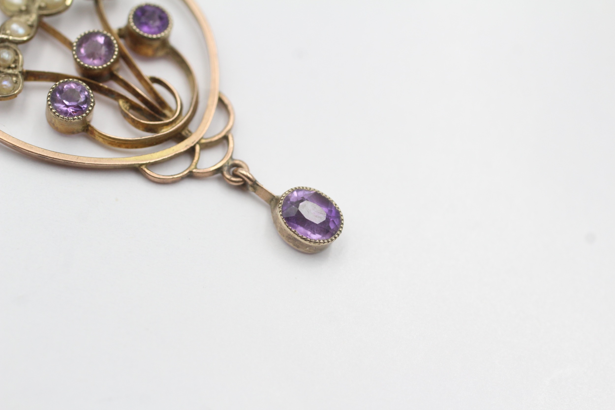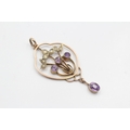 9ct rose gold antique split pearl and amethyst lavaliere pendant (2g)