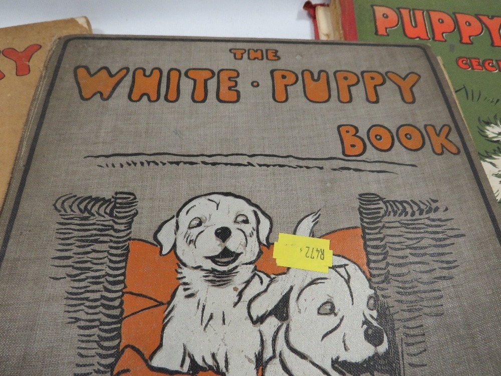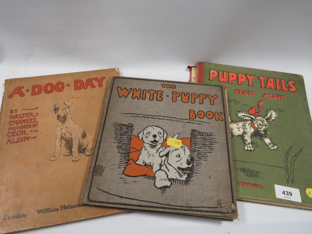 Three antique Cecil Aldin books consisting of " A Dog Day ", The White Puppy Book " and "Puppy Tales " all A/F