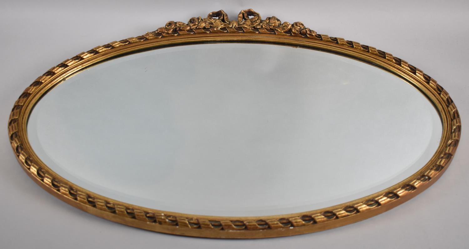 A Large Gilt Framed Oval Wall Mirror with Bevelled Glass, 72x48cm Overall