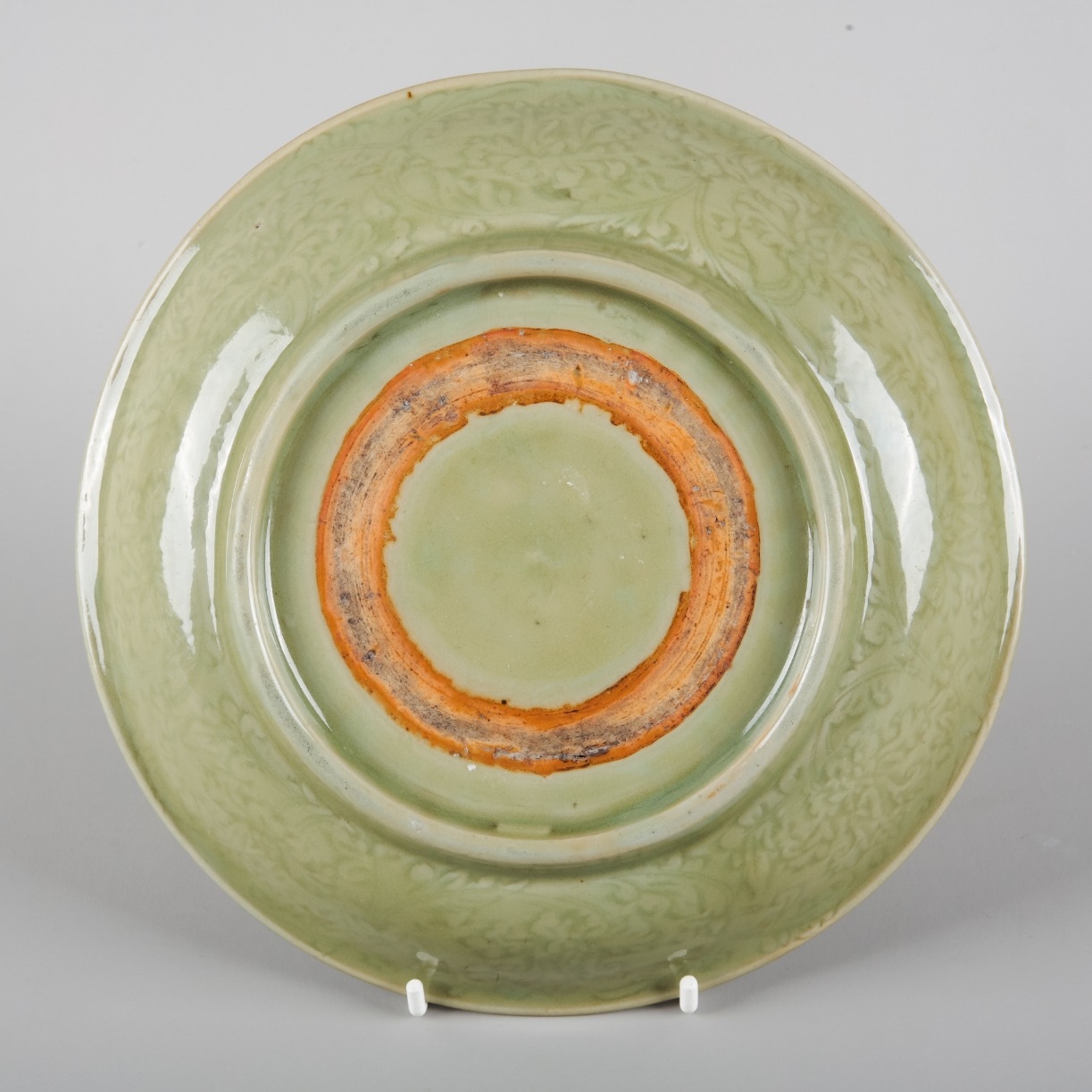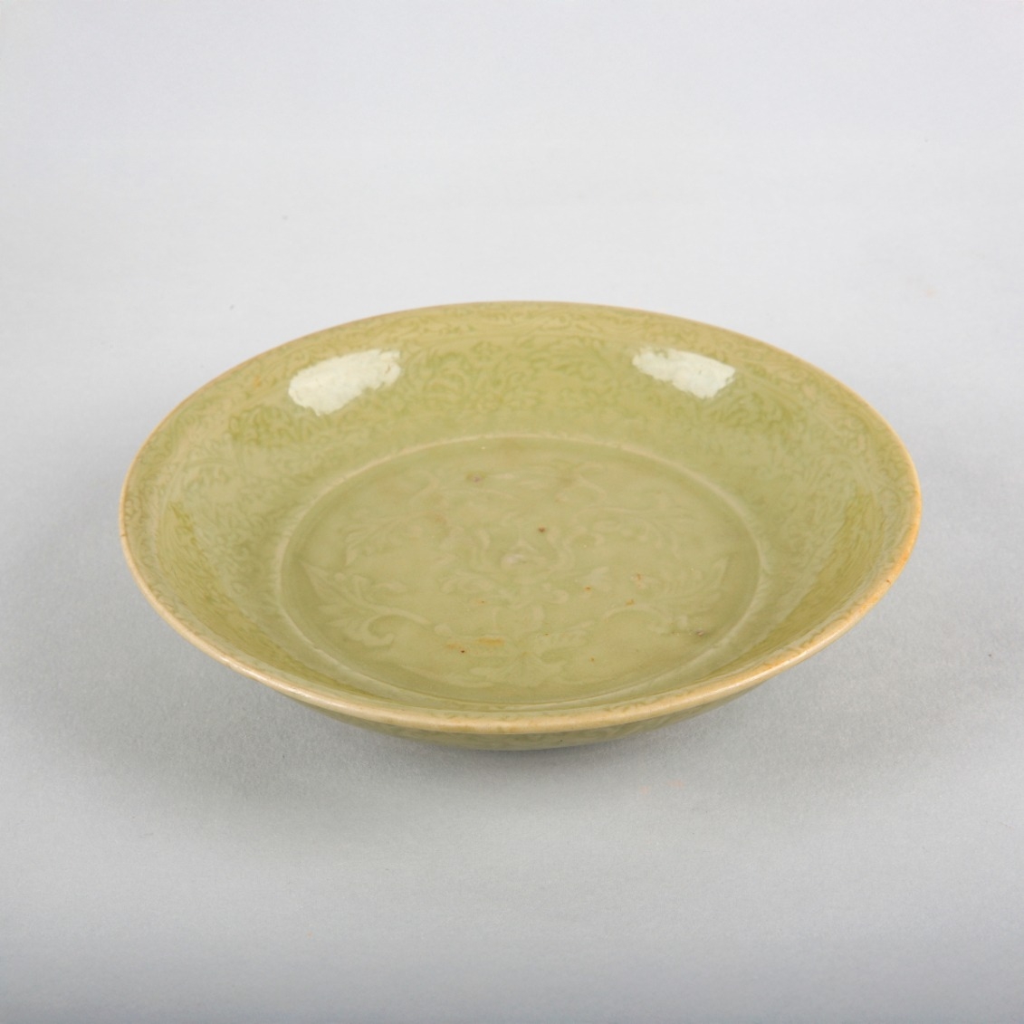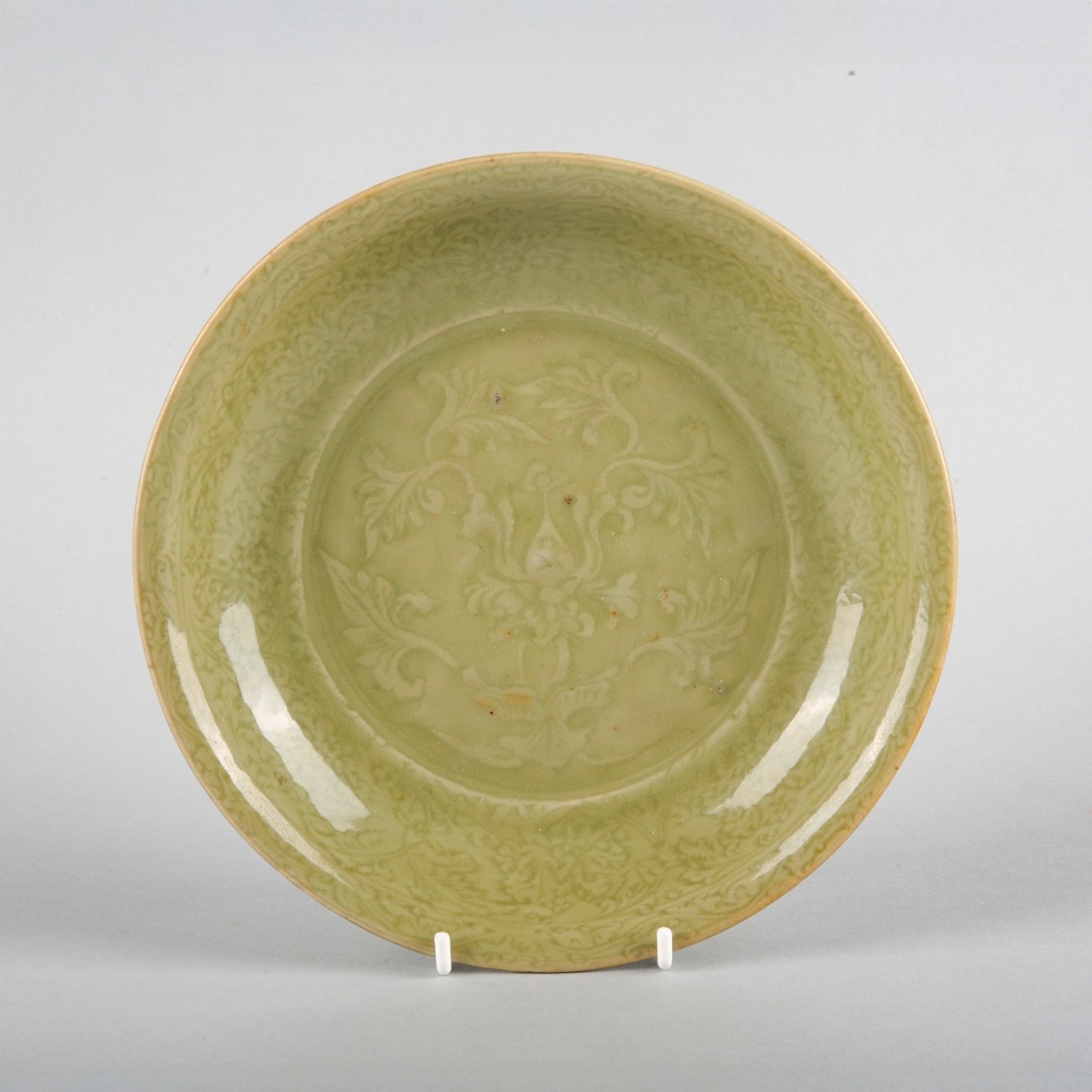 A CHINESE PORCELAIN LONGQUAN CELADON 'LOTUS' DISH