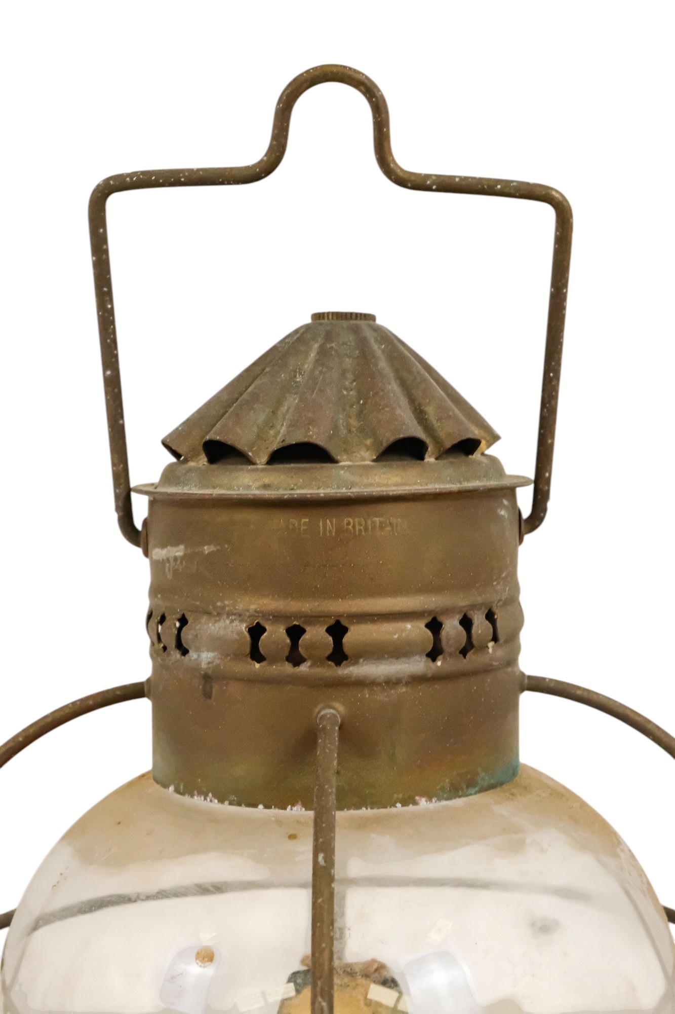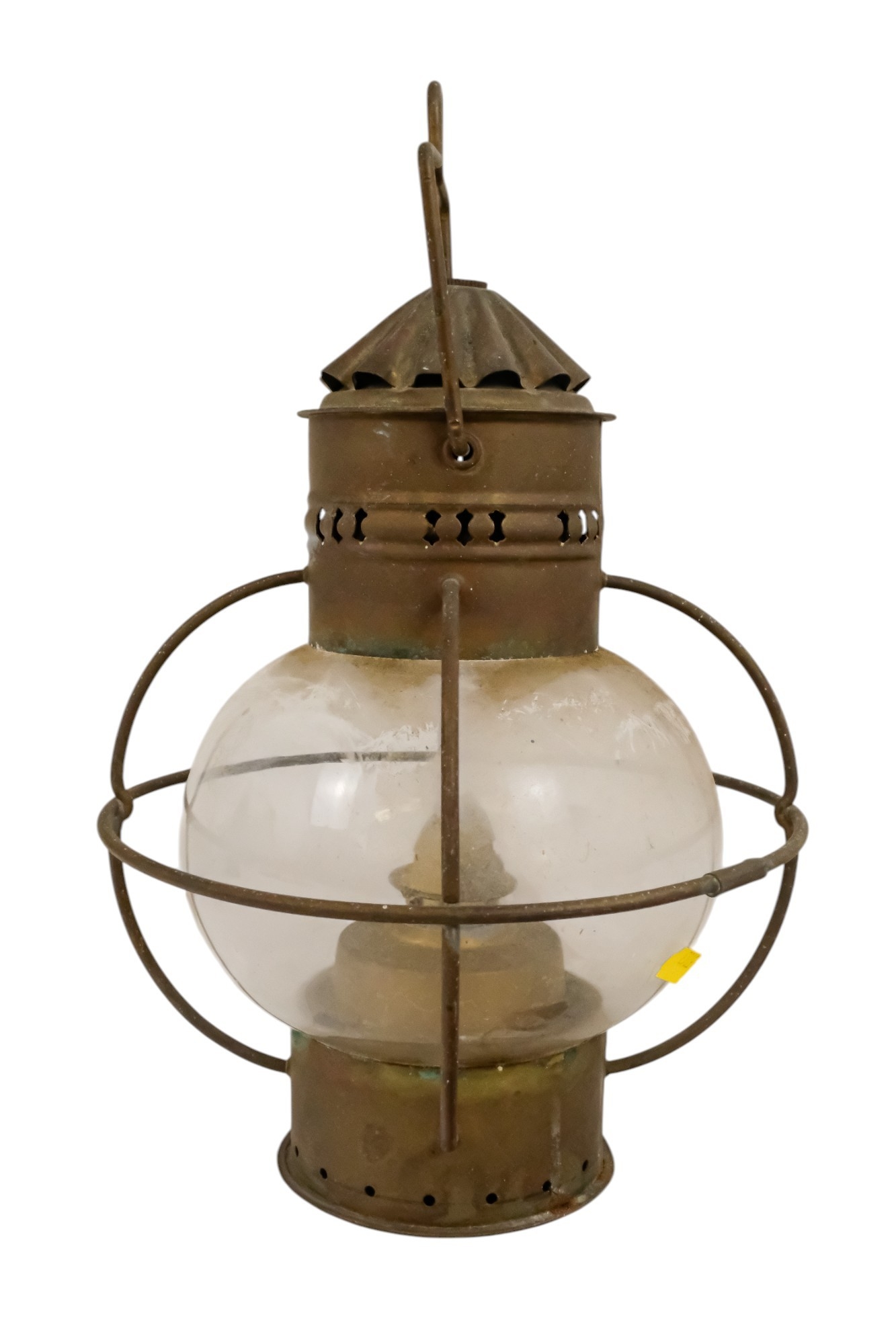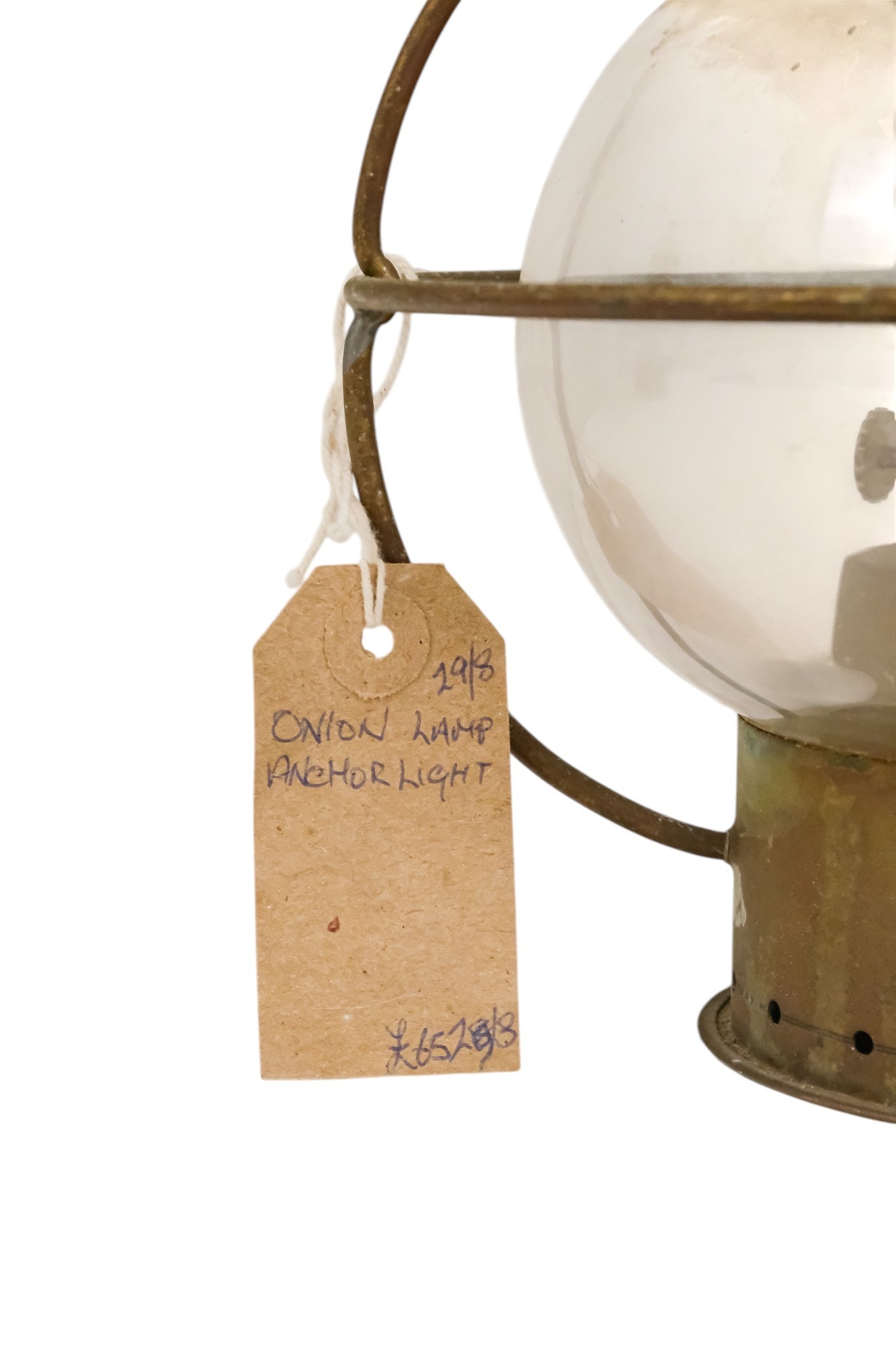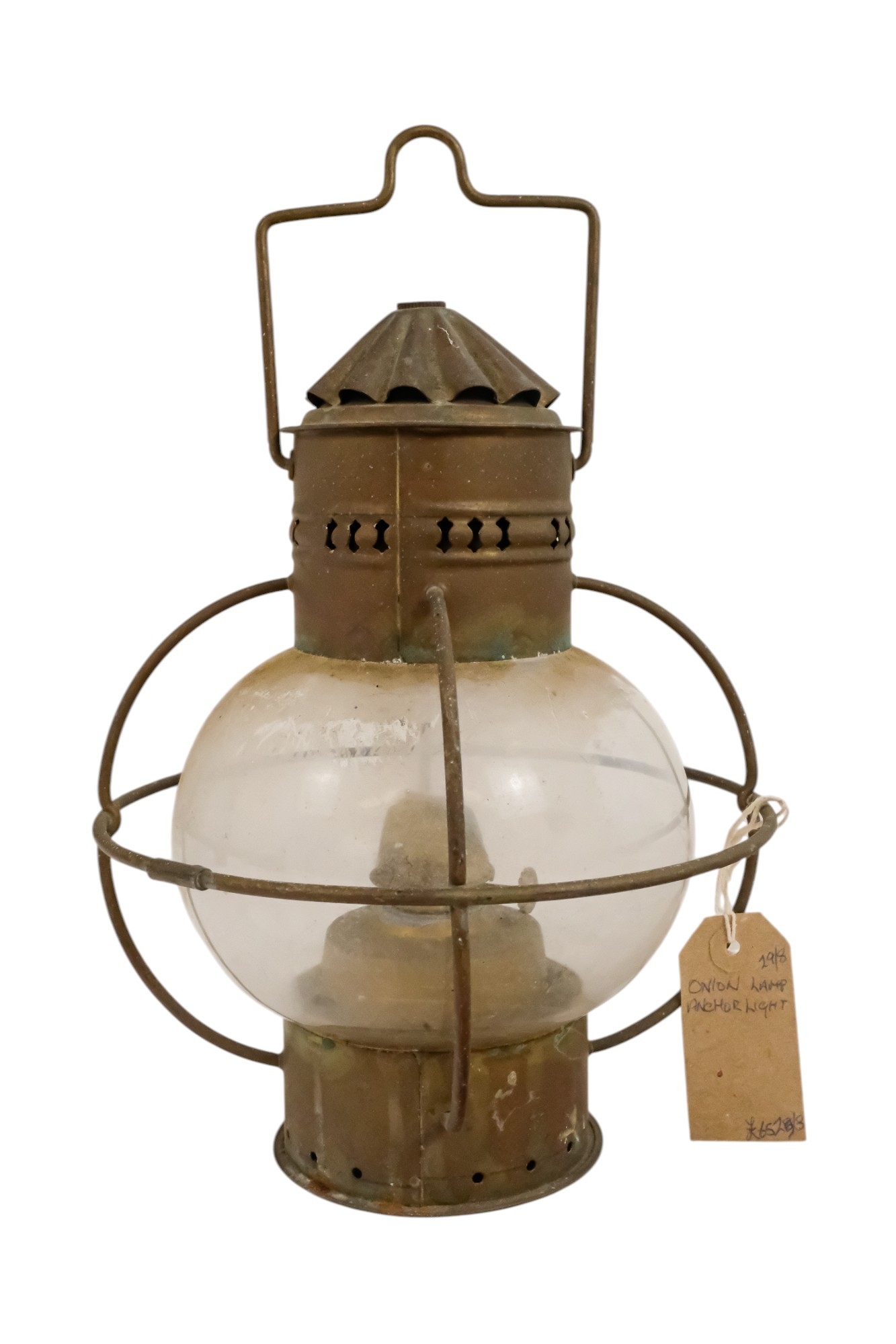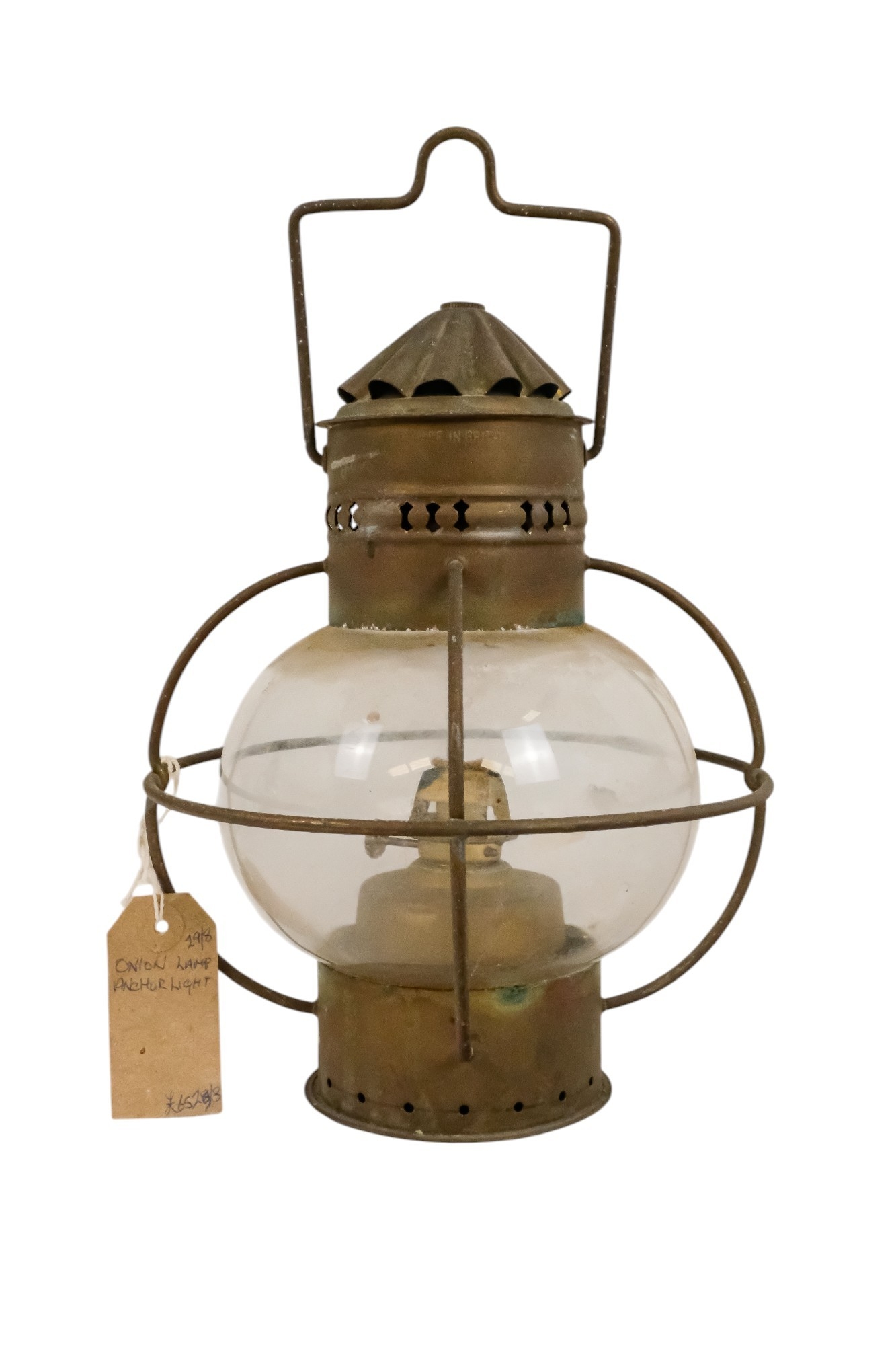 An early 20th century brass anchor light - with clear glass, 32cm high.