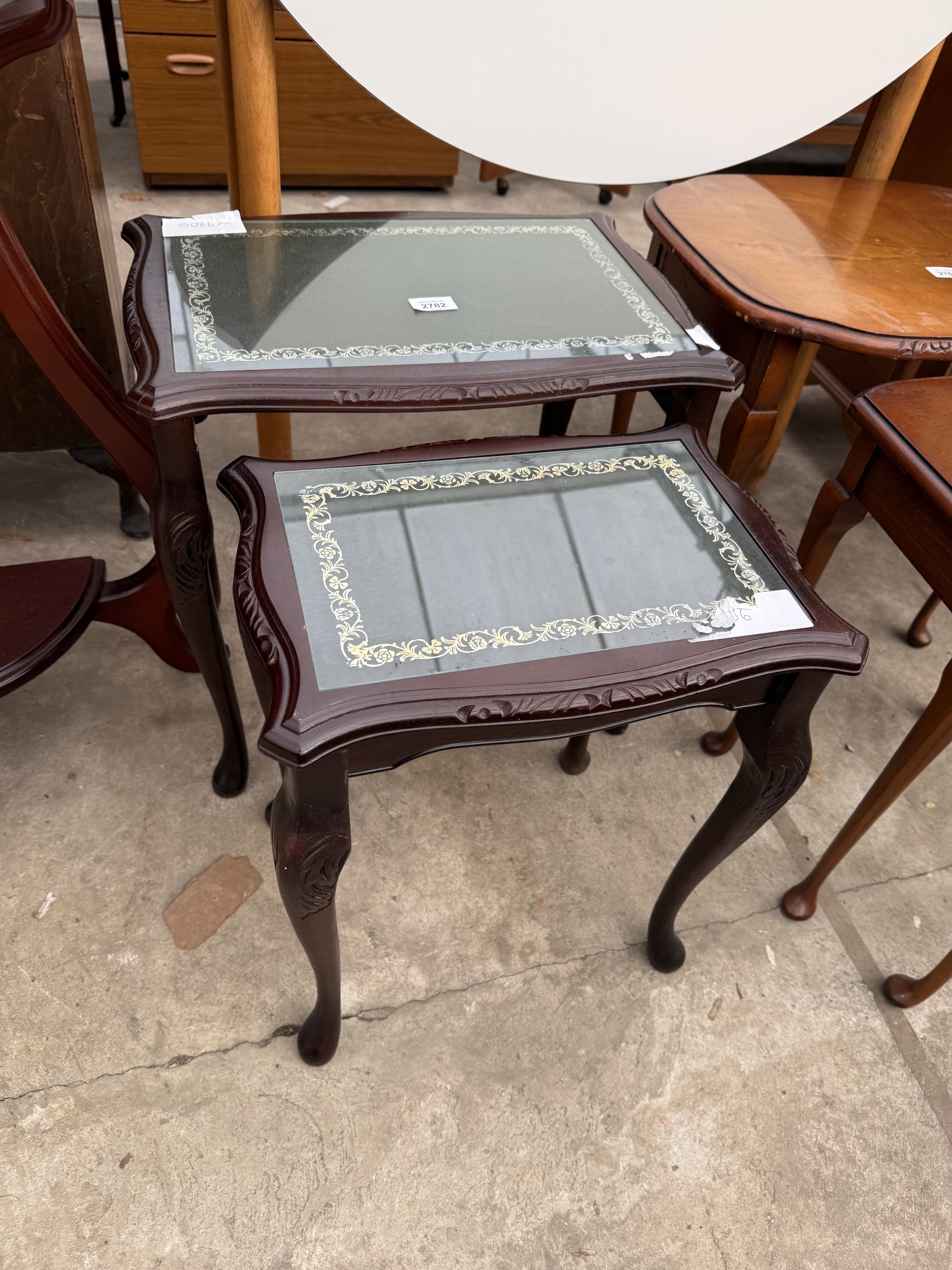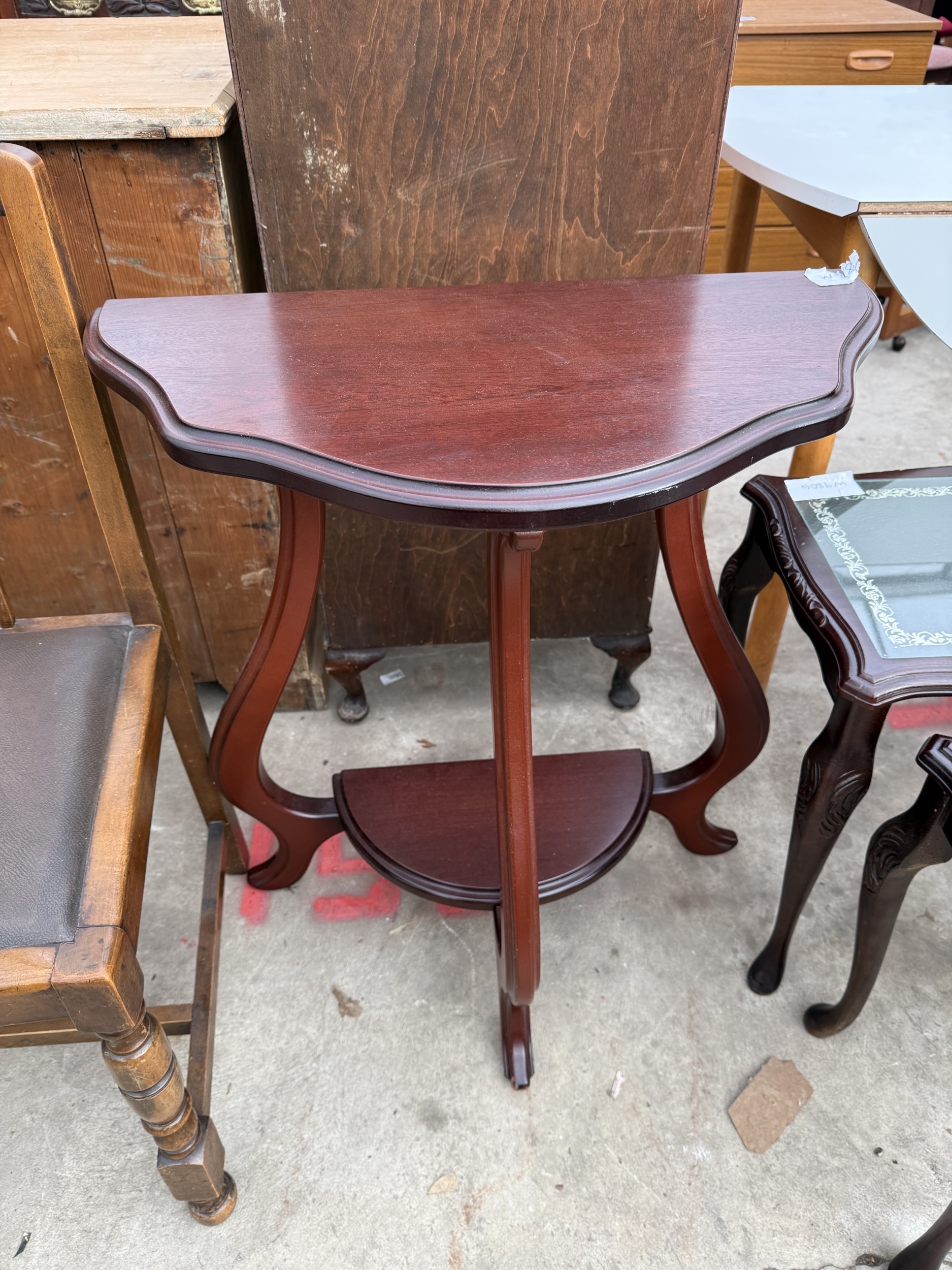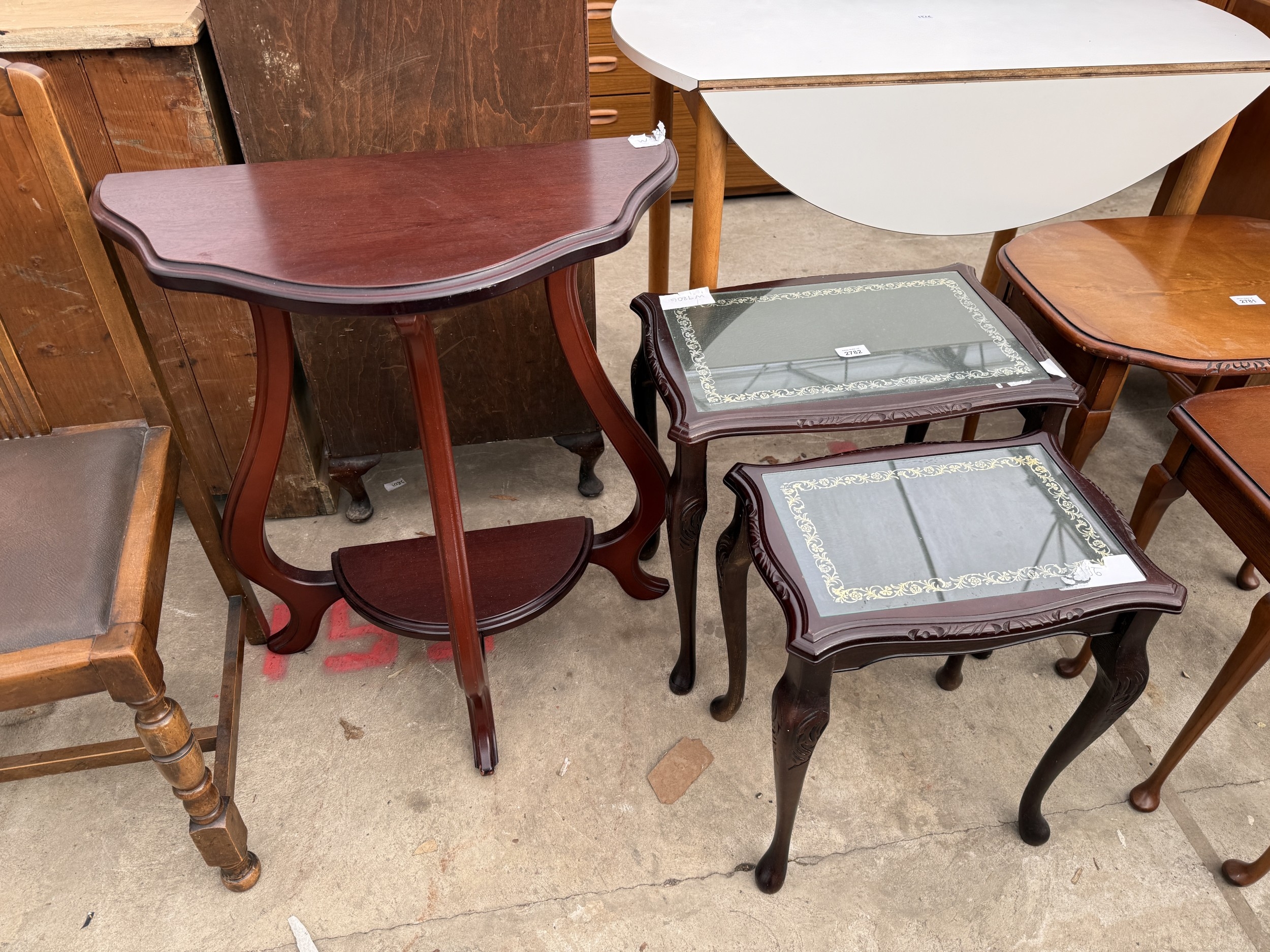 A NEST OF TWO TABLES AND TWO TIER CONSOLE TABLE