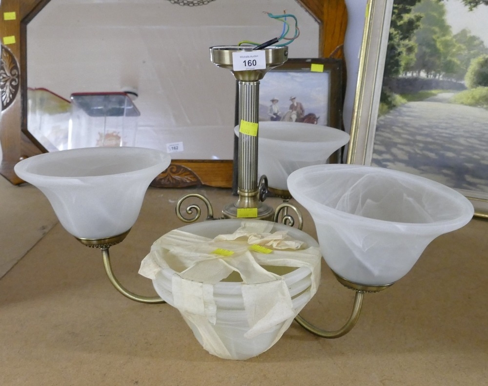 Brass effect ceiling light with glass shades and spares