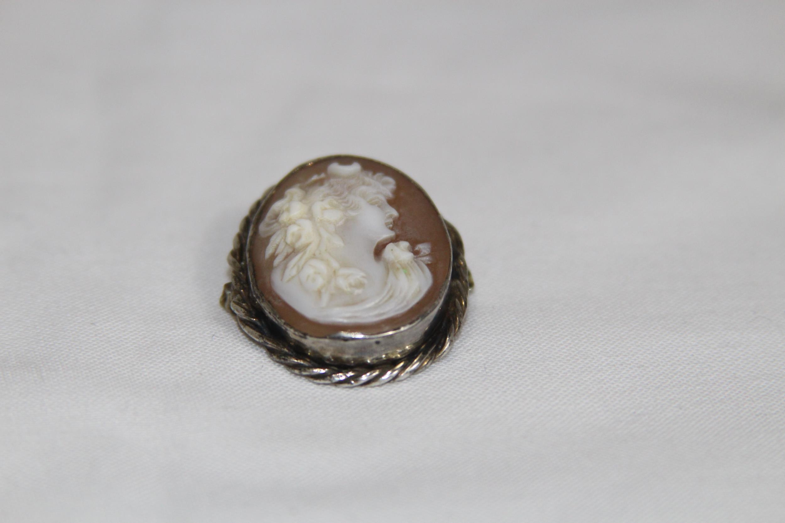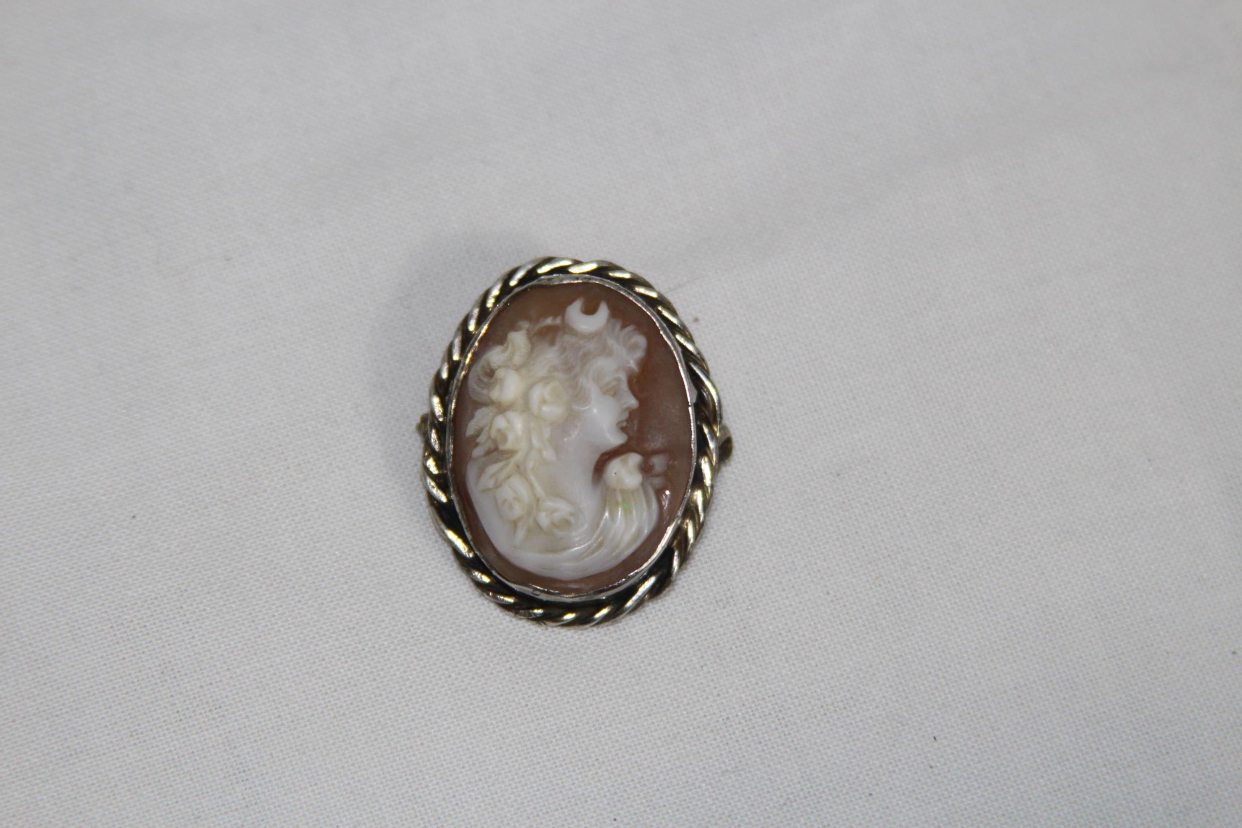 VINTAGE SILVER CAMEO BROOCH