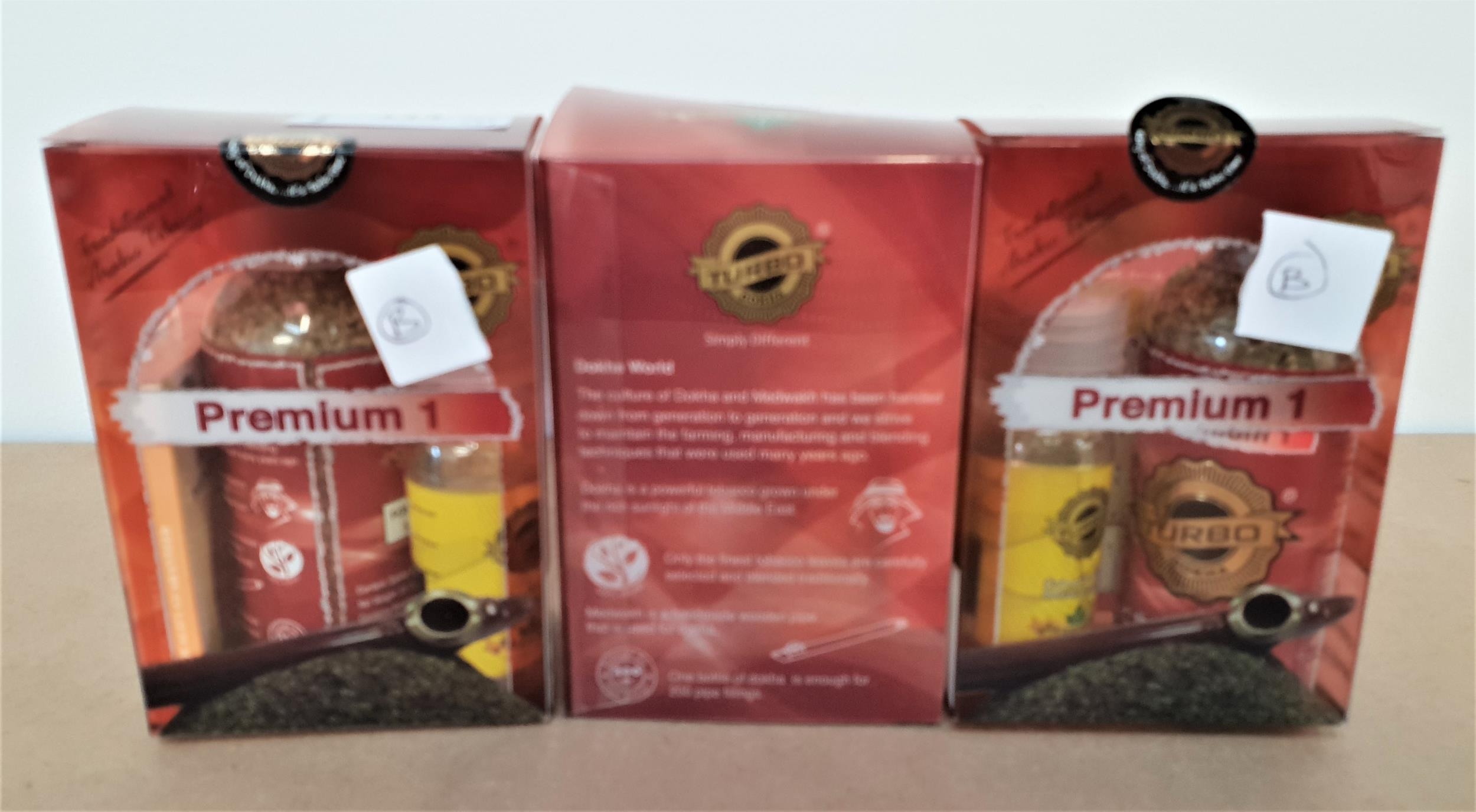 THREE BOXES OF TURBO DOKHA PREMIUM 1 TOBACCO PIPE FILLINGNote: you must be over the age of 18 to bod on this lot.