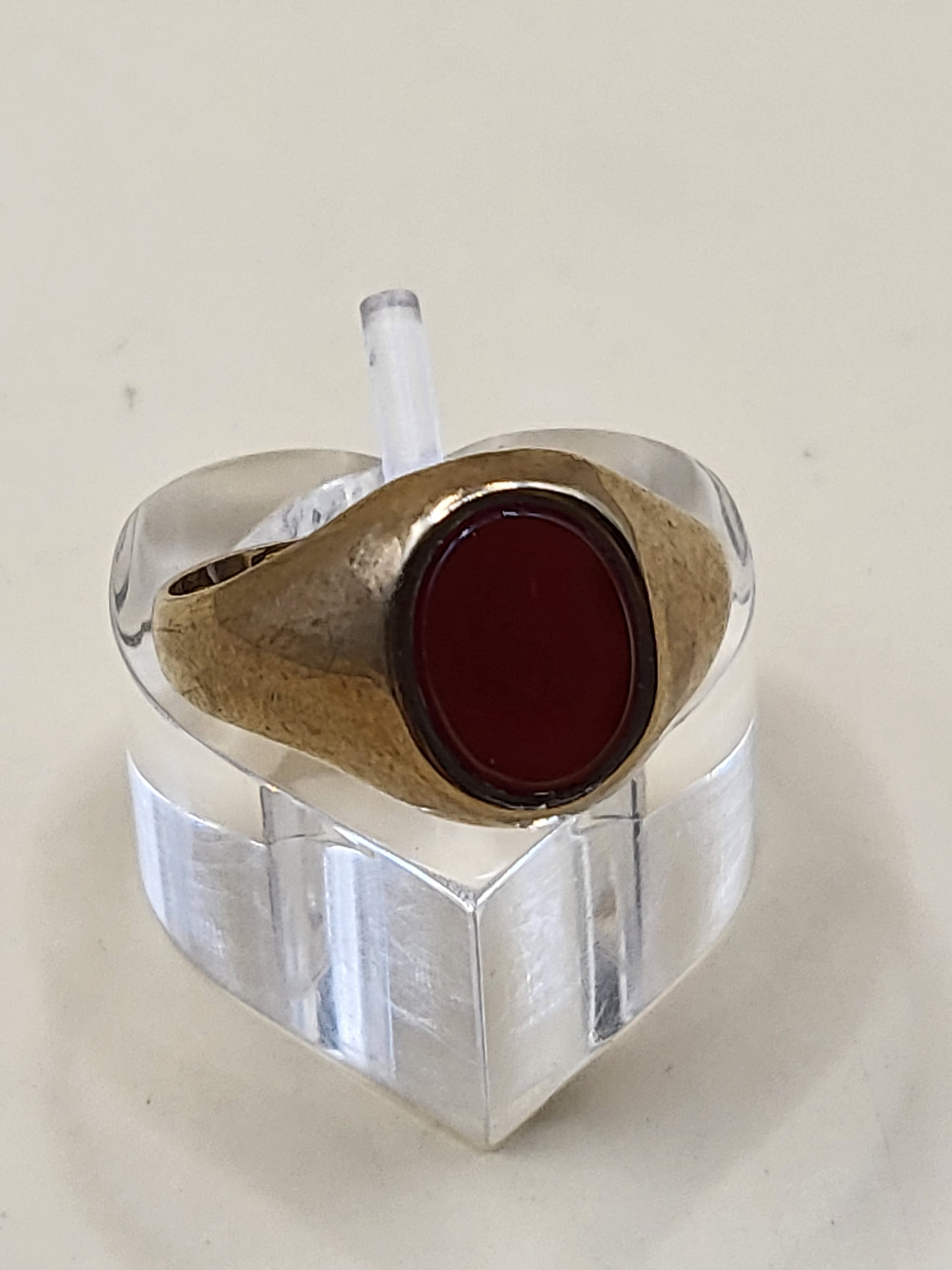 9ct Gold Bloodstone Pinkie Ring Size M Weighs 2.3g Fully Hallmarked
