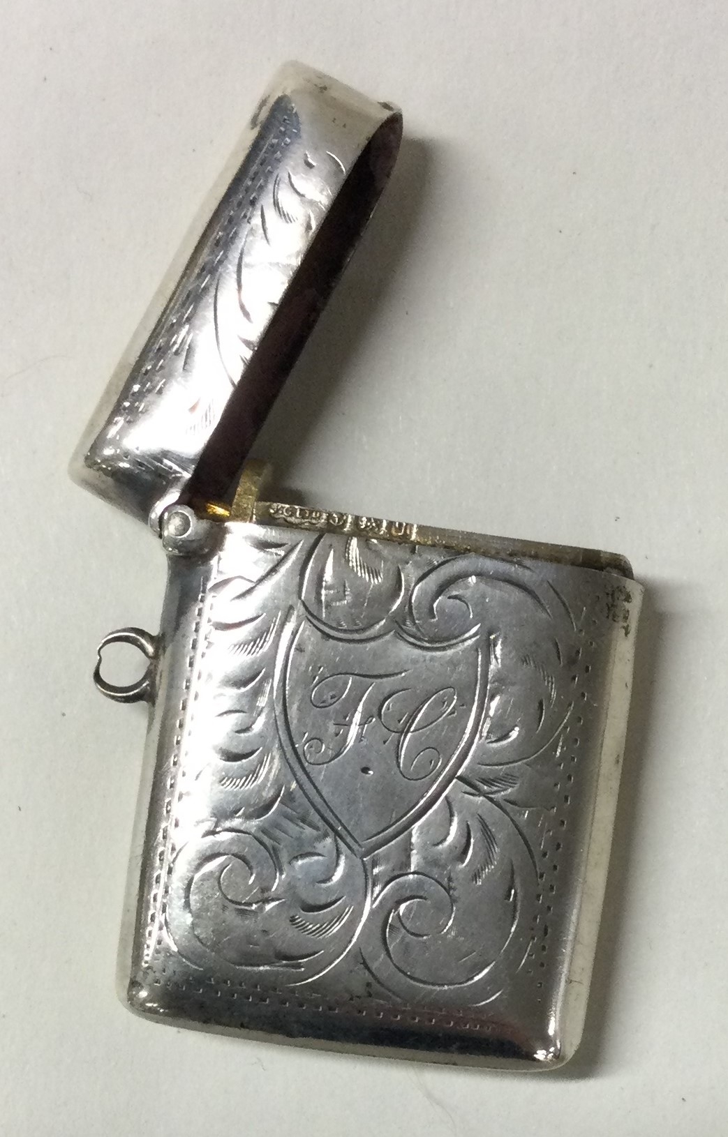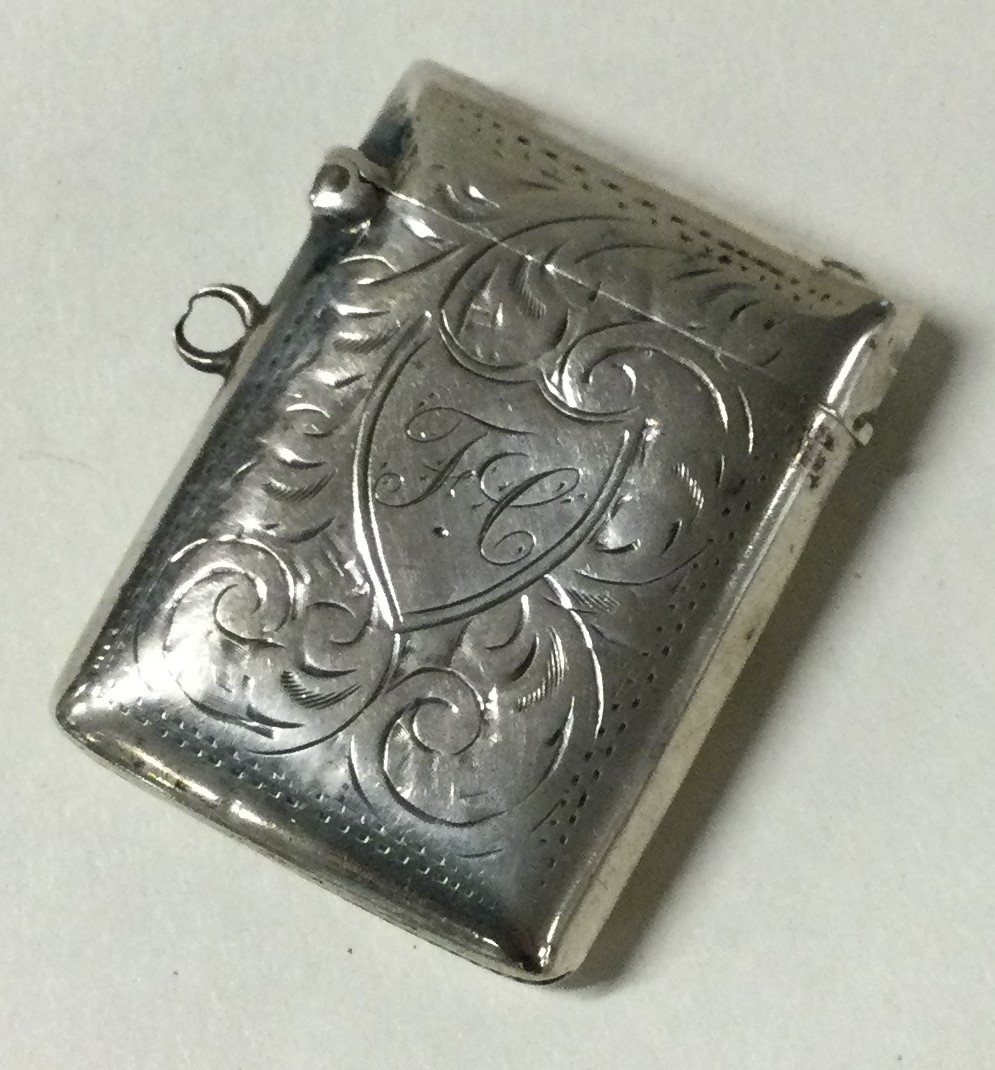 A silver vesta case. Birmingham 1915. Approx. 25 grams. Est. £20 - £30.