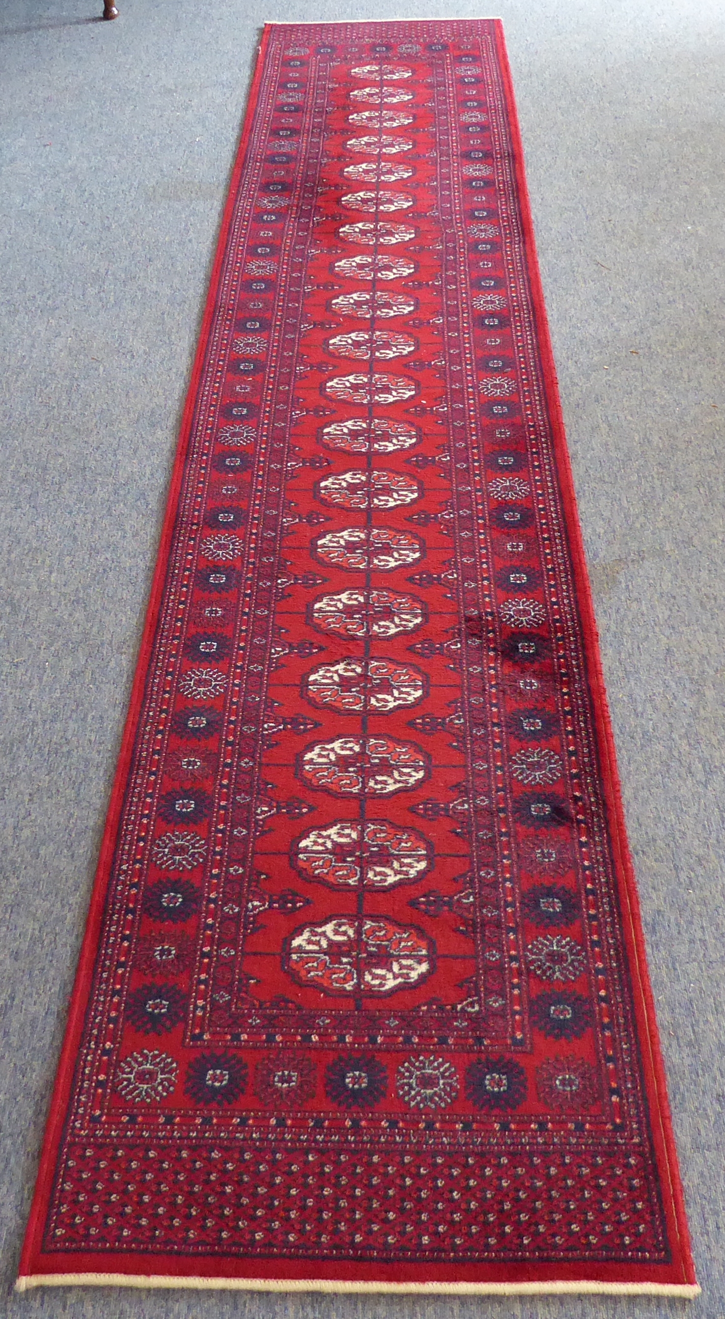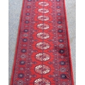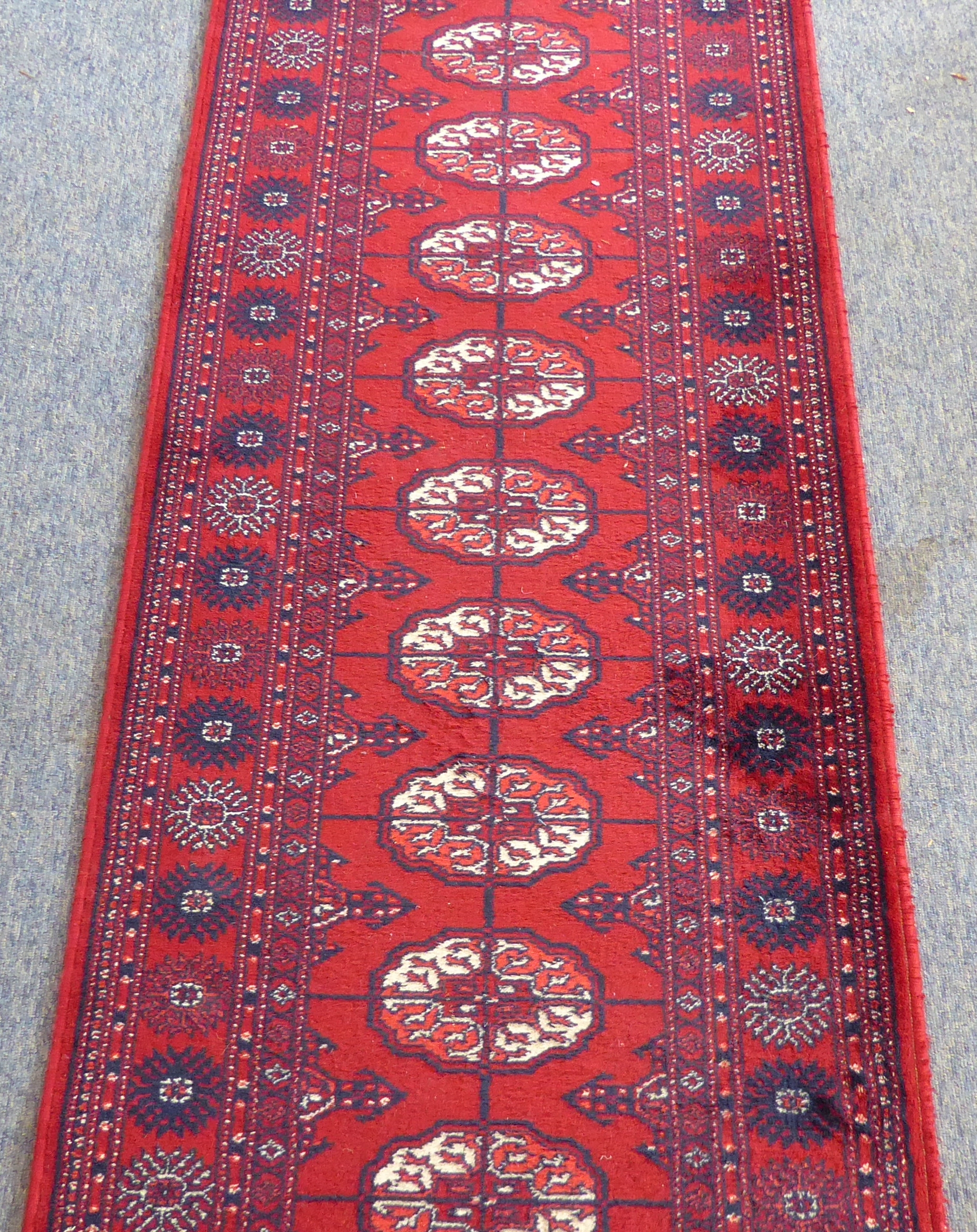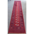 A red ground machine-made Persian-style runner with gul pattern (365 x 69 cm)
