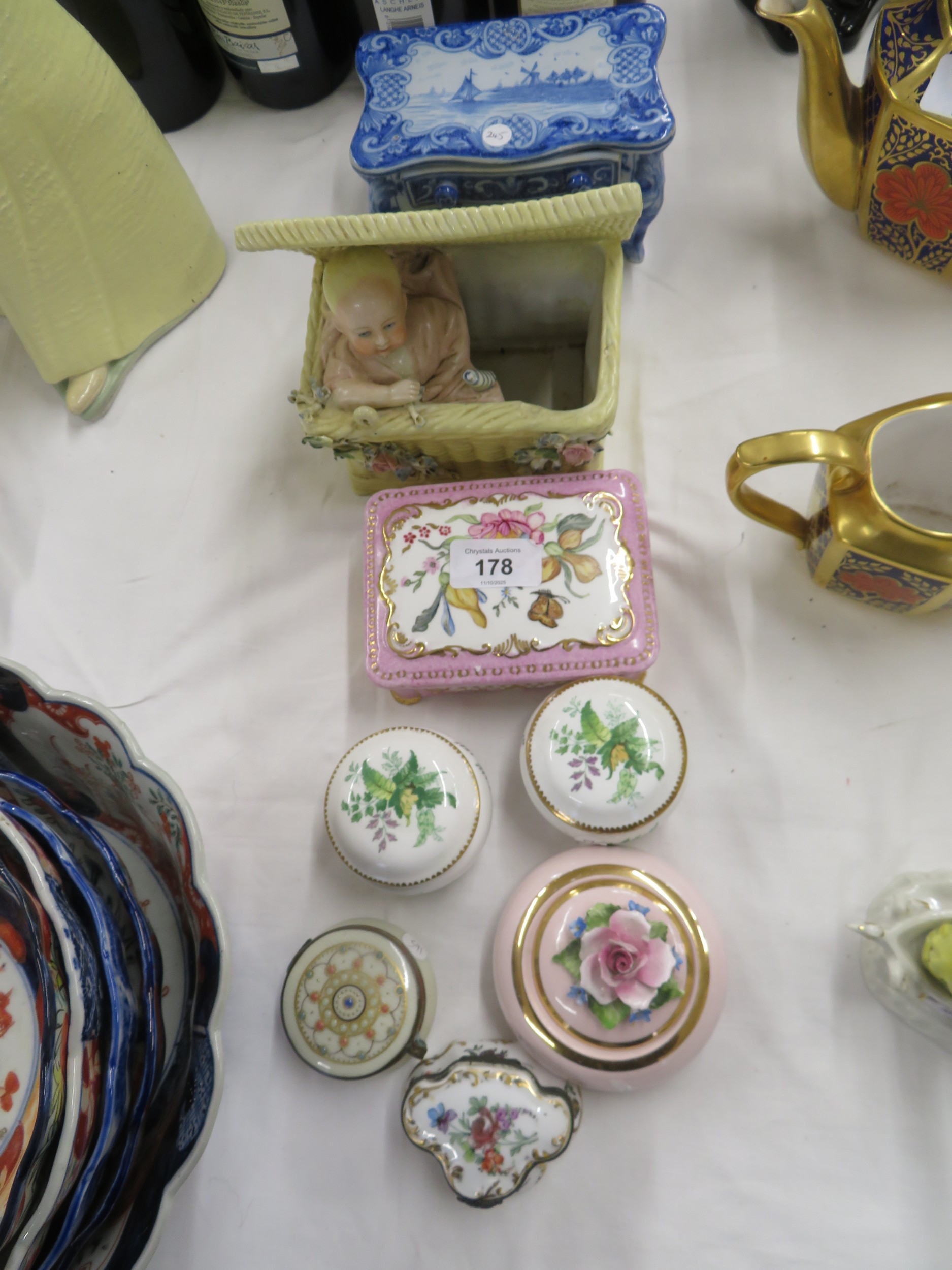 Eight porcelain boxes some French