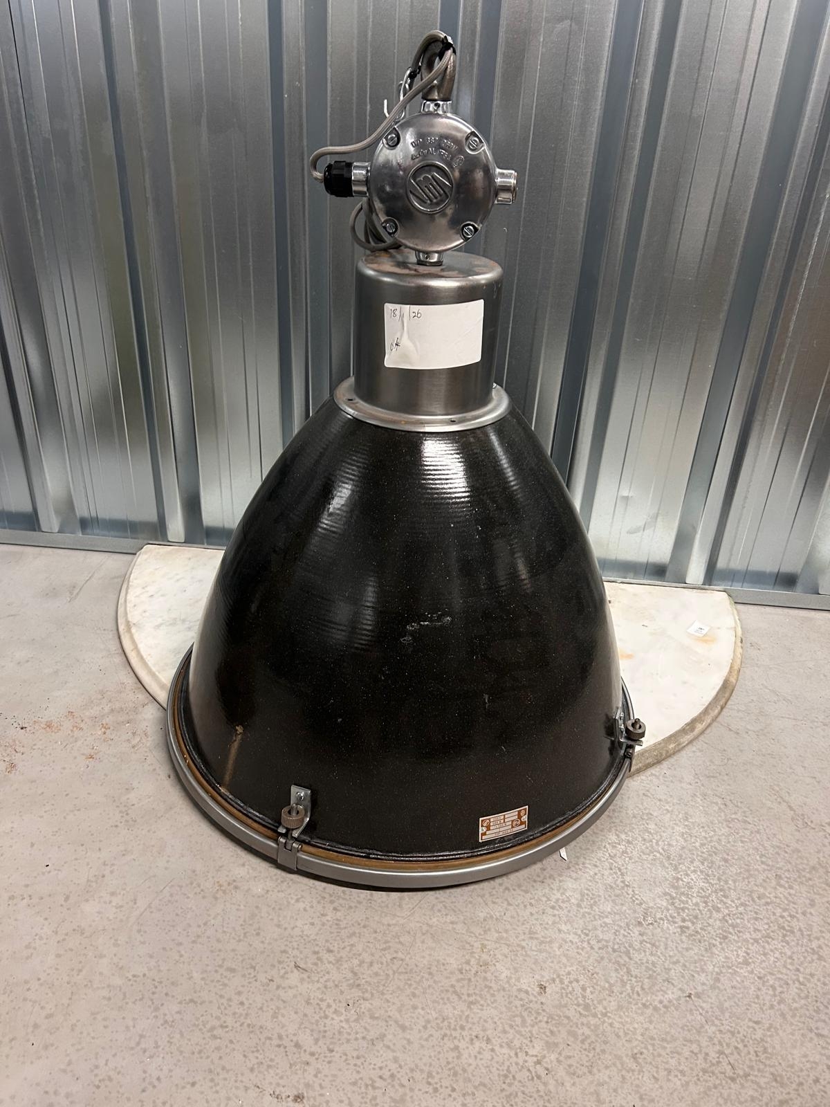 1 Czech Sawmill Pendant Light with original vintage enamel - Industrial Lamps - retail price E400+ A large vintage downlighter reclaimed from communist era industrial buildings across the Czech Republic. These lights were once used extensively across the former Eastern Bloc. though most have now fallen to the wrecking ball. The original vintage enamel has been toughened with glass diffuser.
