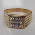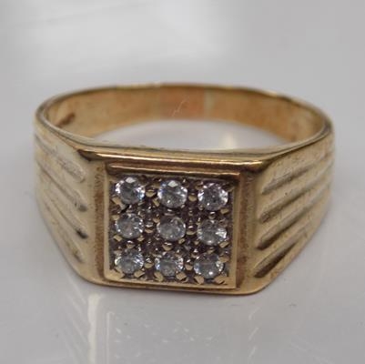 9ct Gold heavy gents signet ring with white stones size W 1/2