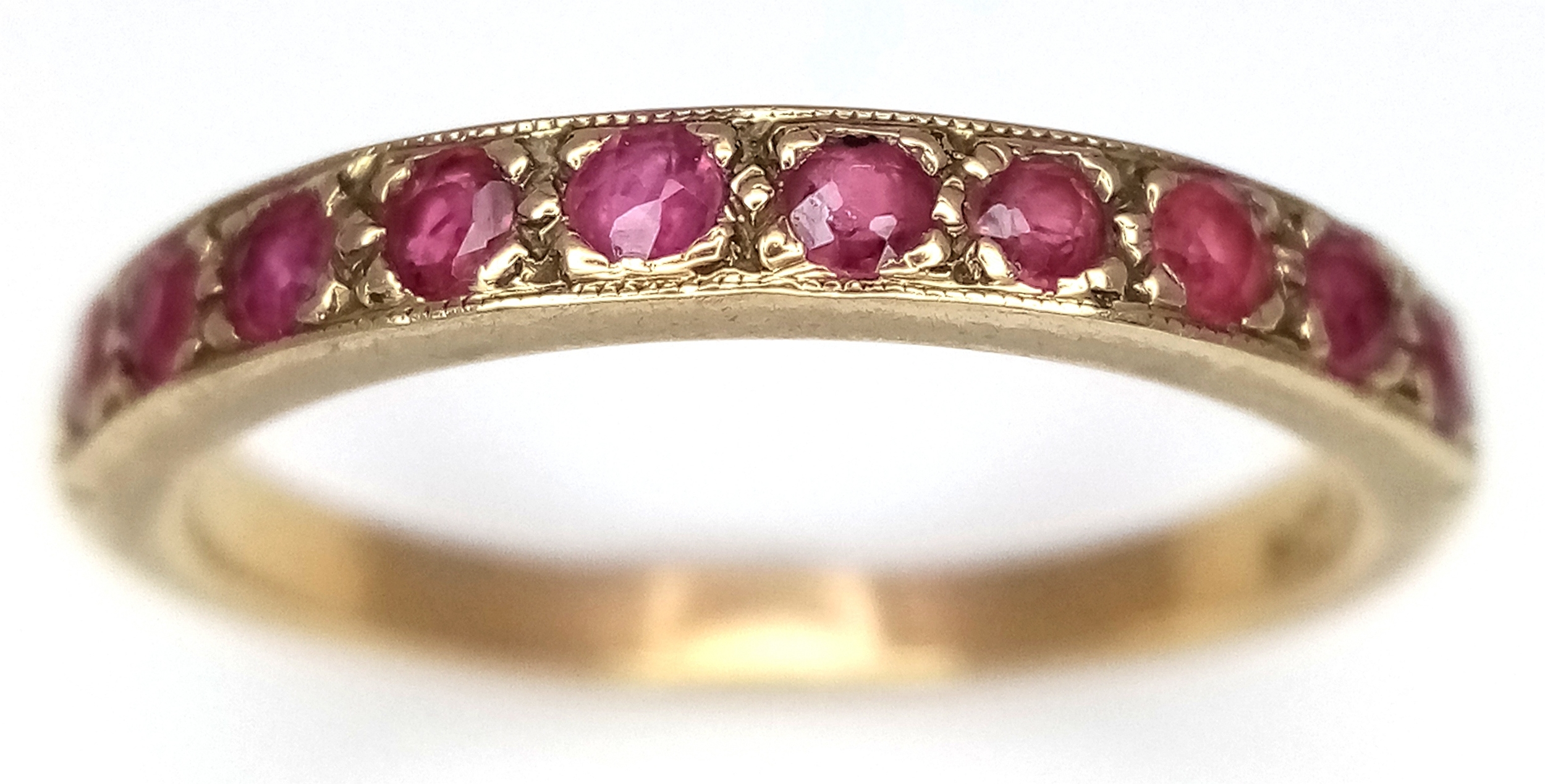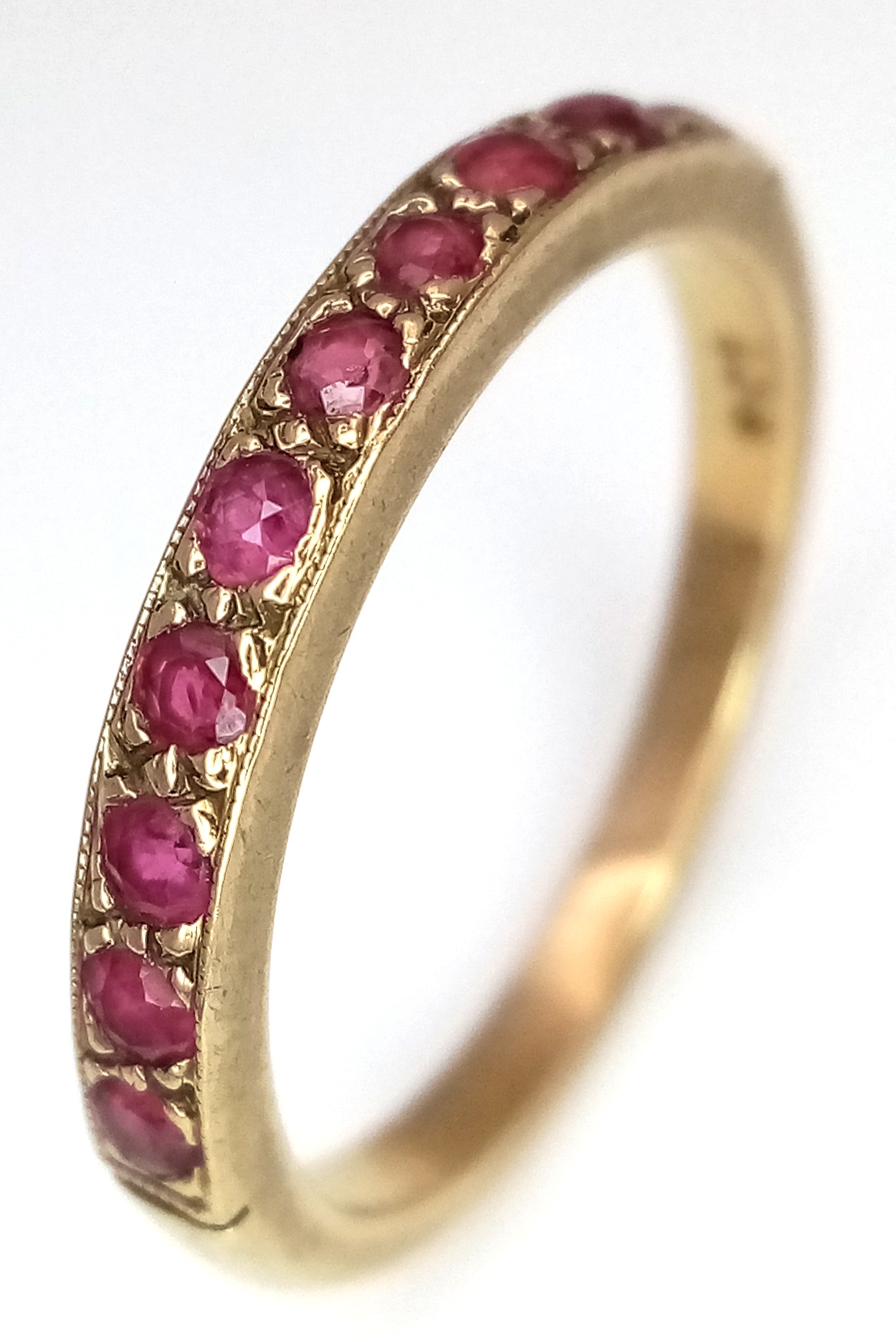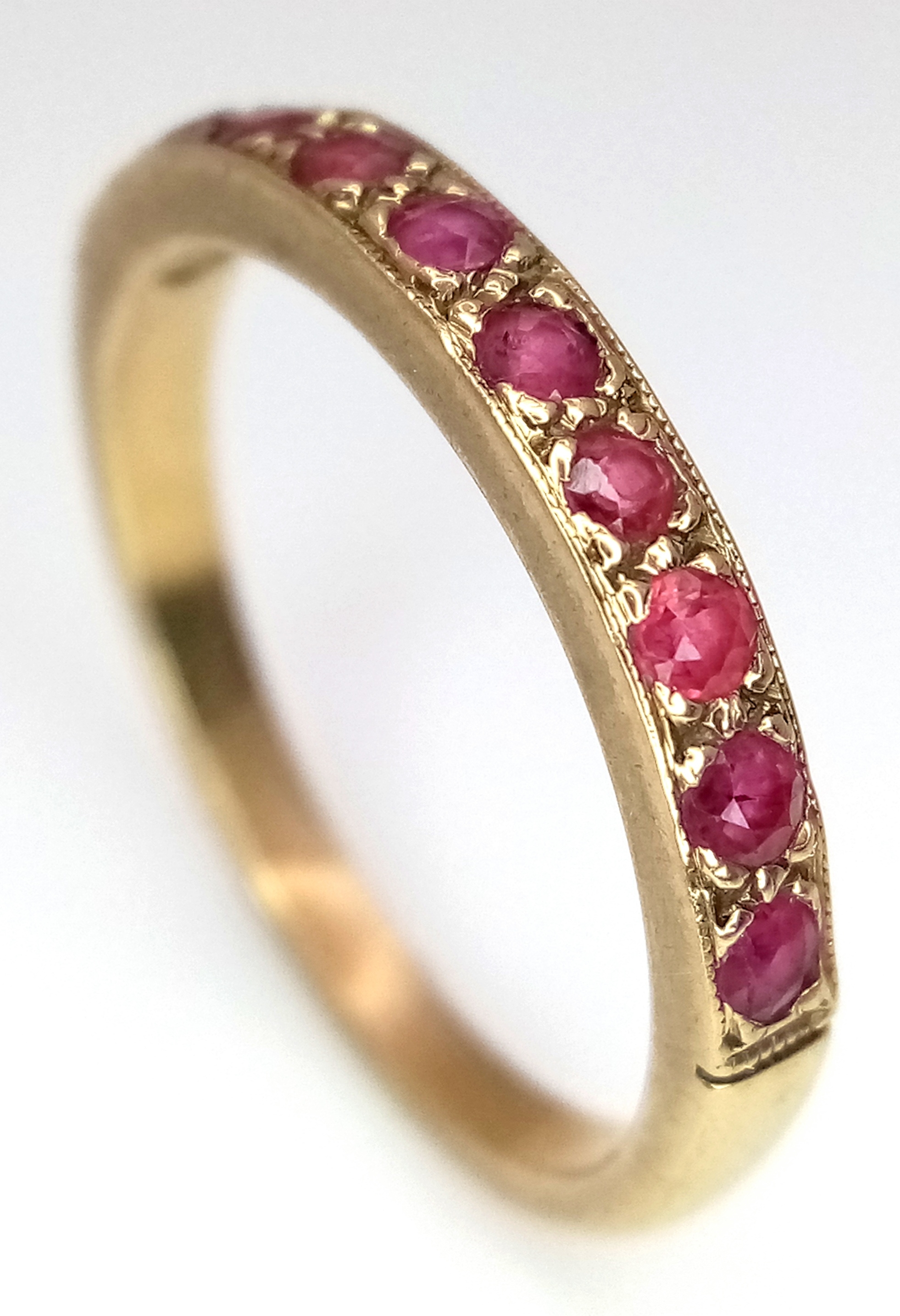 A 9K Yellow Gold, Garnet Half Eternity Ring. Size N 1/2. 2.25g.