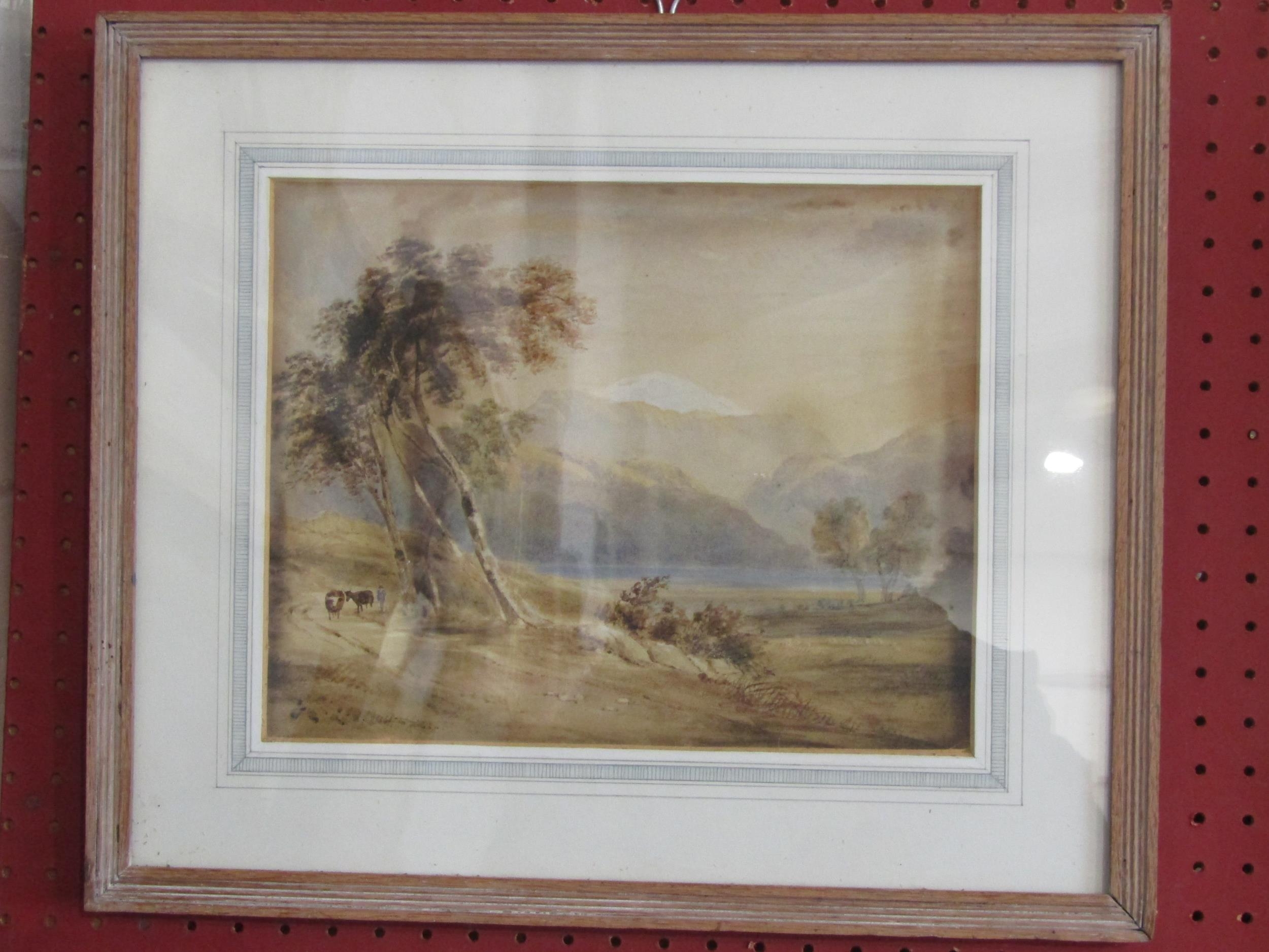 A framed and glazed 19th Century watercolour, mountain lake scene. Image size 22cm x 27.5cm. From the estate of Antony Maitland, illustrator and artist, winner of the Kate Greenaway medal 1961