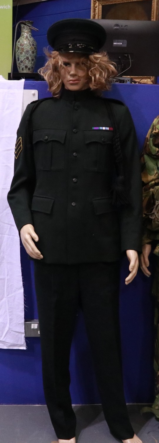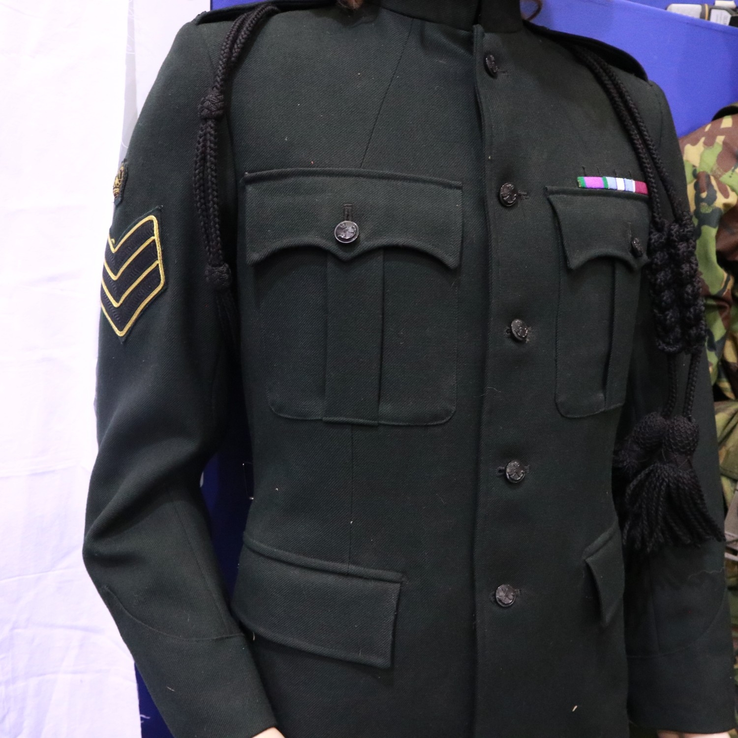 Royal Green Jackets dress uniform comprising tunic badged to Sergeant, trousers and cap (no badge). UK P&P Group 3 (£35+VAT for the first lot and £10+VAT for subsequent lots)