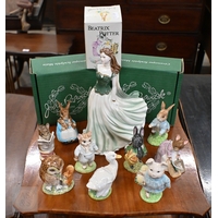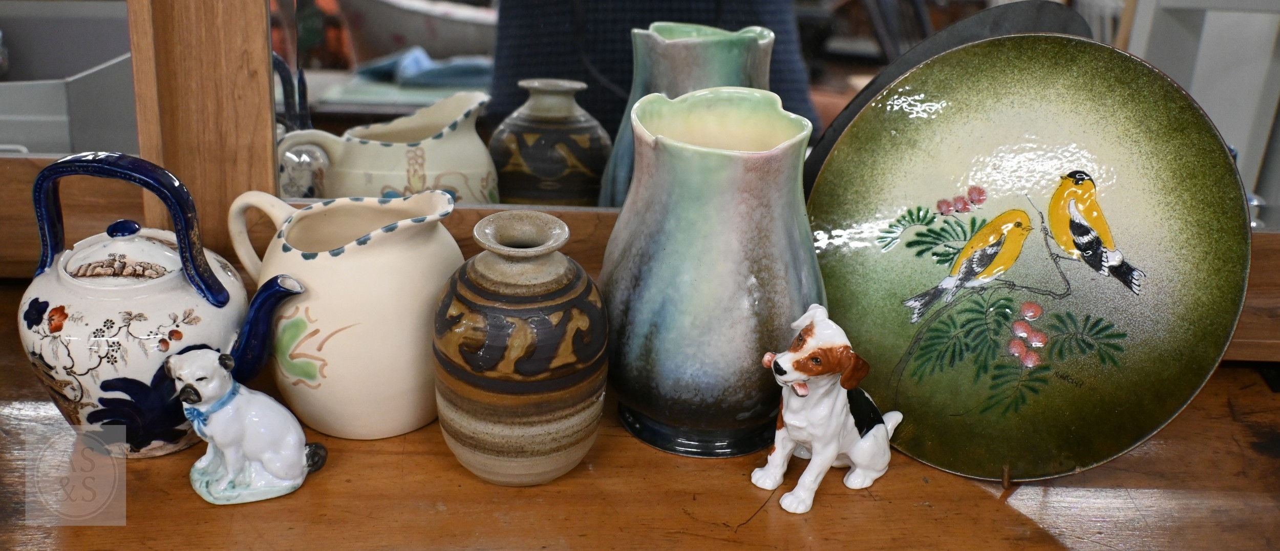 Various 19th century and later decorative ceramics including Derby, Wedgwood, Royal Doulton Terrier, Royal Worcester, etc (box)