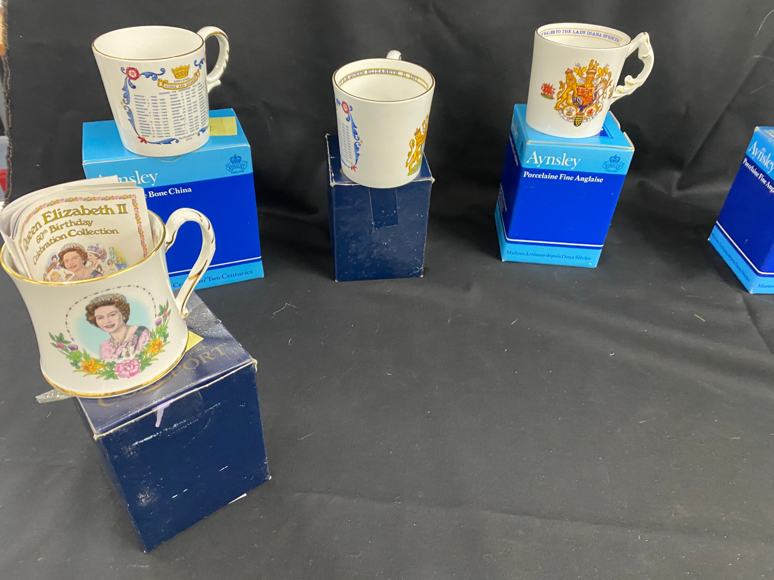 Selection of assorted boxed collectors mugs includes limited edition etc
