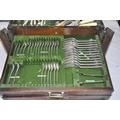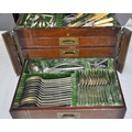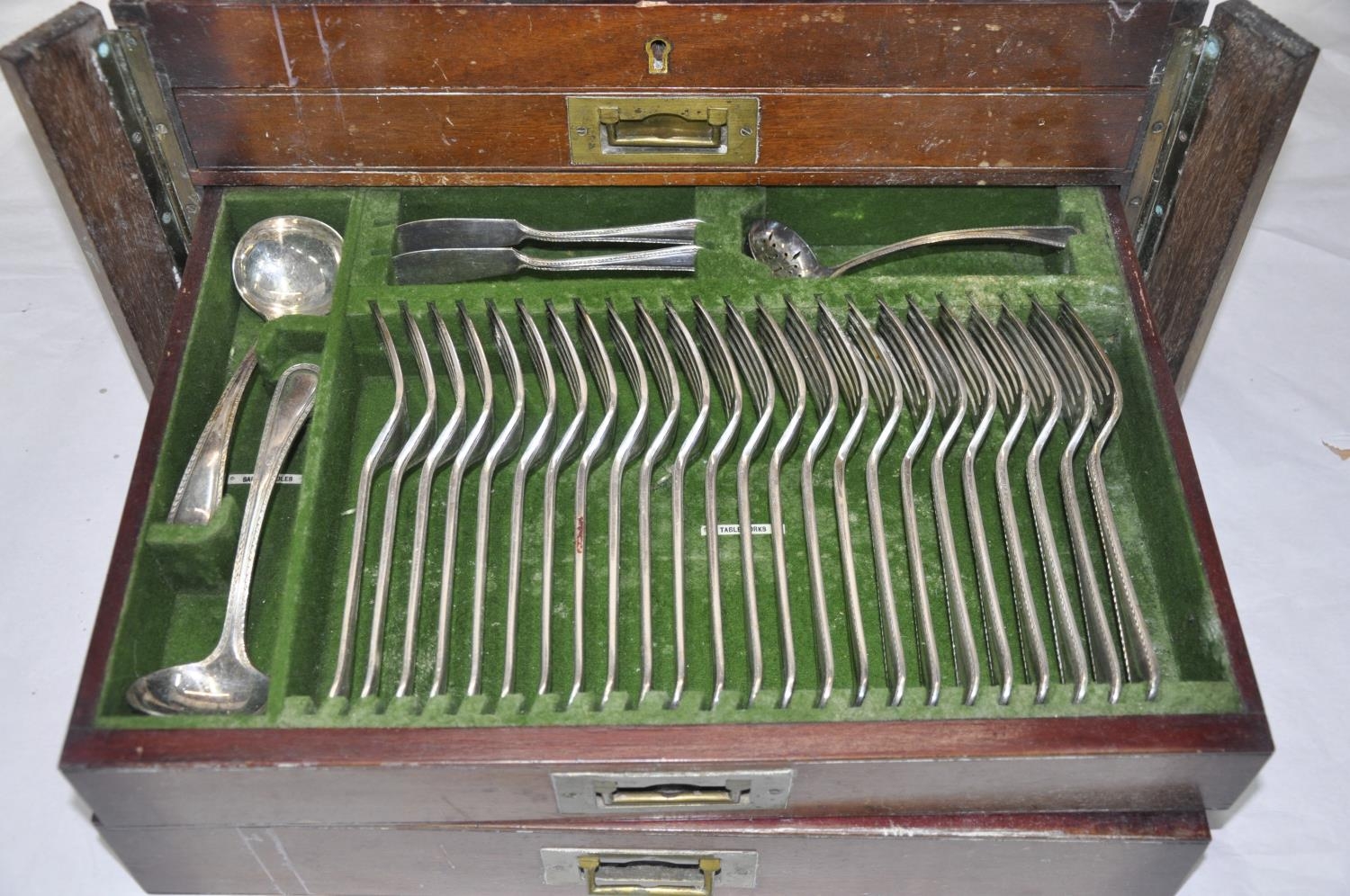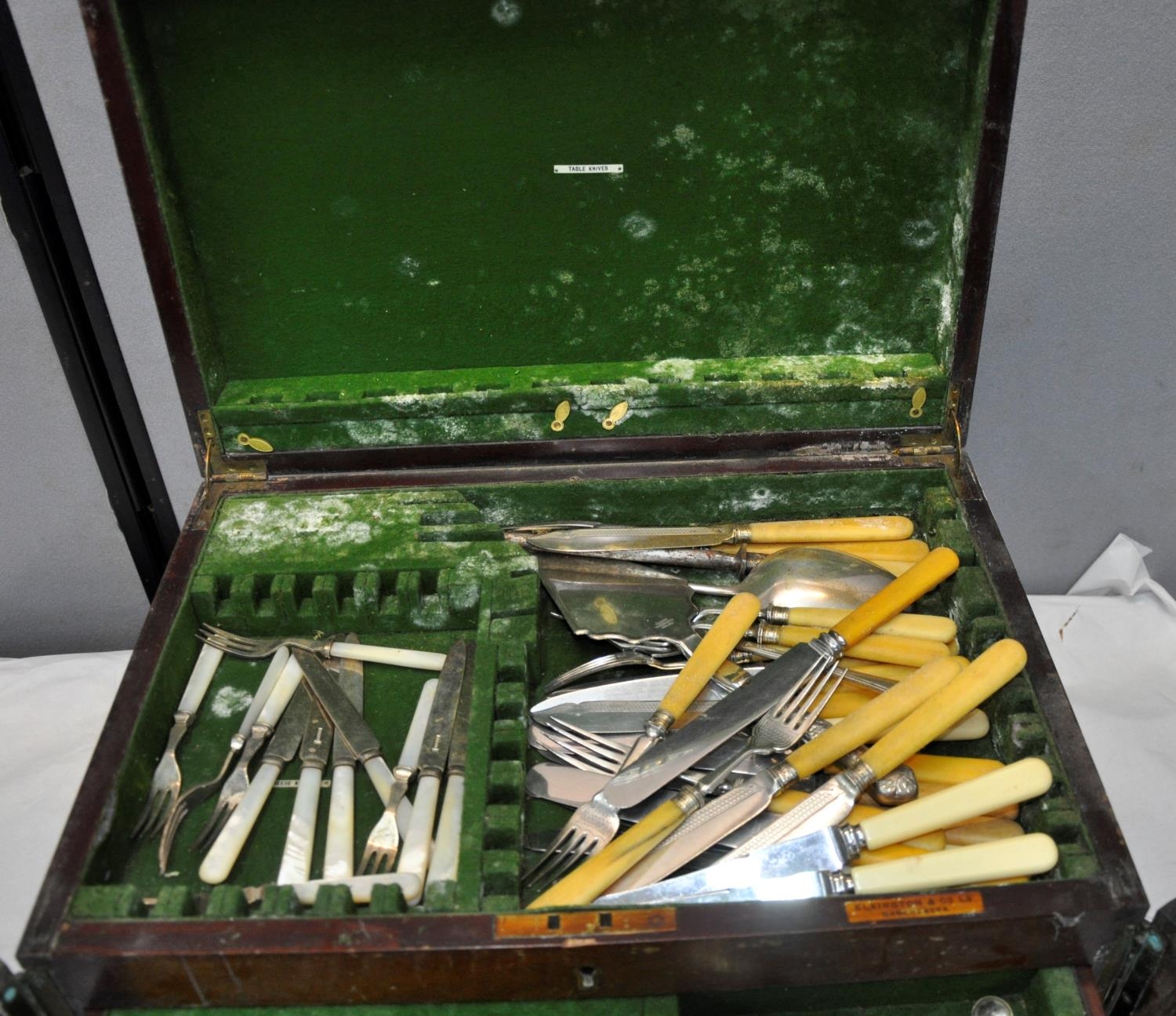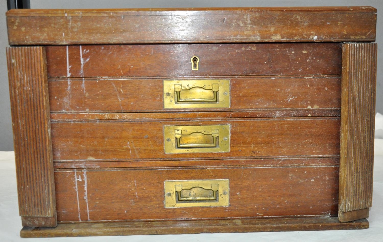 CUTLERY CANTEEN WITH 3 DRAWERS AND BRASS HANDLES - COINTAINING MISCELLANEOUS CUTLERY