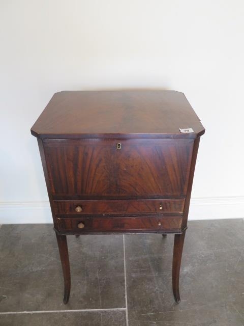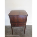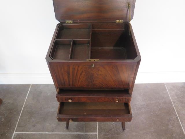A mahogany work box with a lift up top and two drawers, 69cm tall x 43cm x 34cm