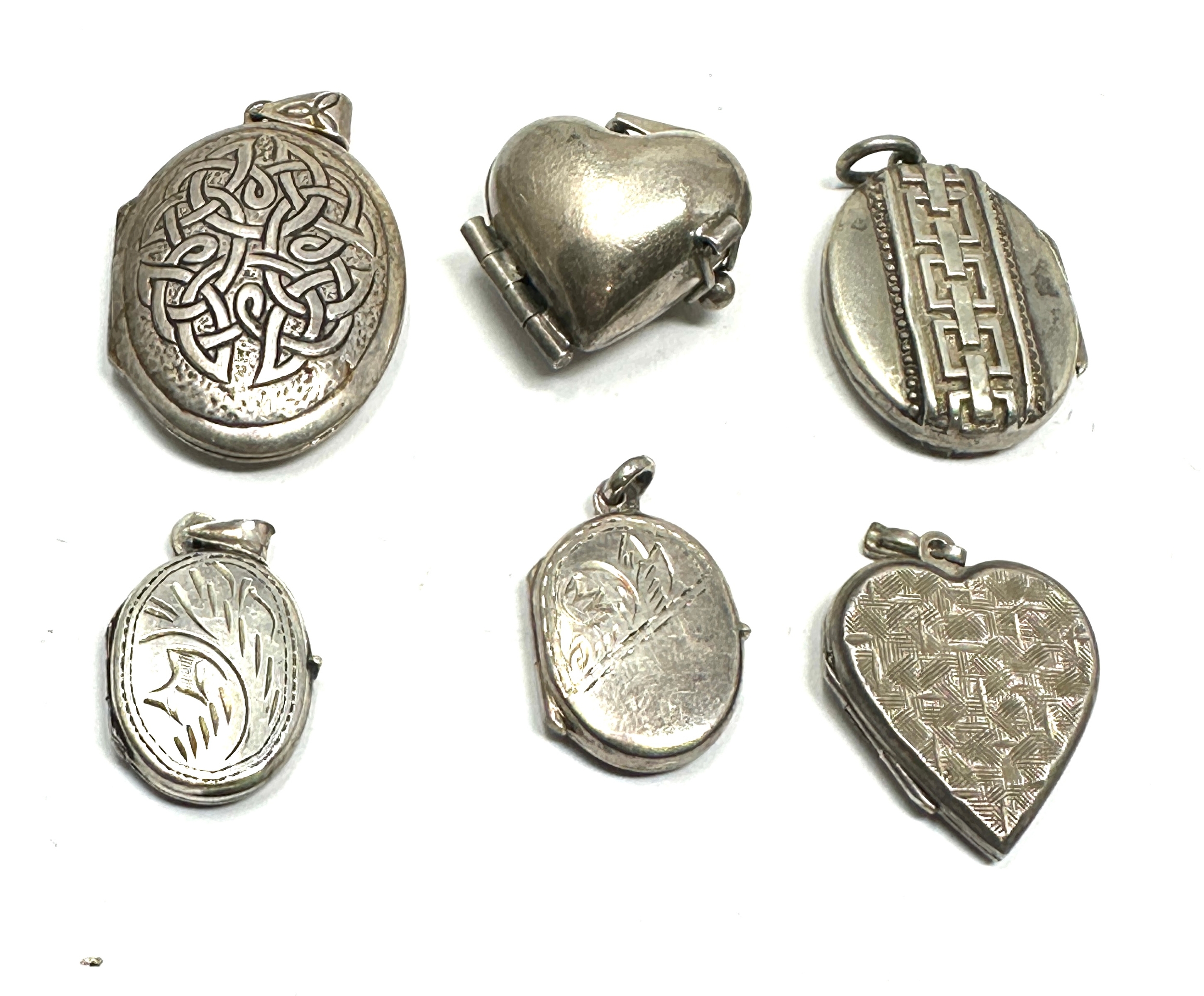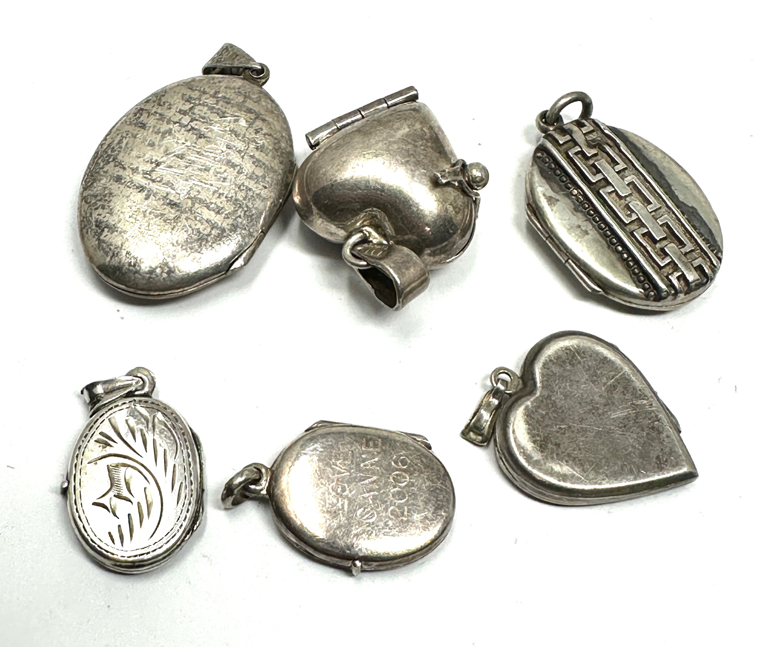 6 vintage silver lockets largest measures approx 4cm drop weight 32g