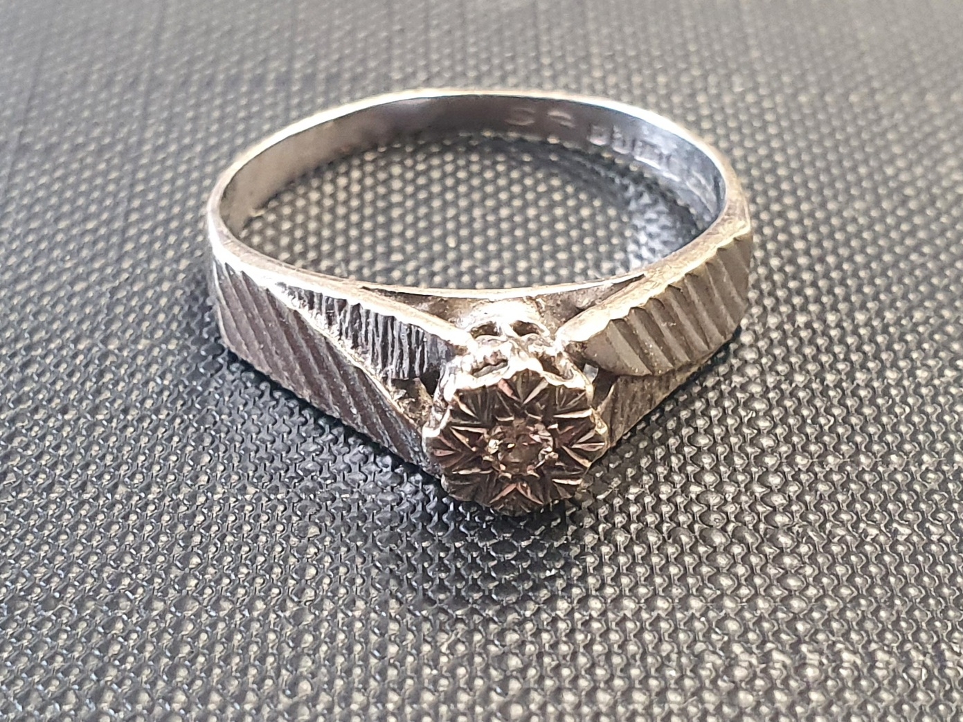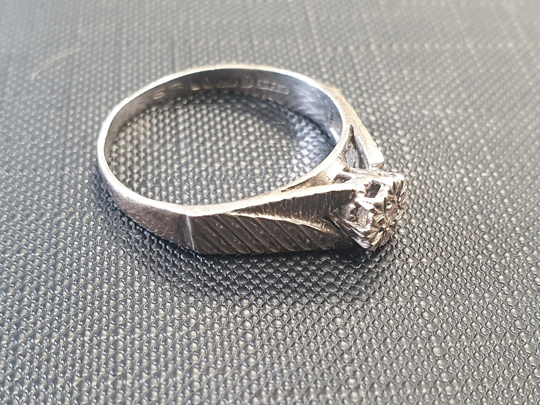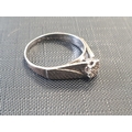 9ct White Gold Solitaire Ring weight 3.2g. Size S