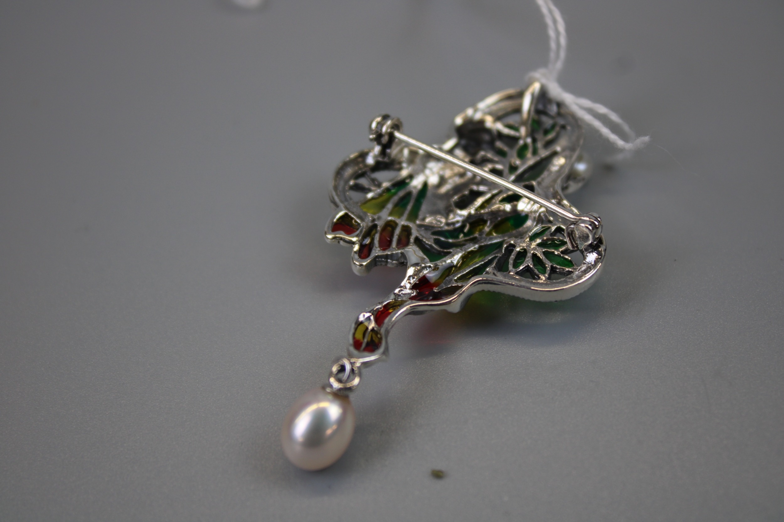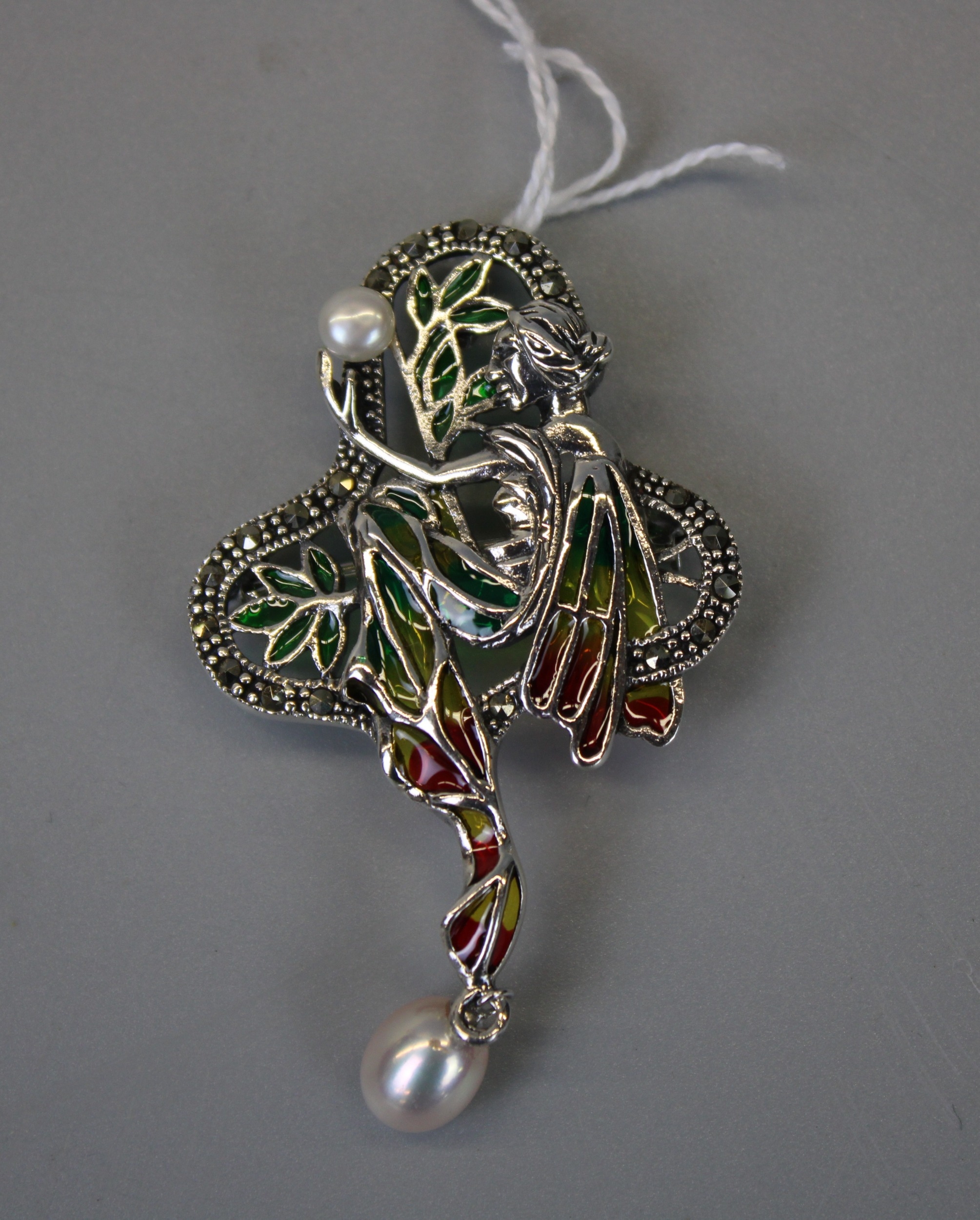Silver Enamel Fairy Brooch / Pendant Set with Marcasite & Pearl