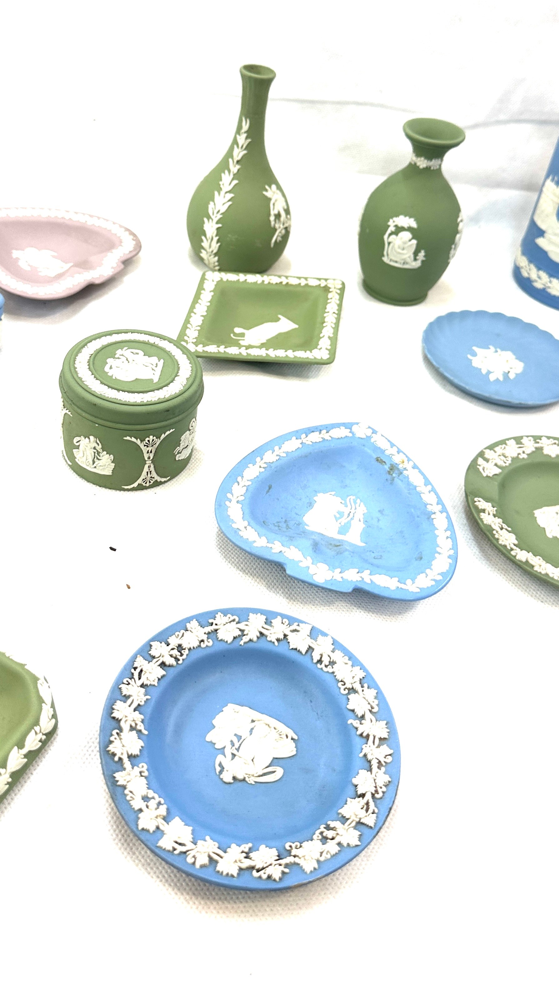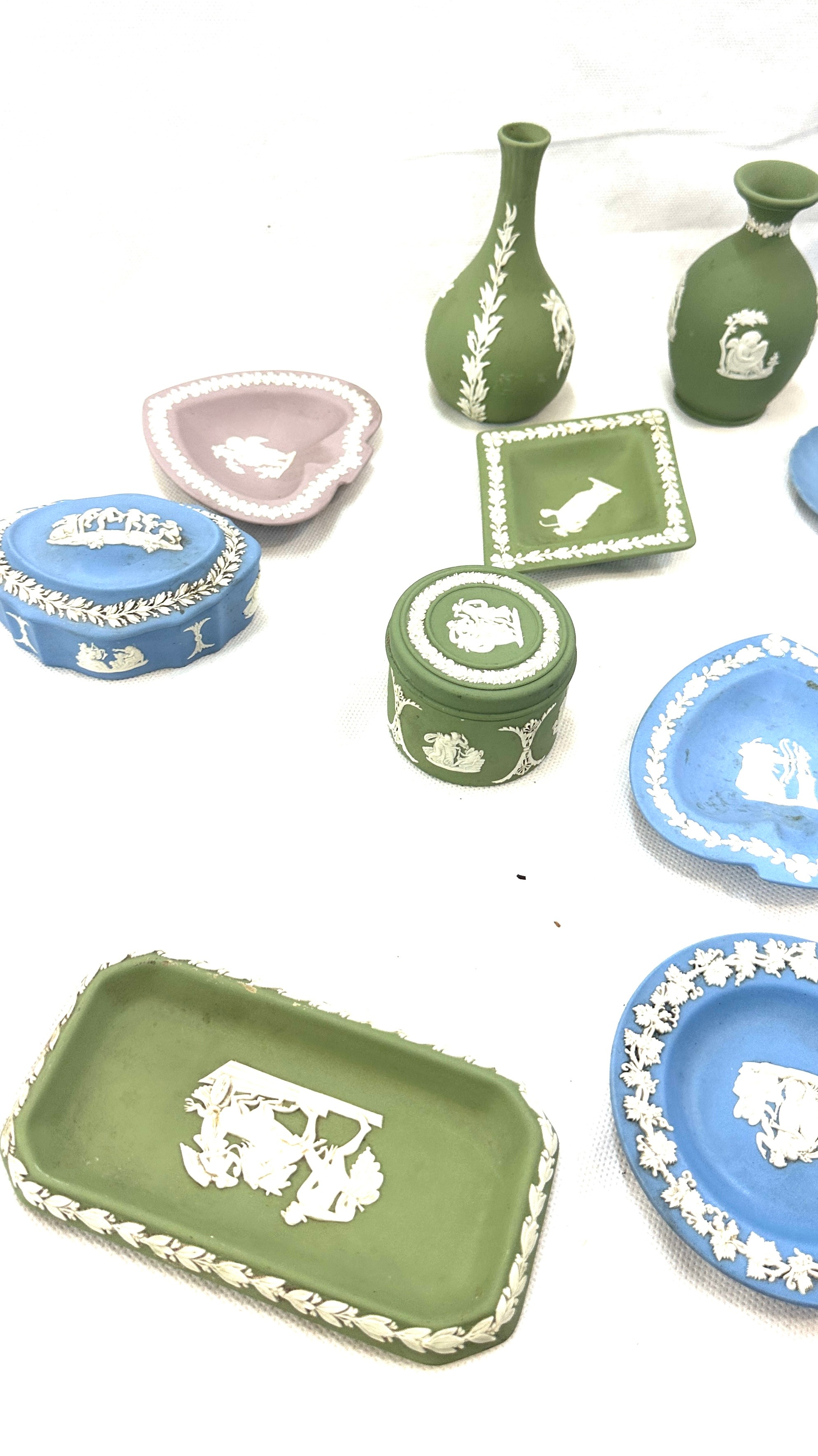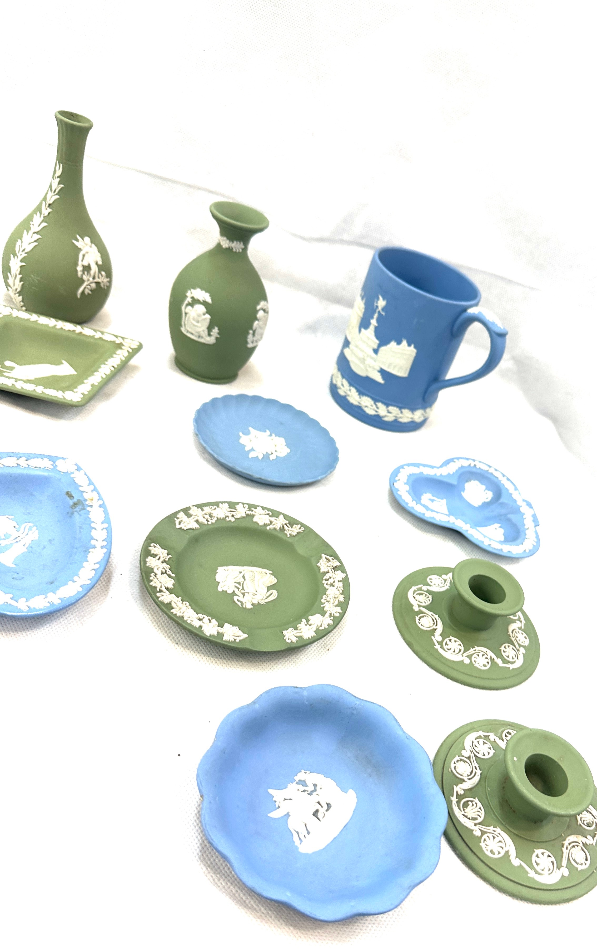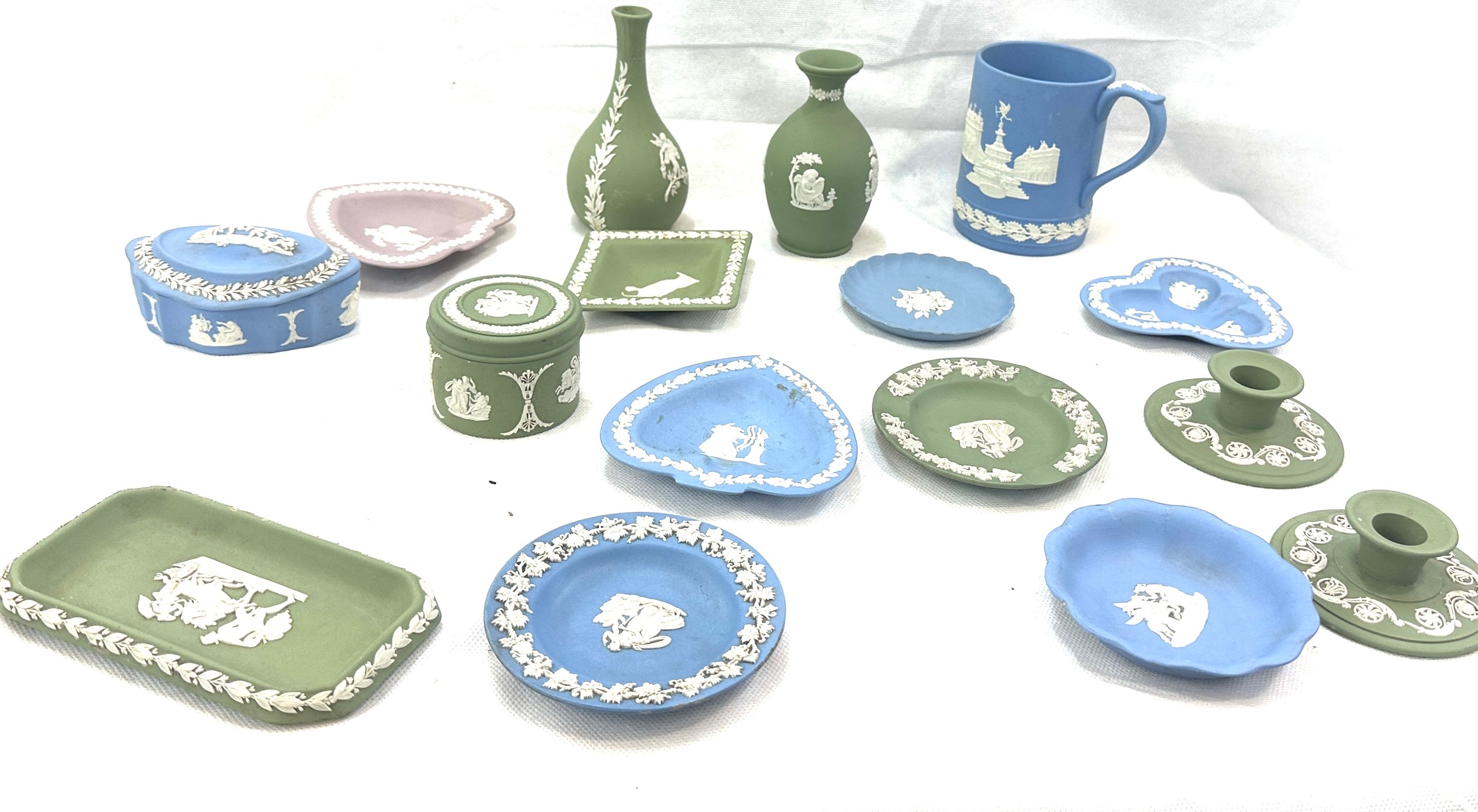 Selection of vintage Wedgwood Jasperware to include candle sticks, jugs, bowls, vases, etc