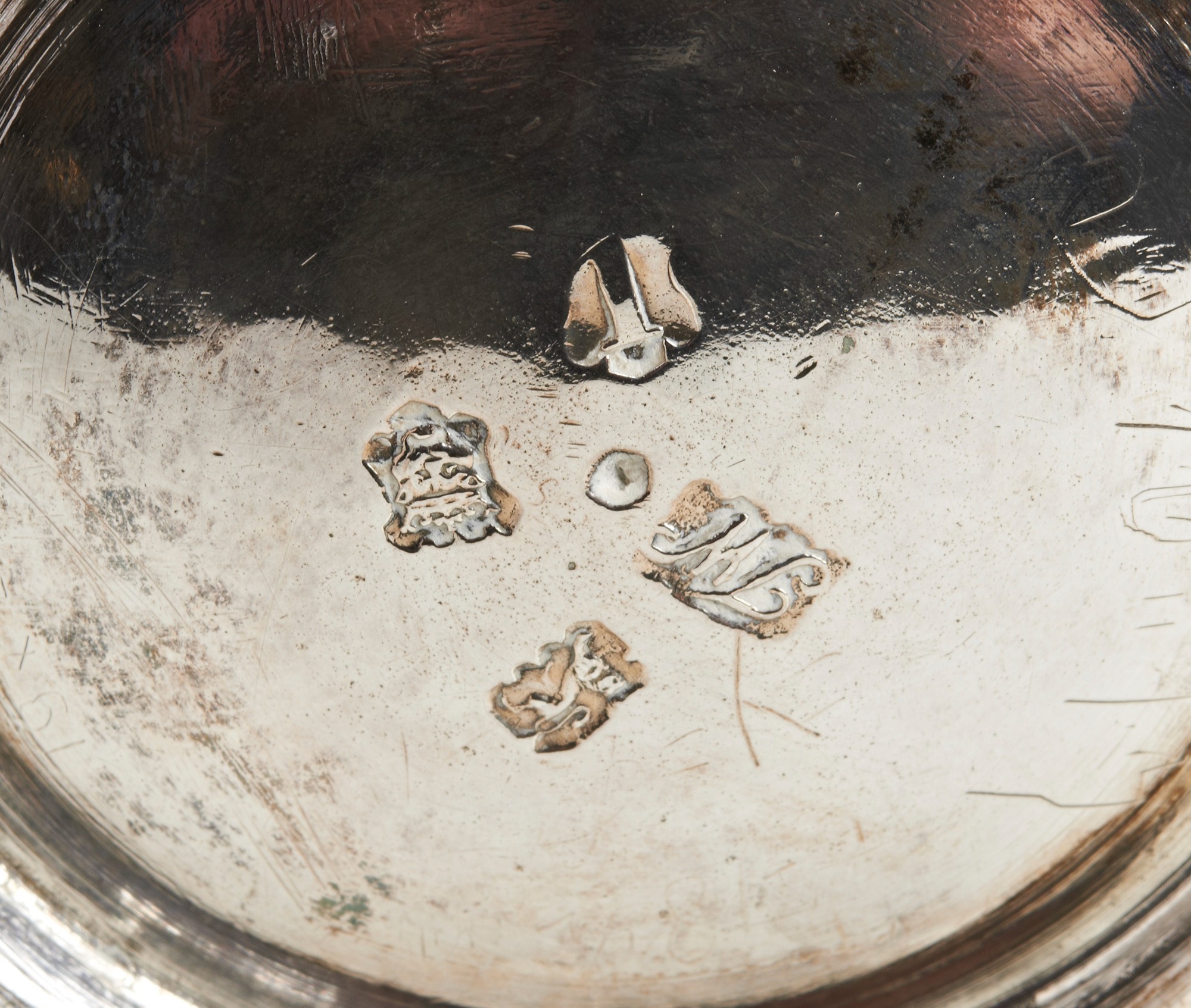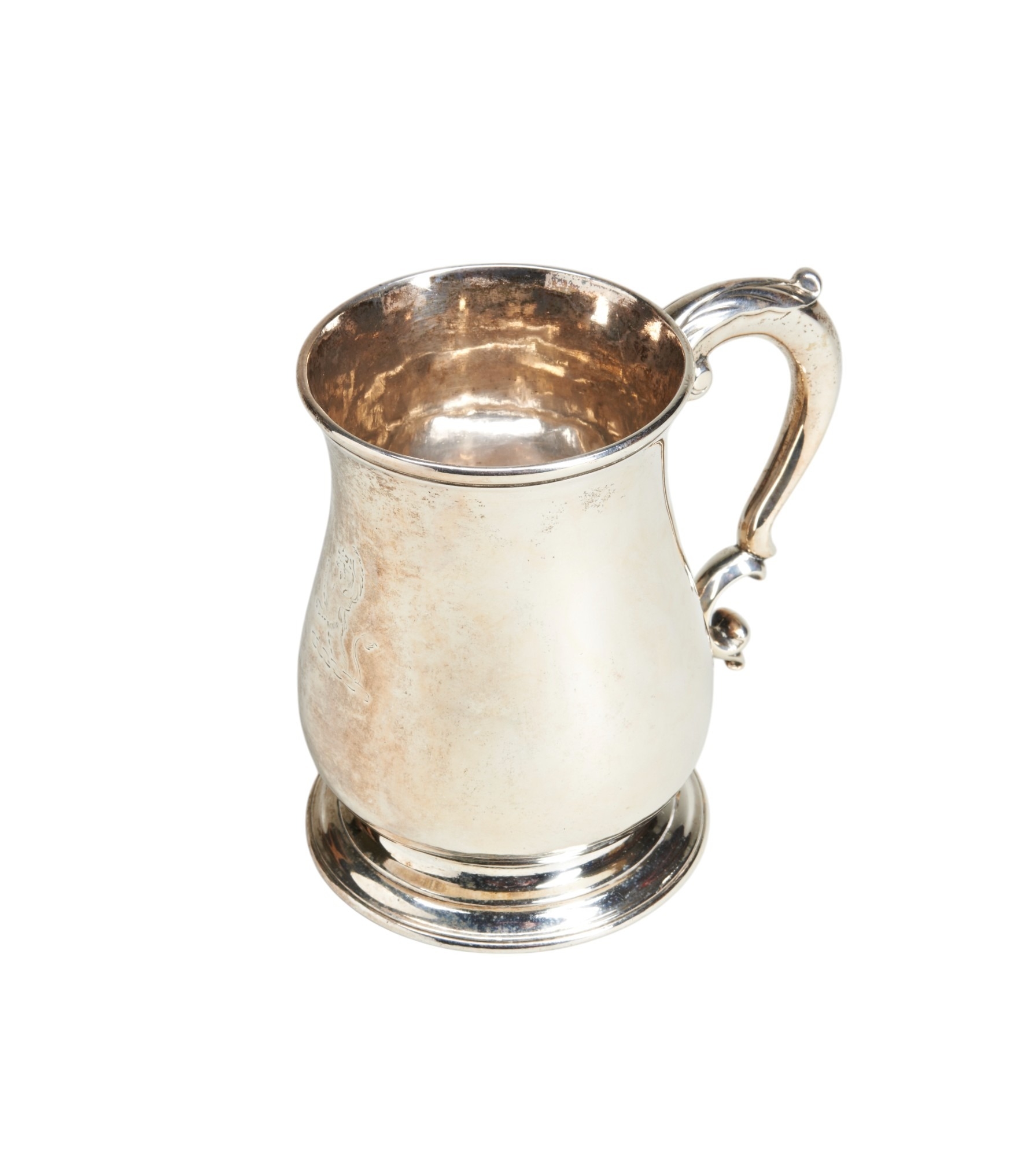 A good heavy pint mug with what appears to be its original crest engraved to the front. Made by Thomas Whipham in 1744