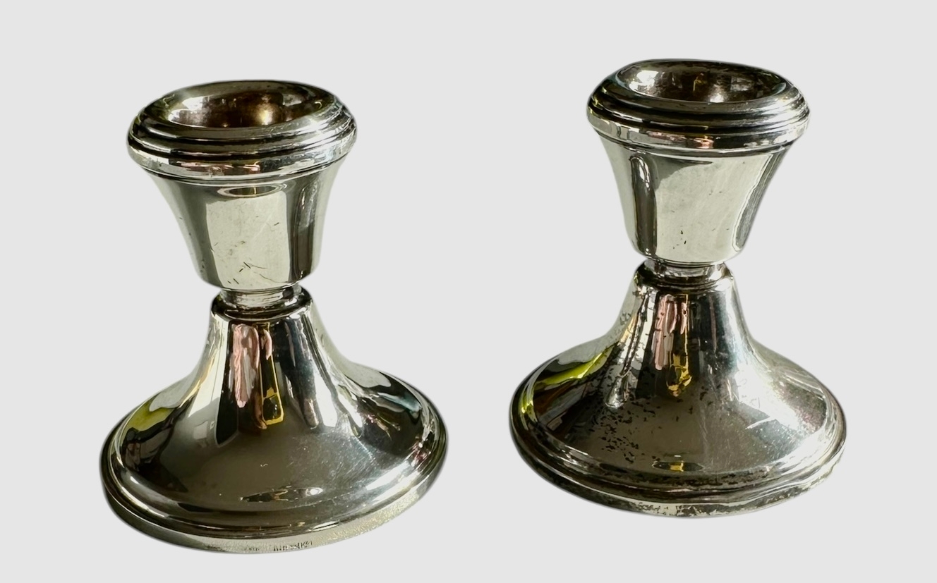 Pair Of Silver Candle Holders Size 6.3cm x 6.1cm