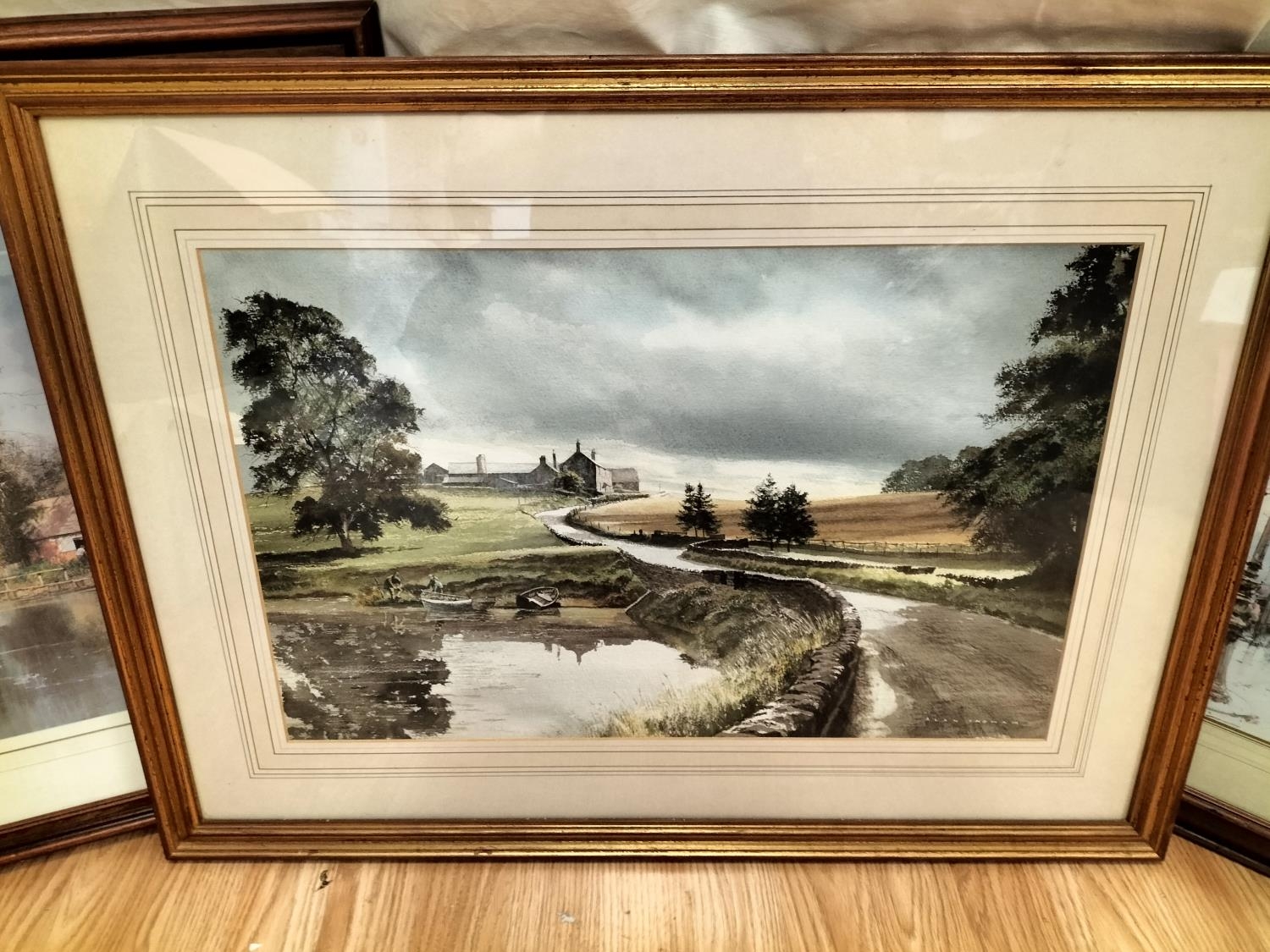 Framed and Glazed Painting of 'Langley, Nr Macclesfield' by Alan Ingham plus 2 Prints. Largest being 74cm x 55cm. Collection Only.