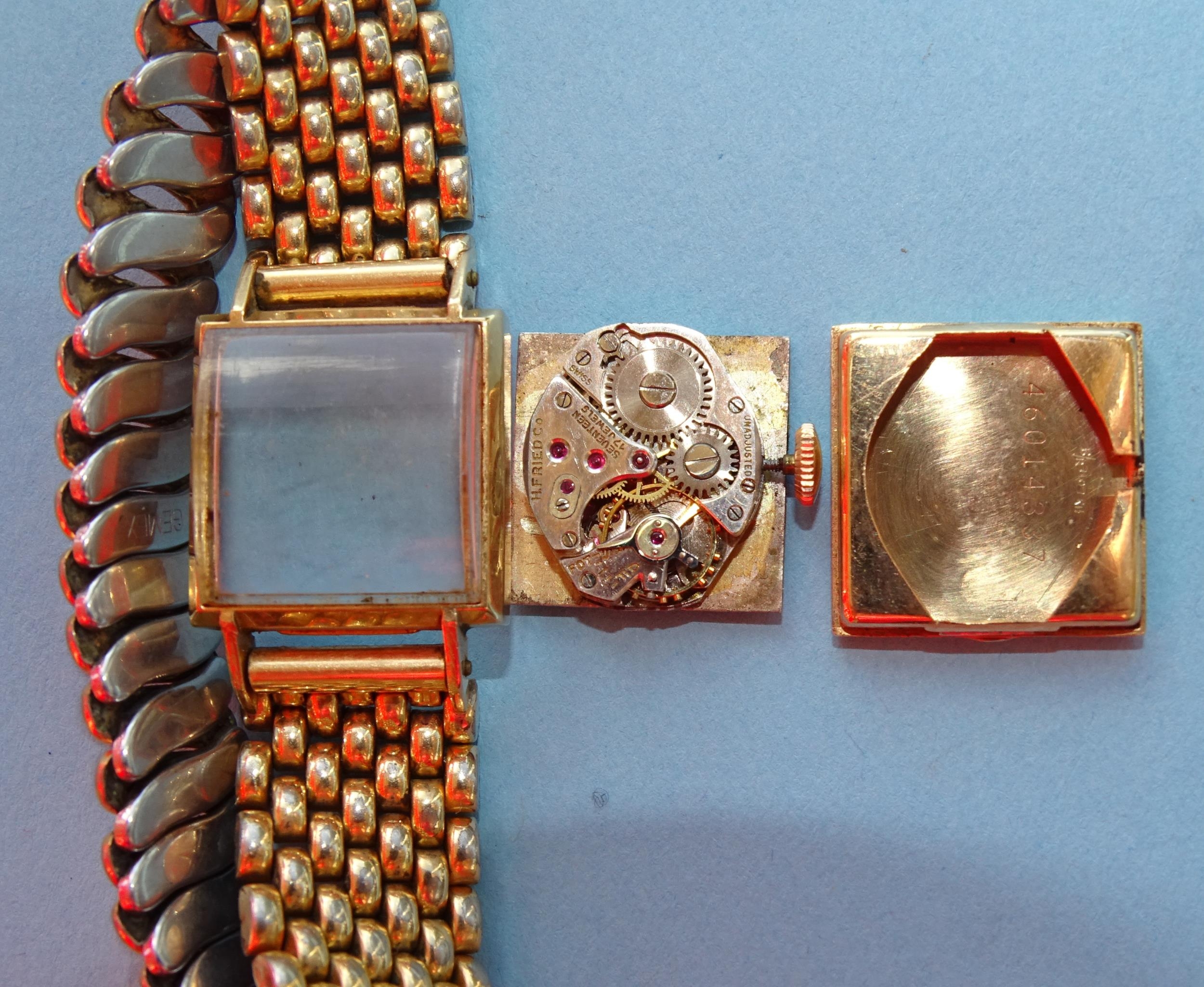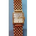 A lady's 14k-gold-cased square-faced wrist watch, 19mm, mark...