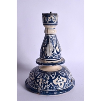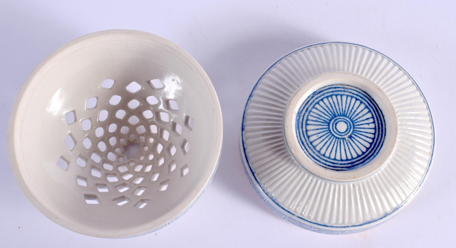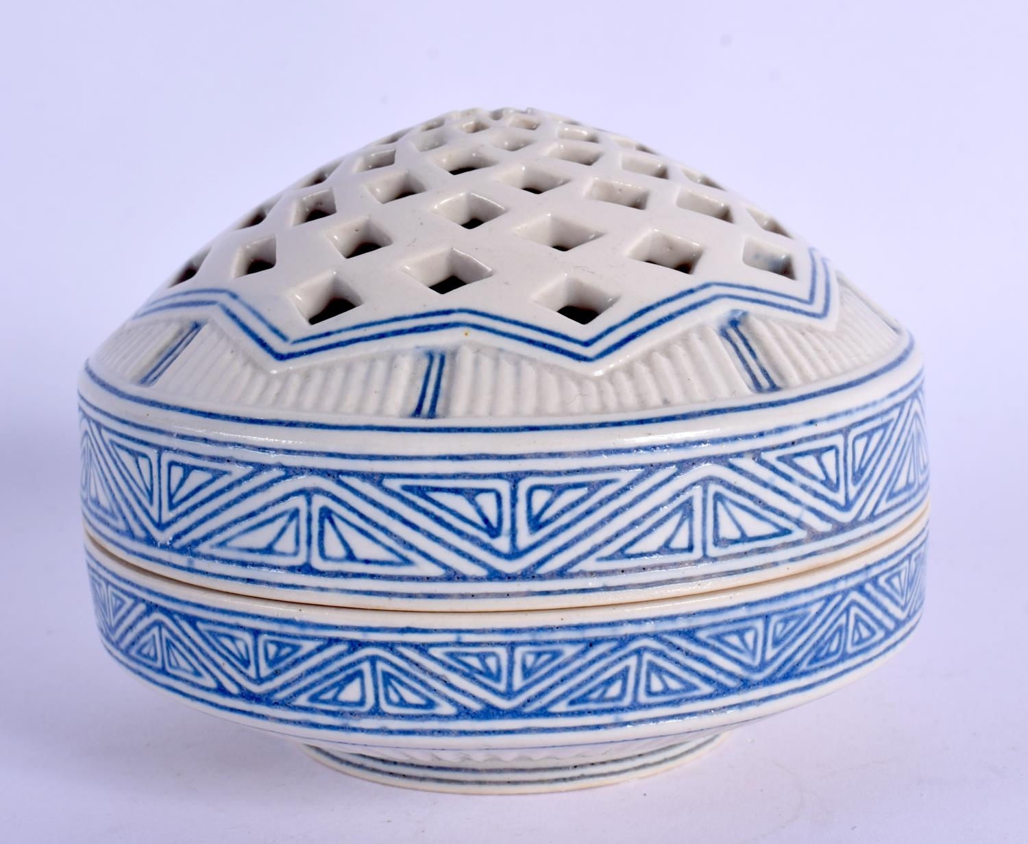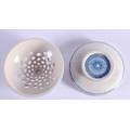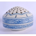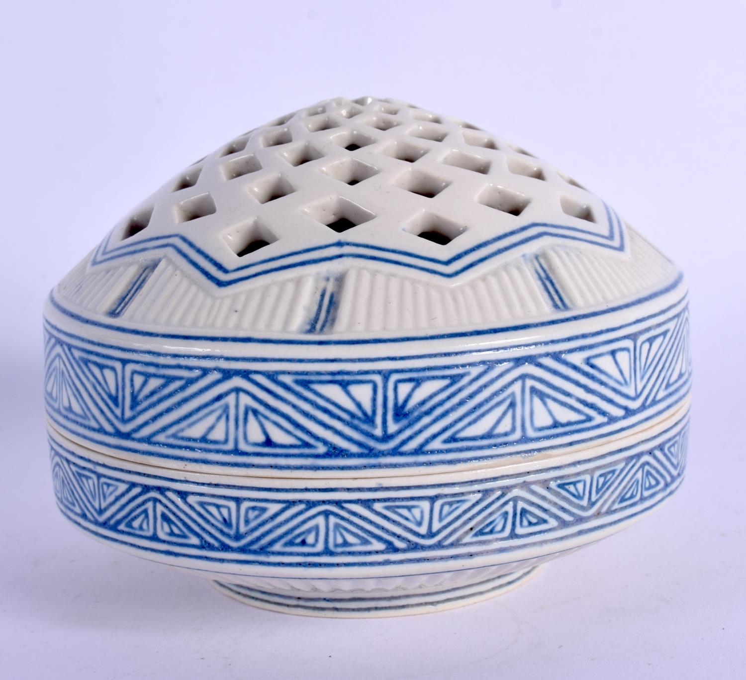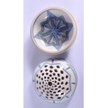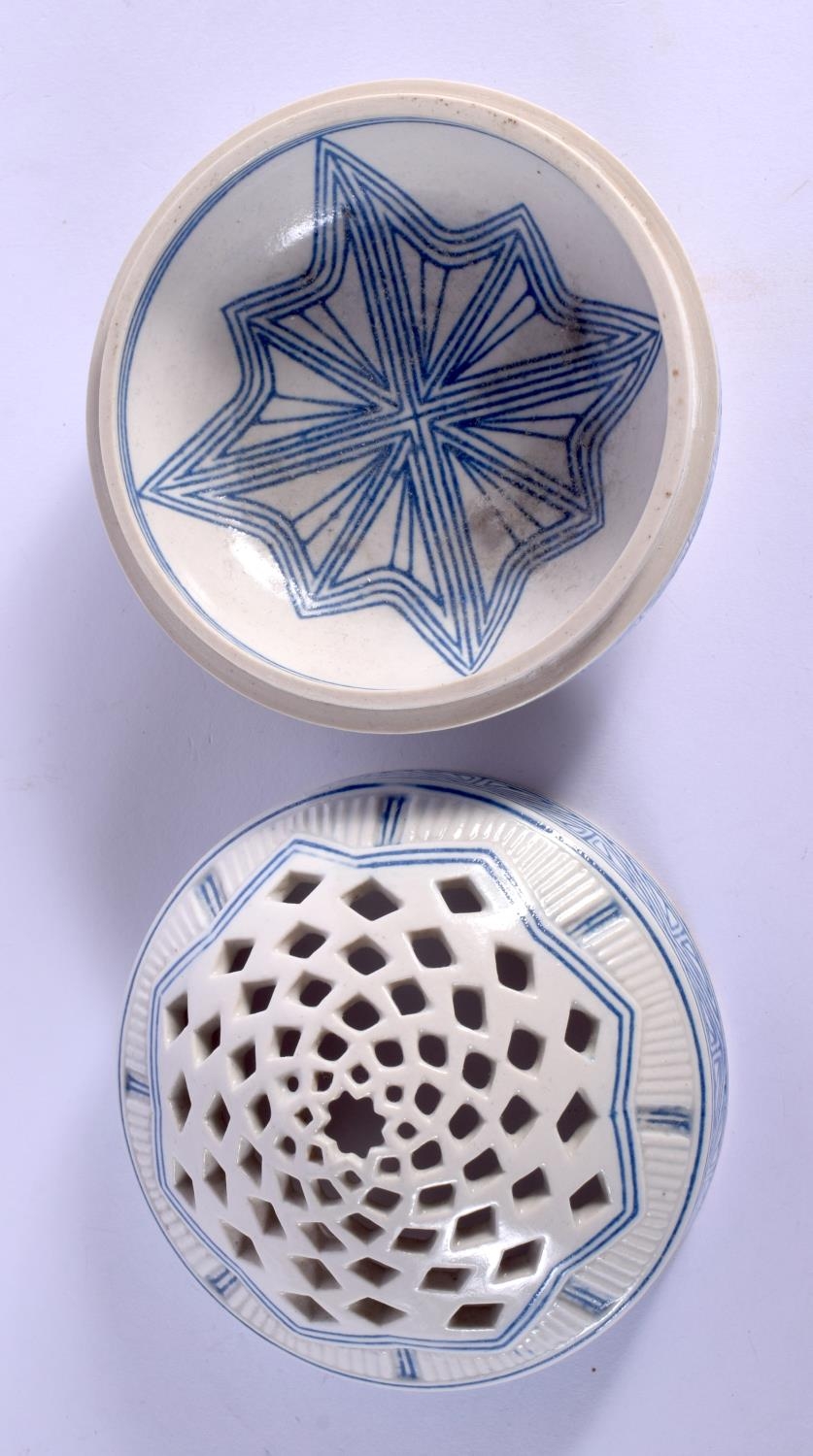 AN UNUSUAL ISLAMIC MIDDLE EASTERN POTTERY CENSER AND COVER. 8.5 cm diameter.