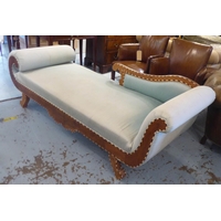 CANAPE, Louis XV style white painted in ticking fabric, 125cm W. (faint marks)