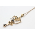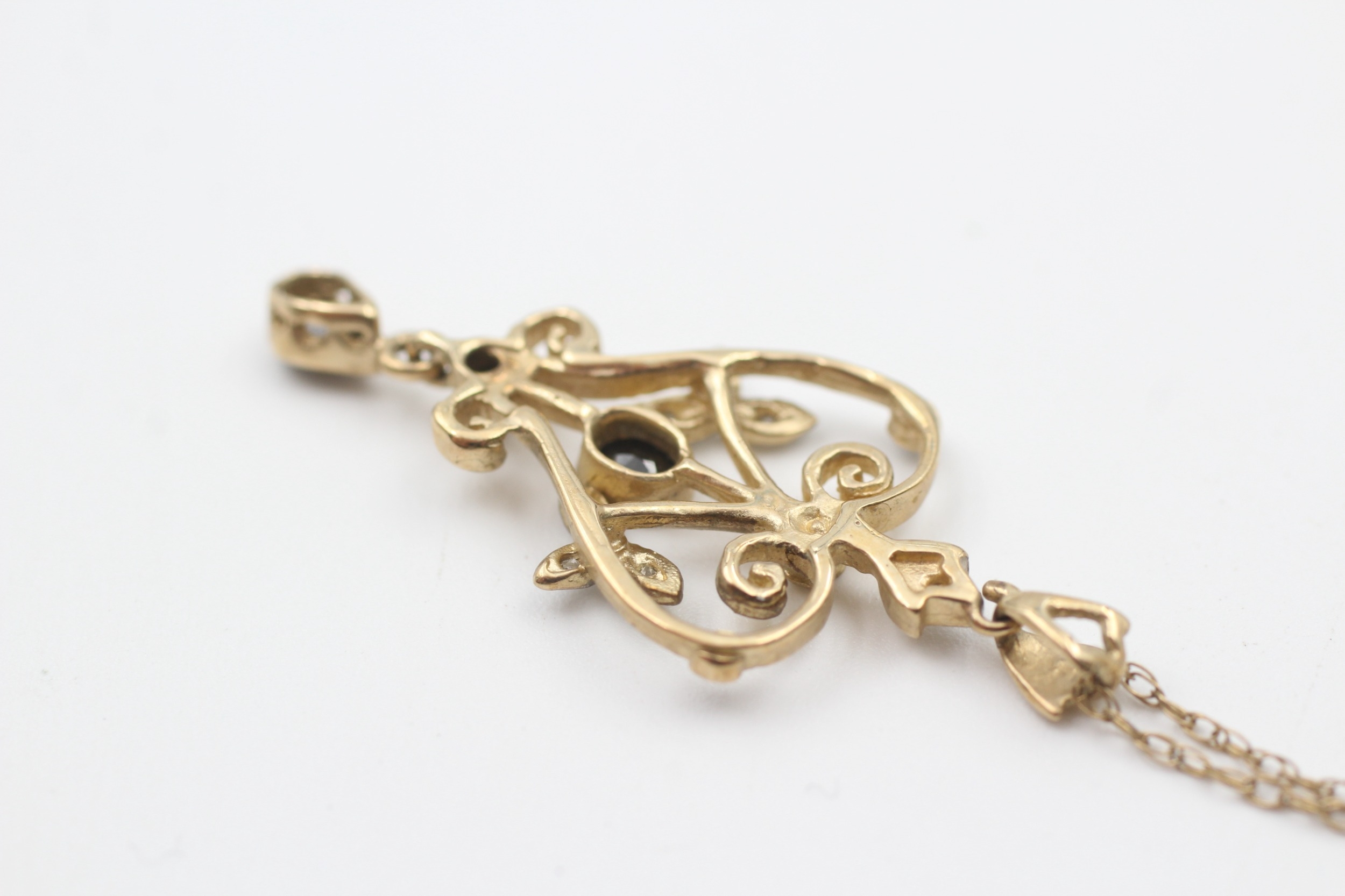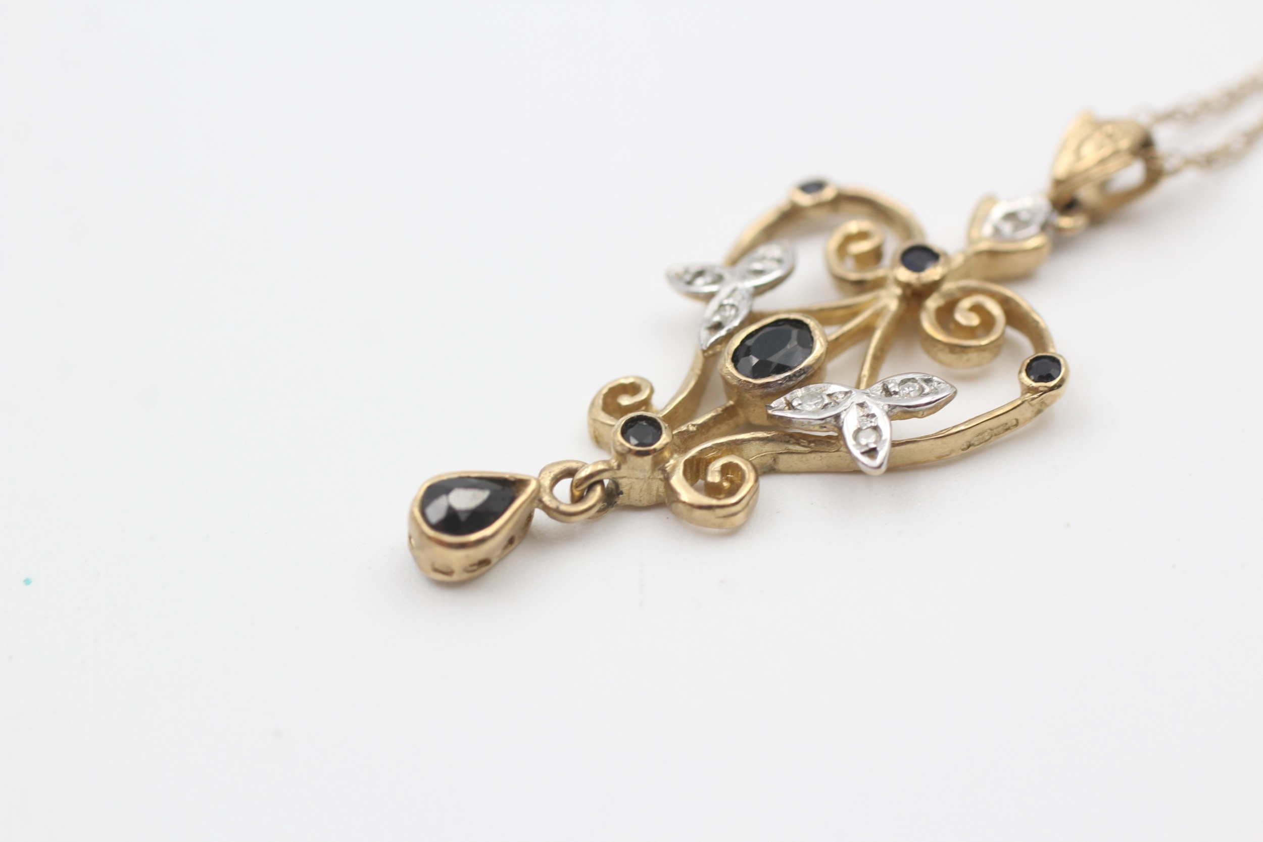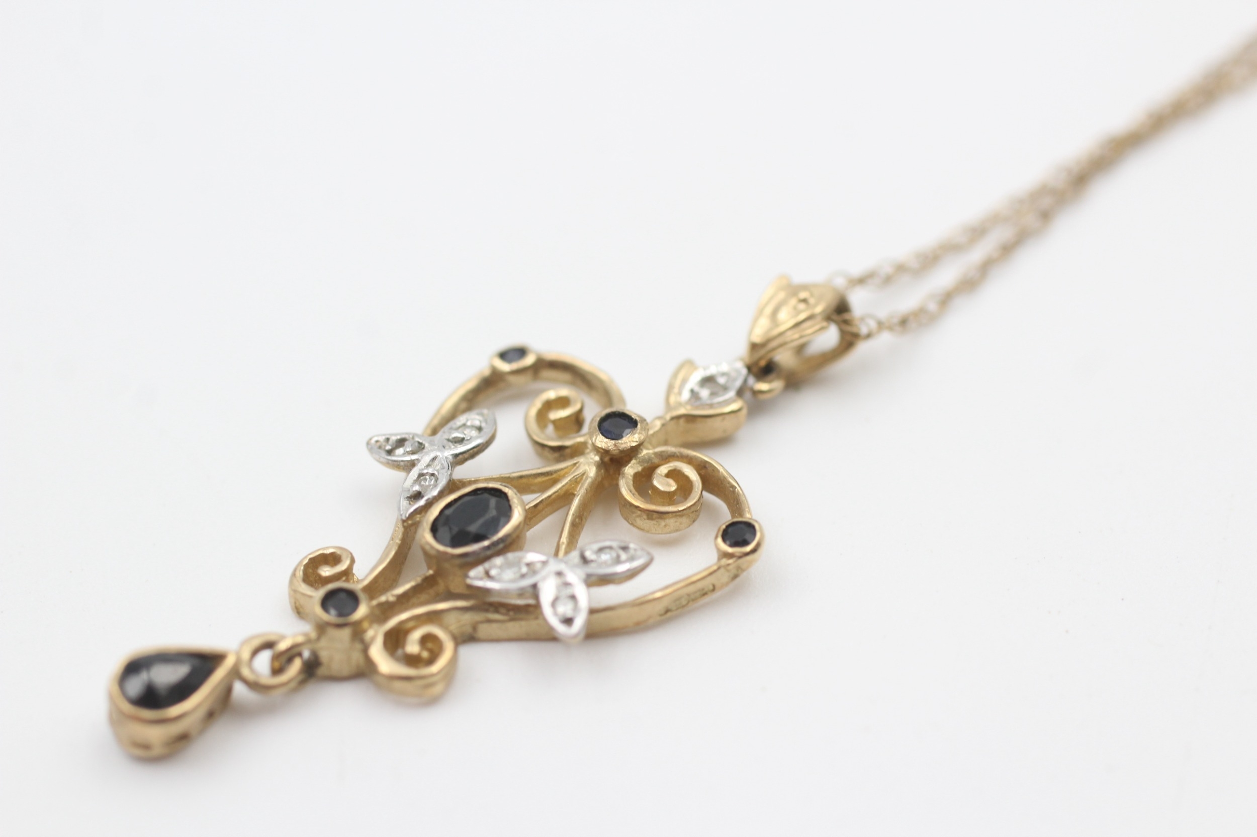 9ct gold diamond & sapphire pendant necklace (3.1g)