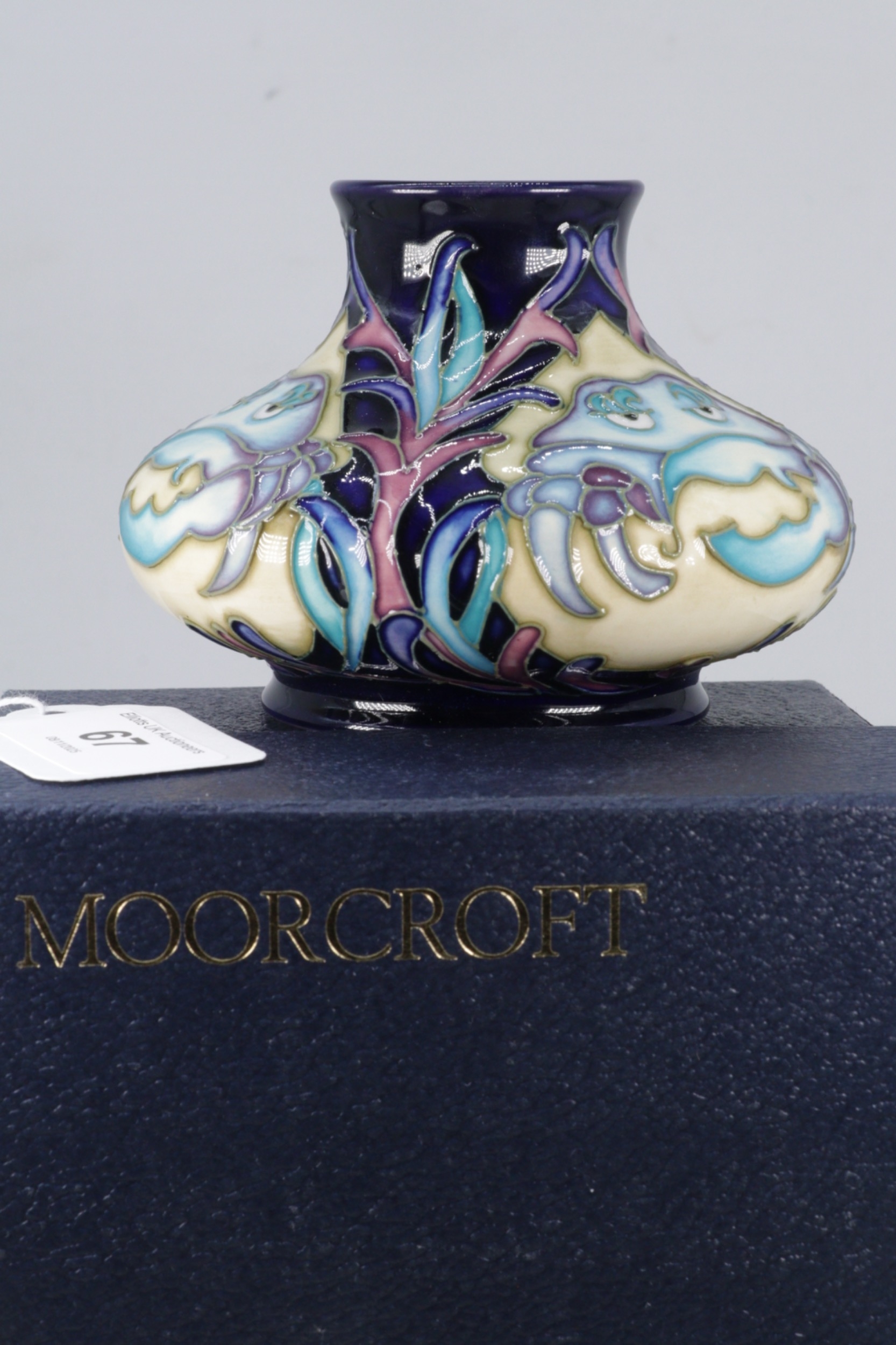 Boxed Moorcroft Morrocan Myths crab small vase approx. 8.5cm high
