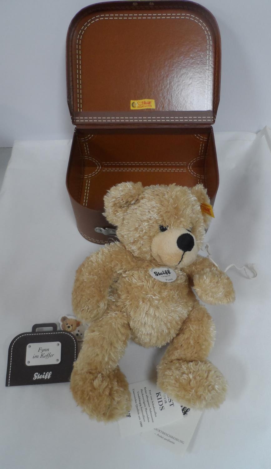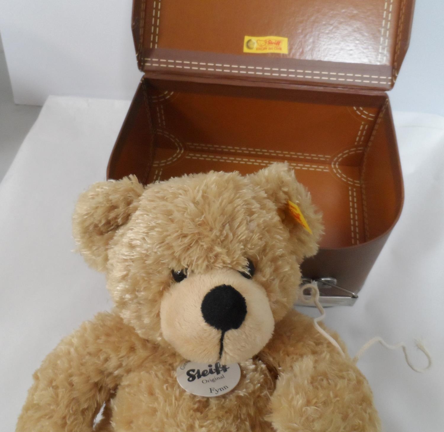 As new, Steiff teddy bear in its box, depicted as a suitcase