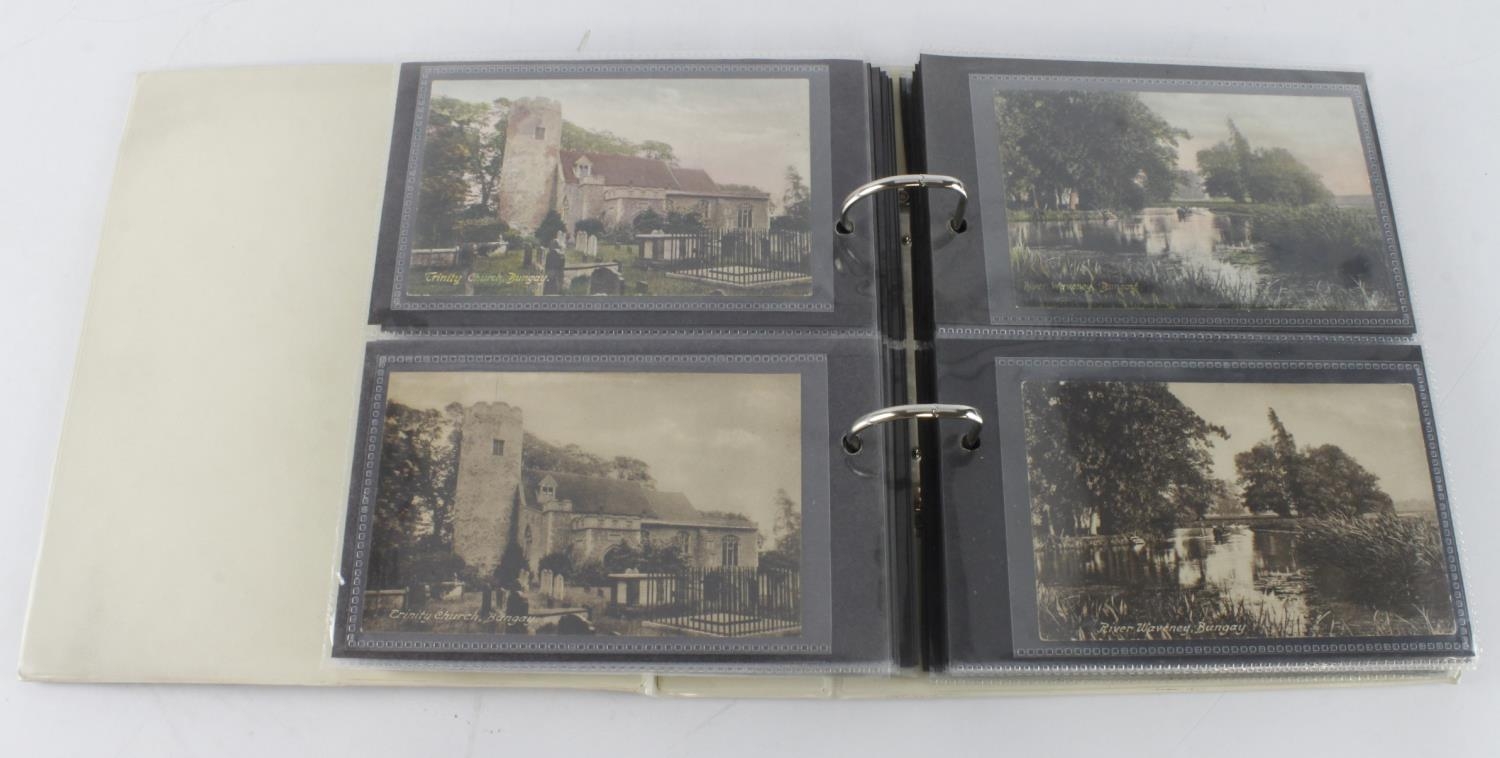 Suffolk, Bungay: Real photographic and printed cards by Smith in an album. Wide ranging views, streets, Tower mill, buiidings etc. Fine lot (approx 78 cards)