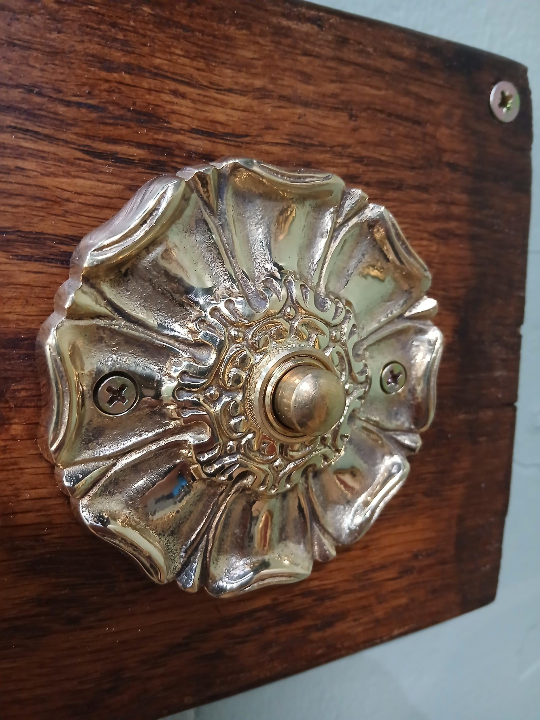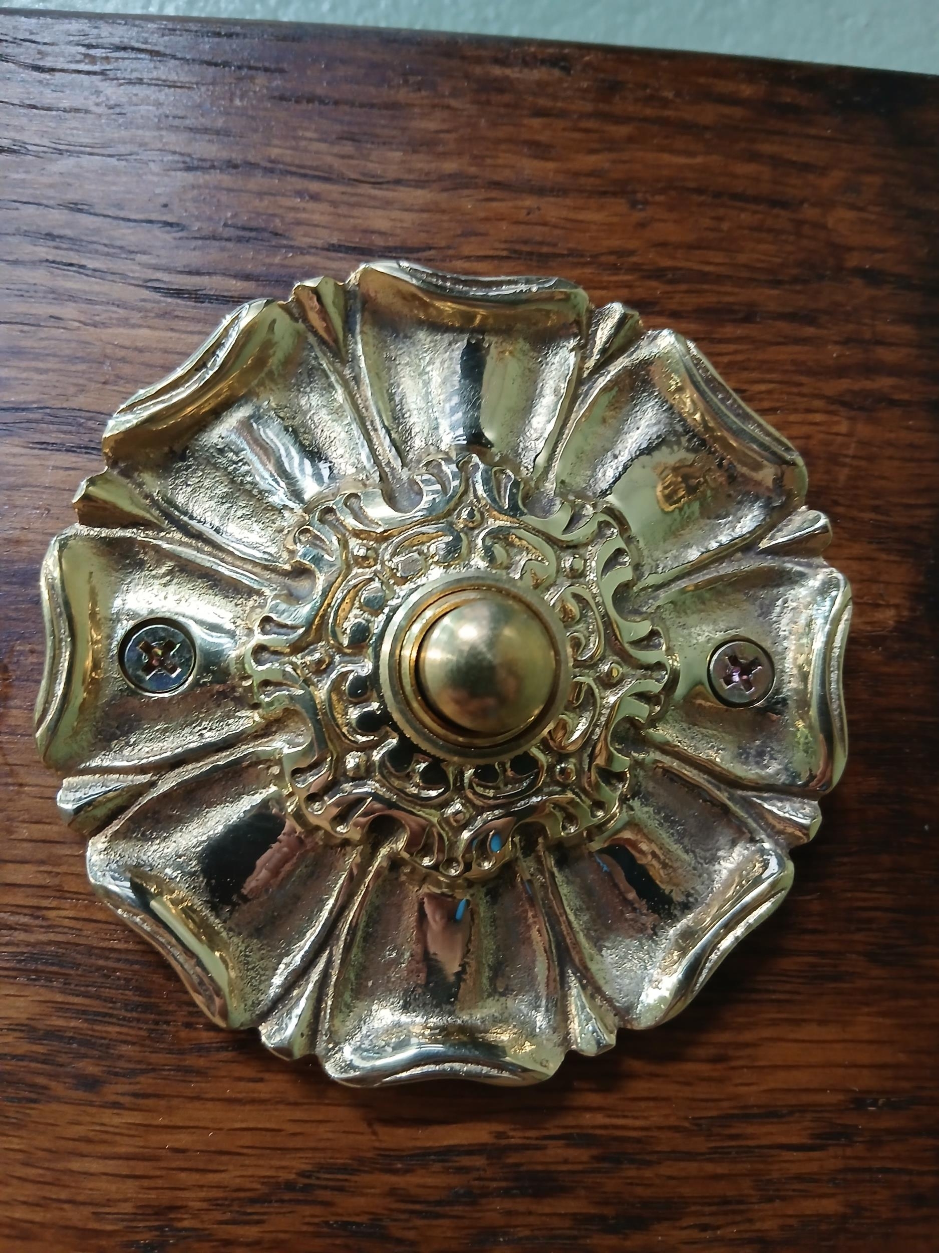 Solid brass door bell push. {Dia 9cm x SD 2cm }. NOT AVAILABLE TO VIEW IN PERSON.
