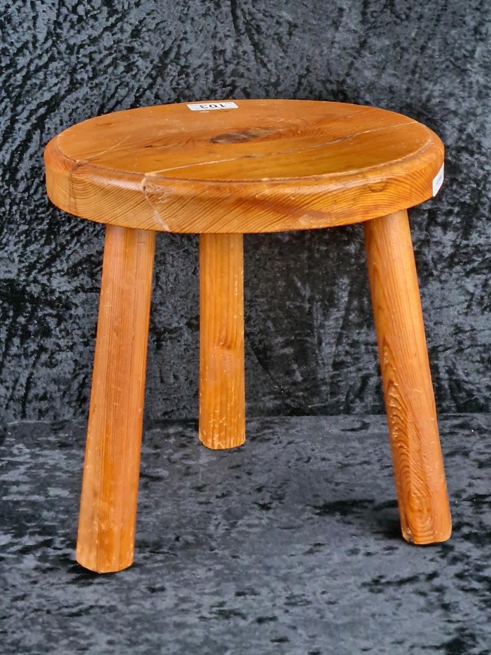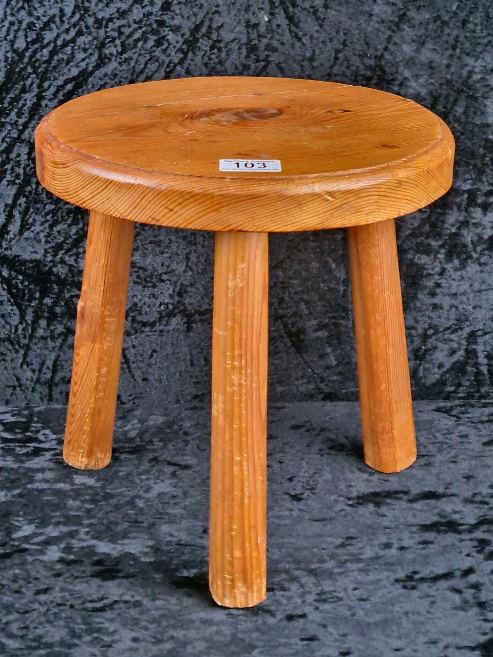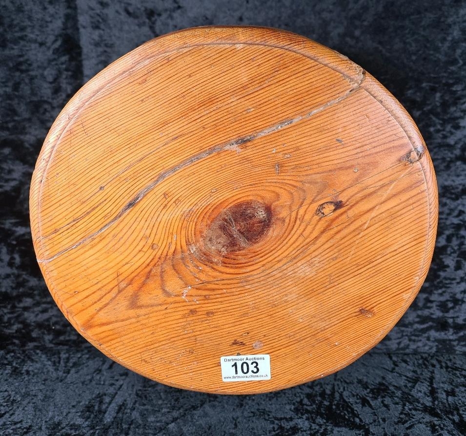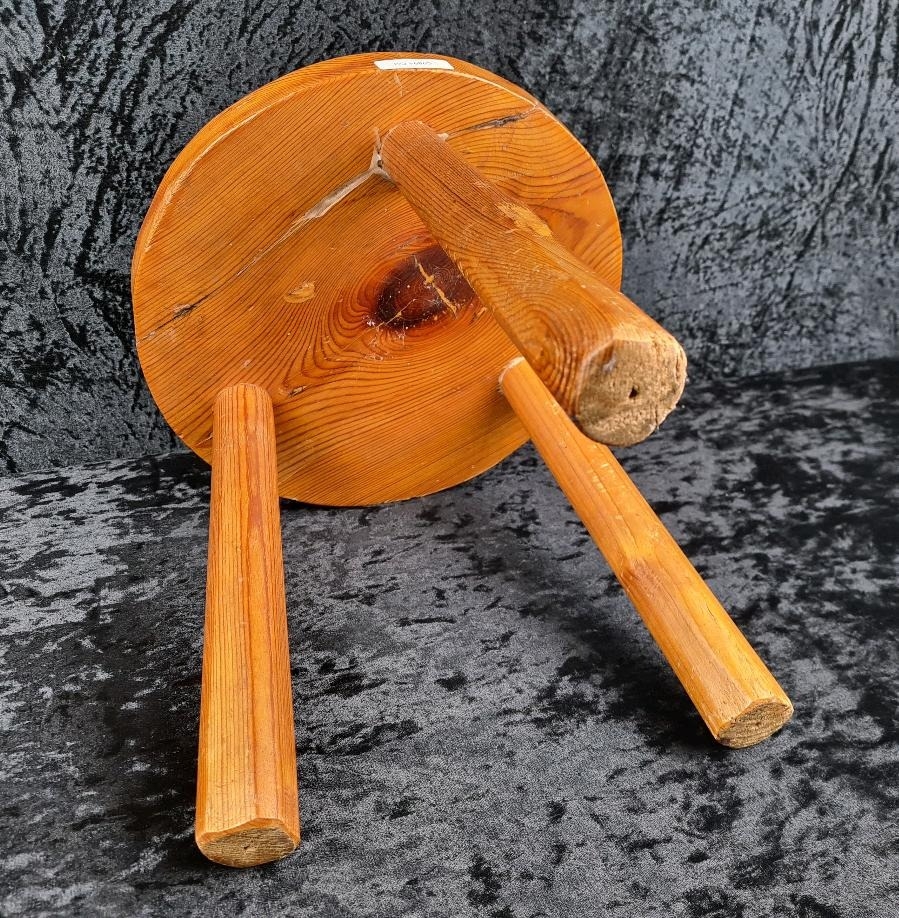 Little pine tripod stool. Approx H31cm.