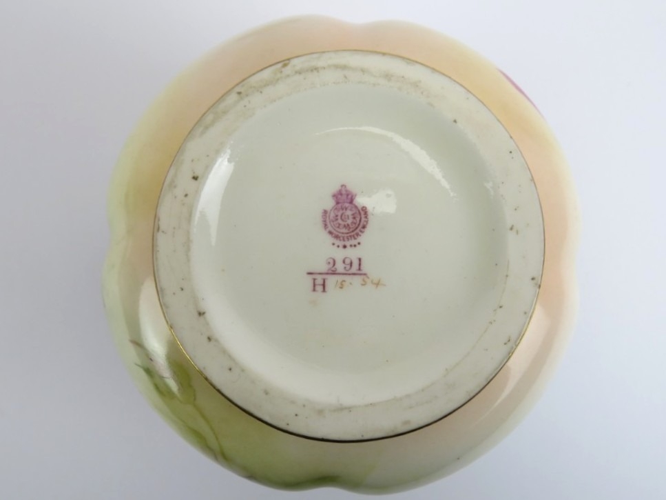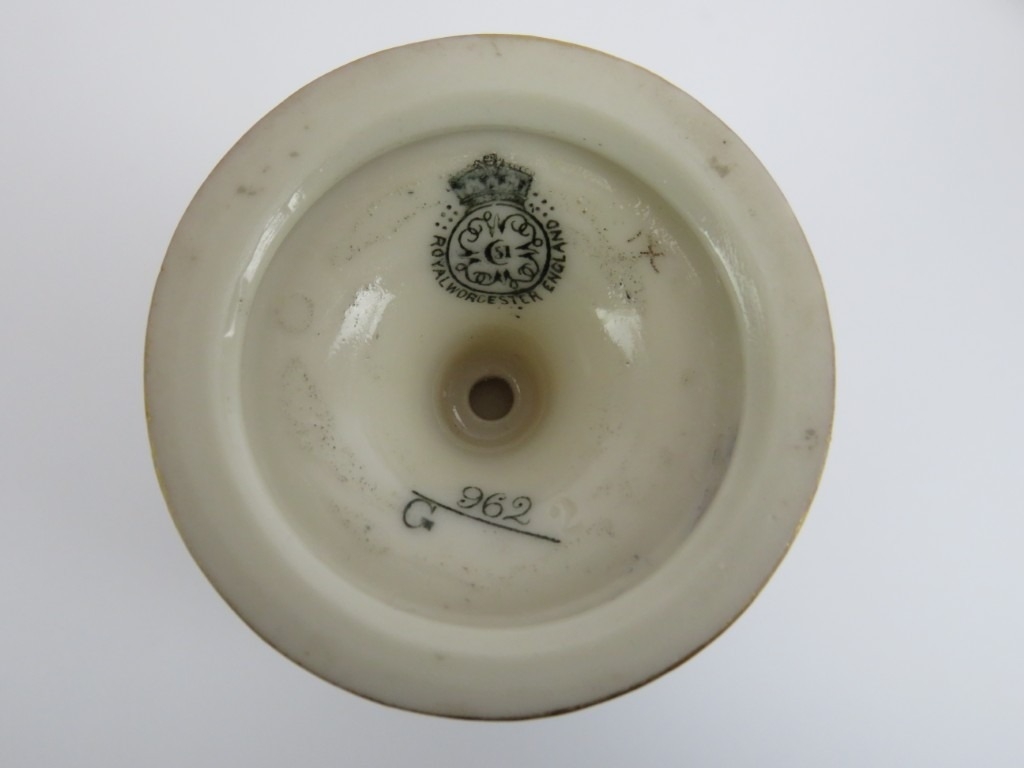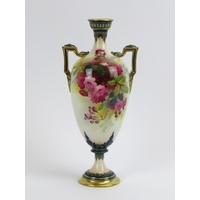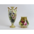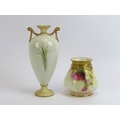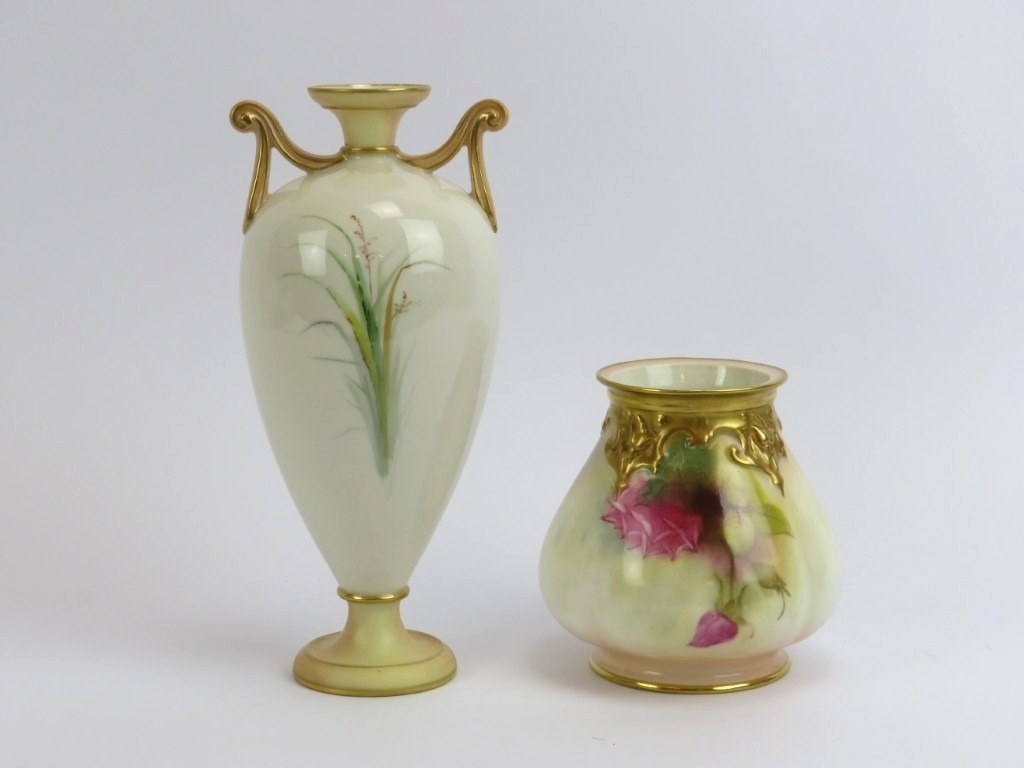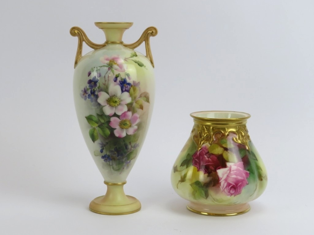 Two Royal Worcester vases decorated with flowers, early 20th century. Factory marks beneath. (2 items) 21.2 cm height, 10.8 cm height.