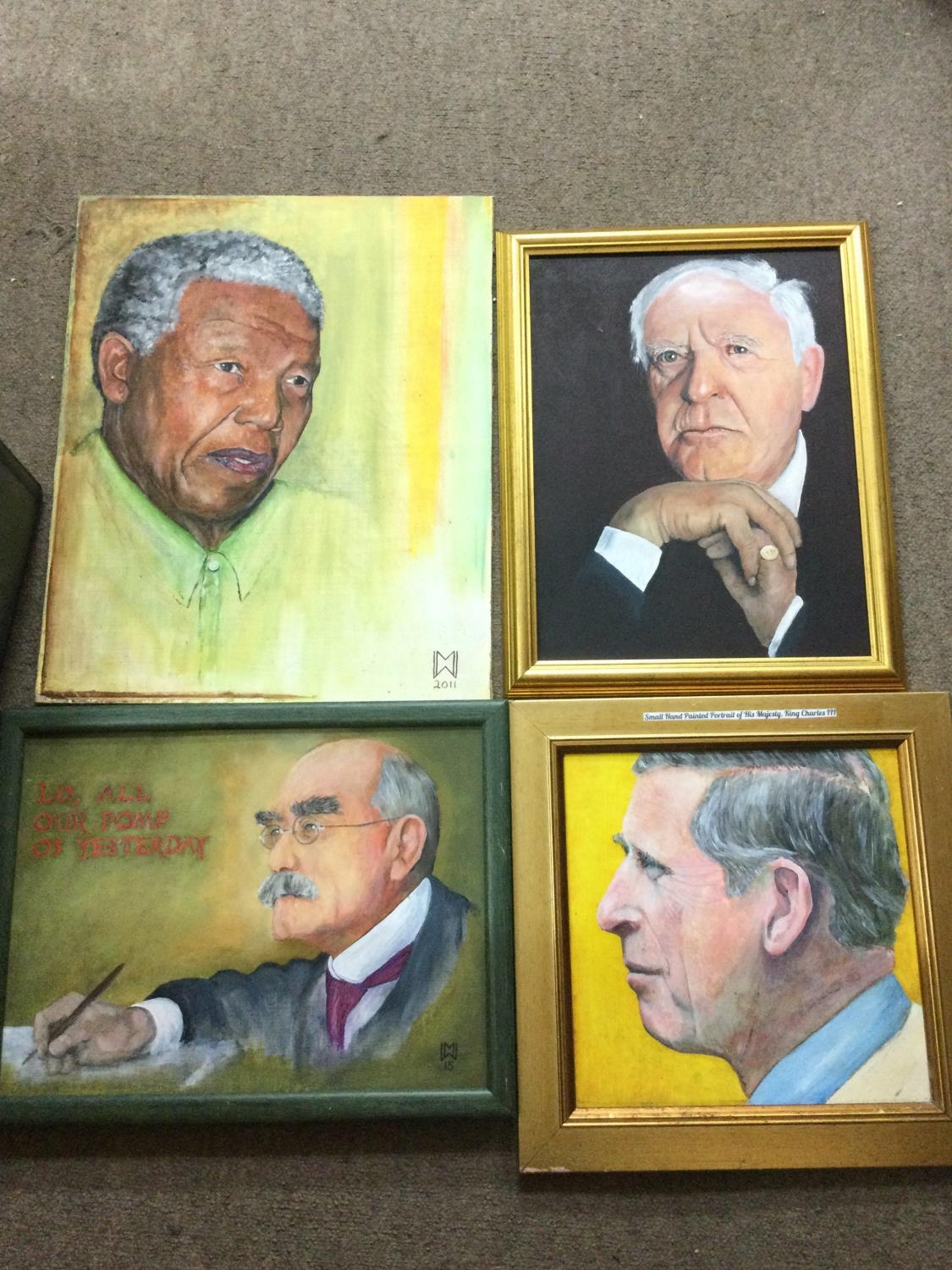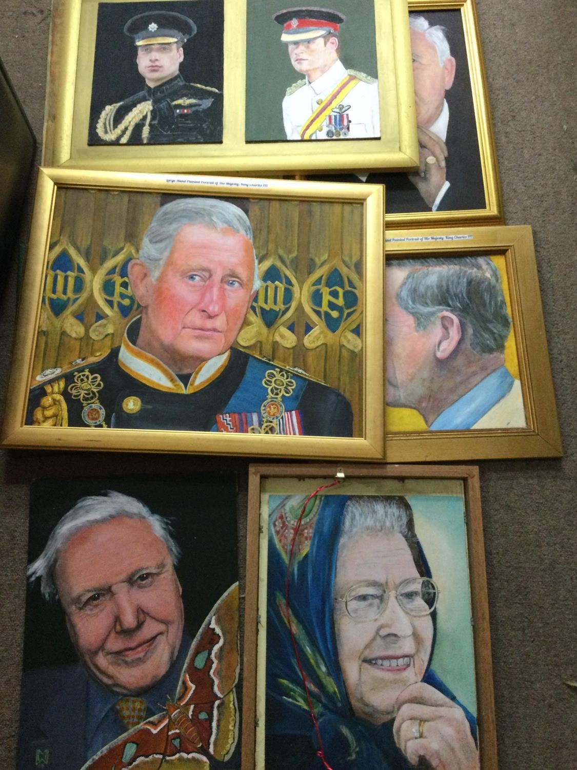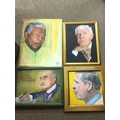 A collection of hand painted 20th century portraits including Royal Family, Politicians, Mandela, Attenborough etc- NO RESERVE