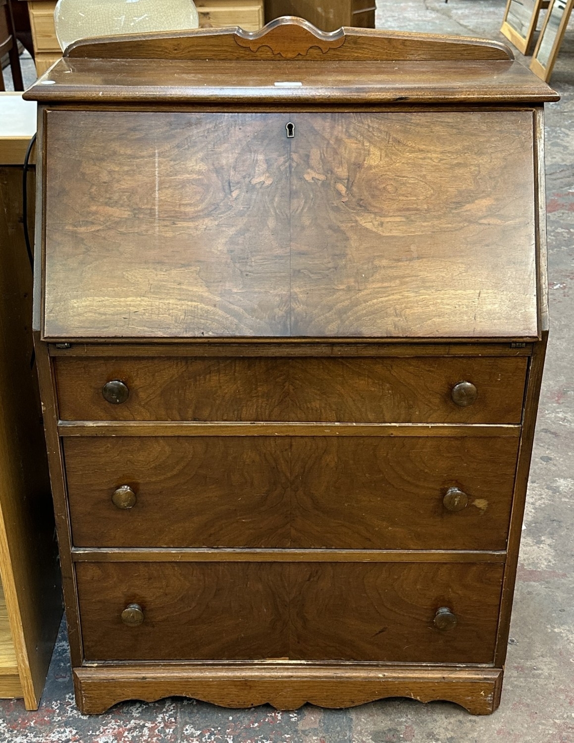 A mid 20th century walnut bureau - approx. 106cm high x 76cm wide x 43cm deep