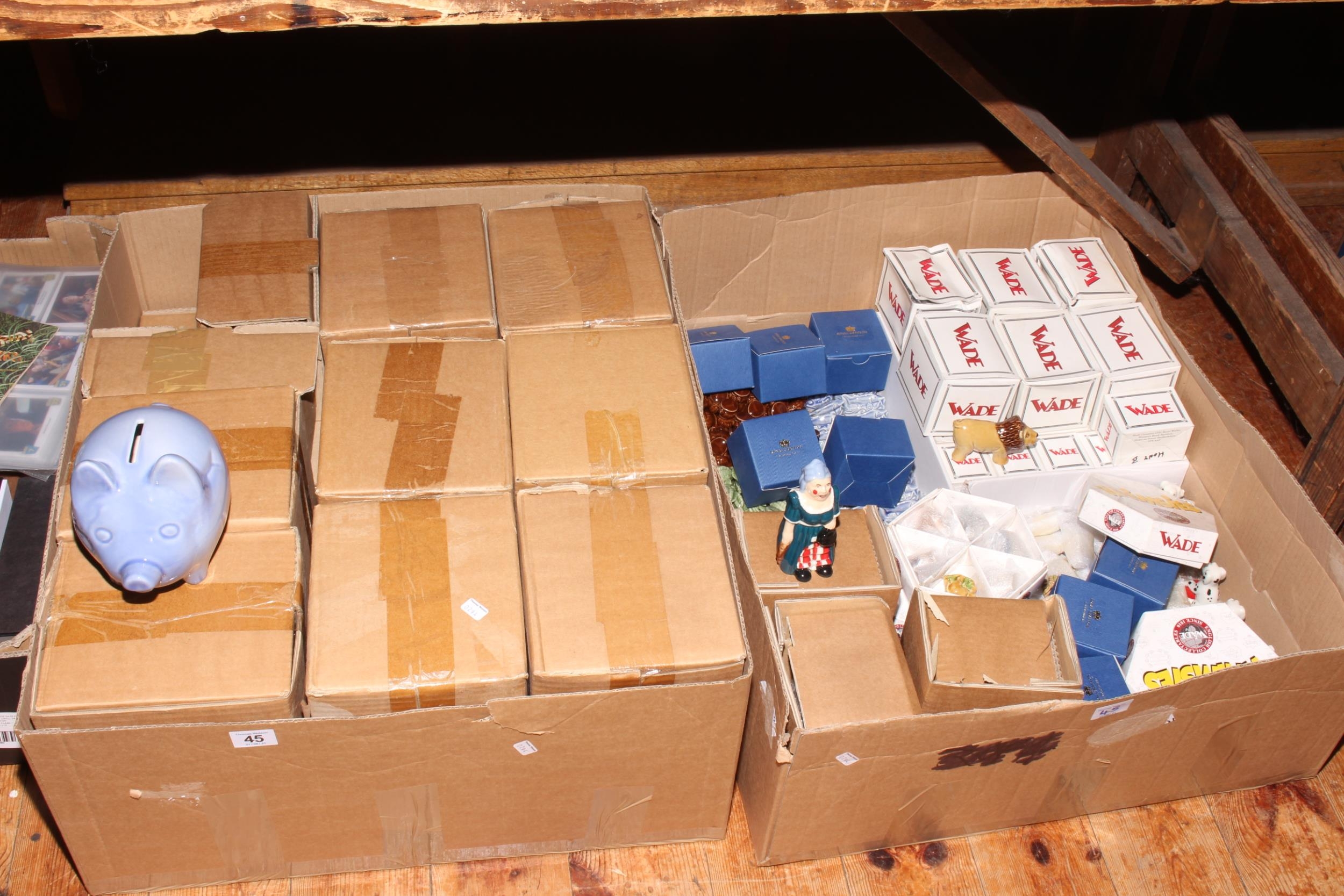 Large quantity of Wade Whimsies, blue pig money boxes, commemorative boxes, playing cards, picture cards, badges, etc.