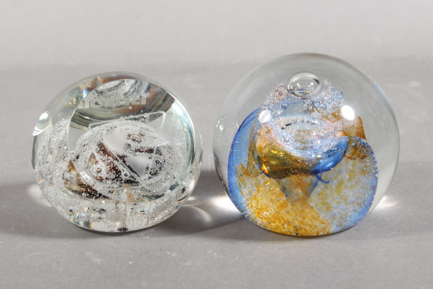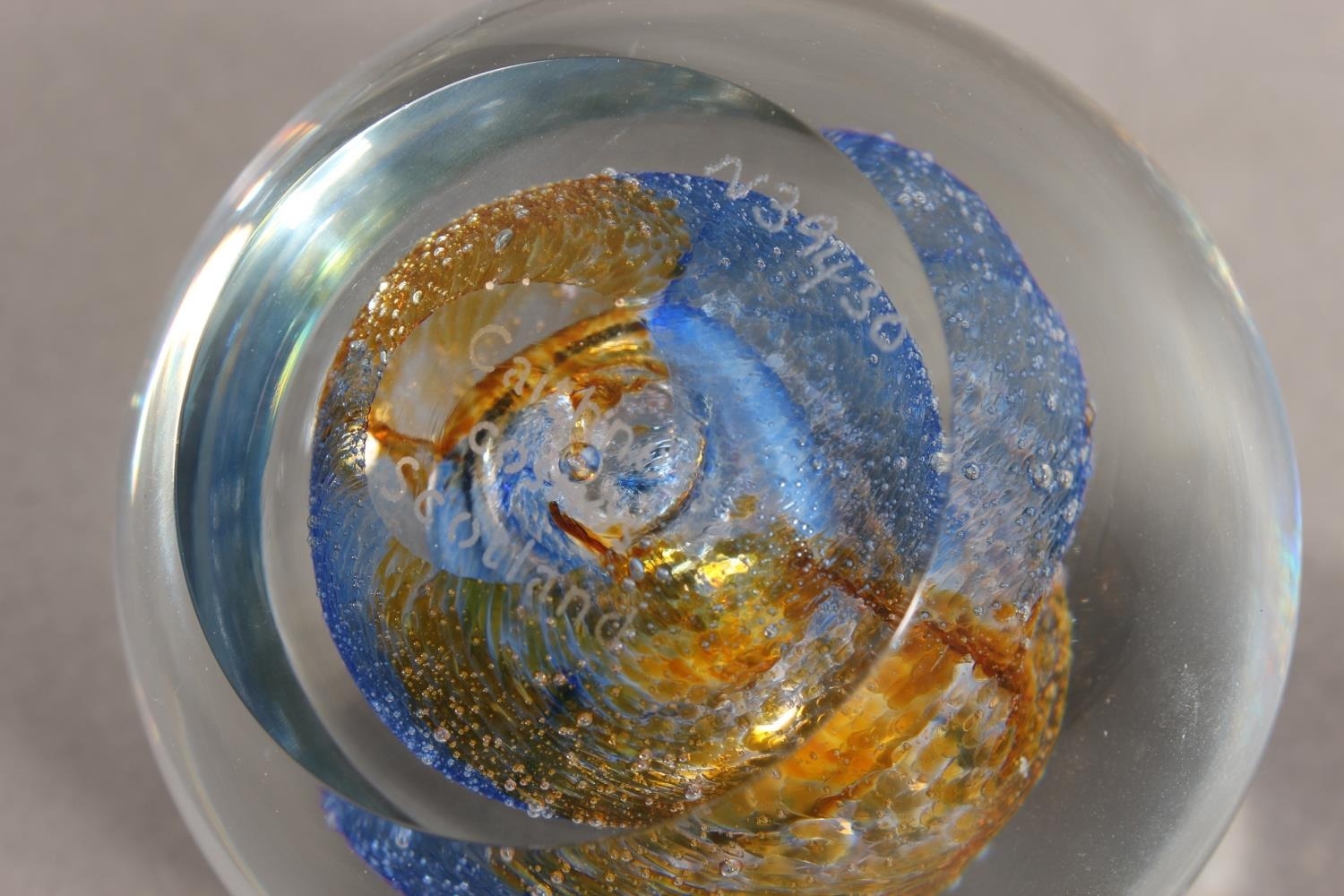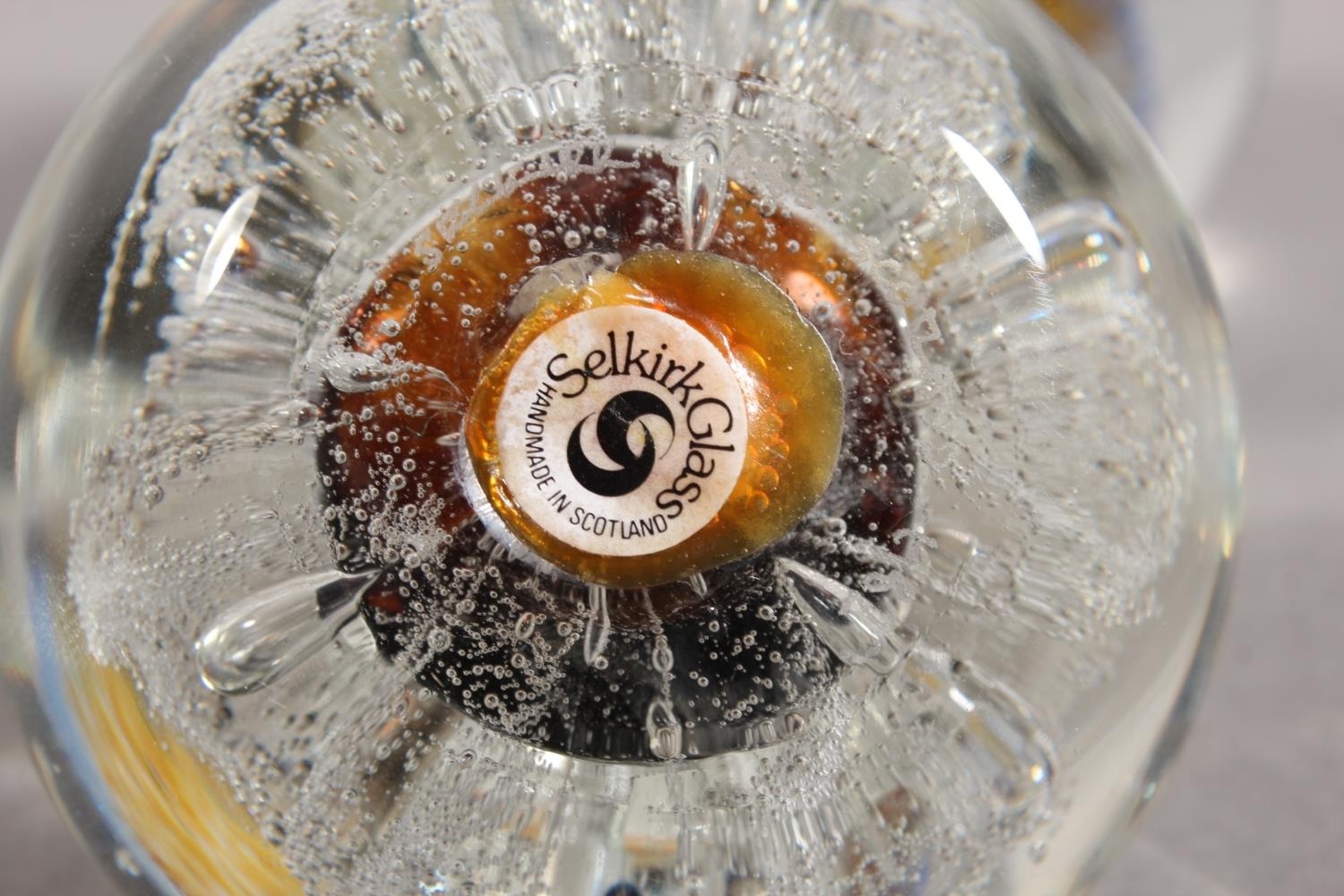 Selkirk Glass paperweight and a Caithness Glass paperweight.